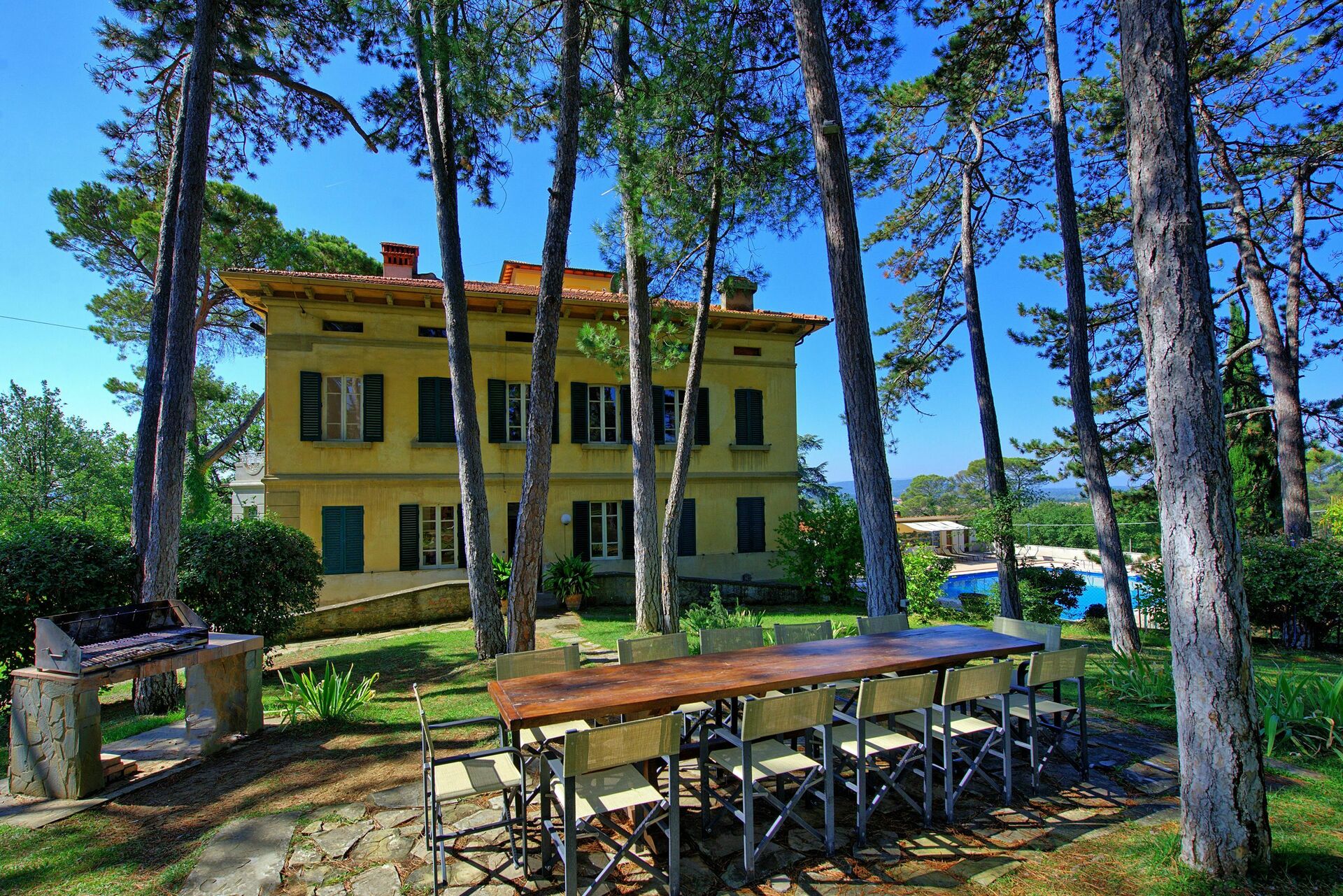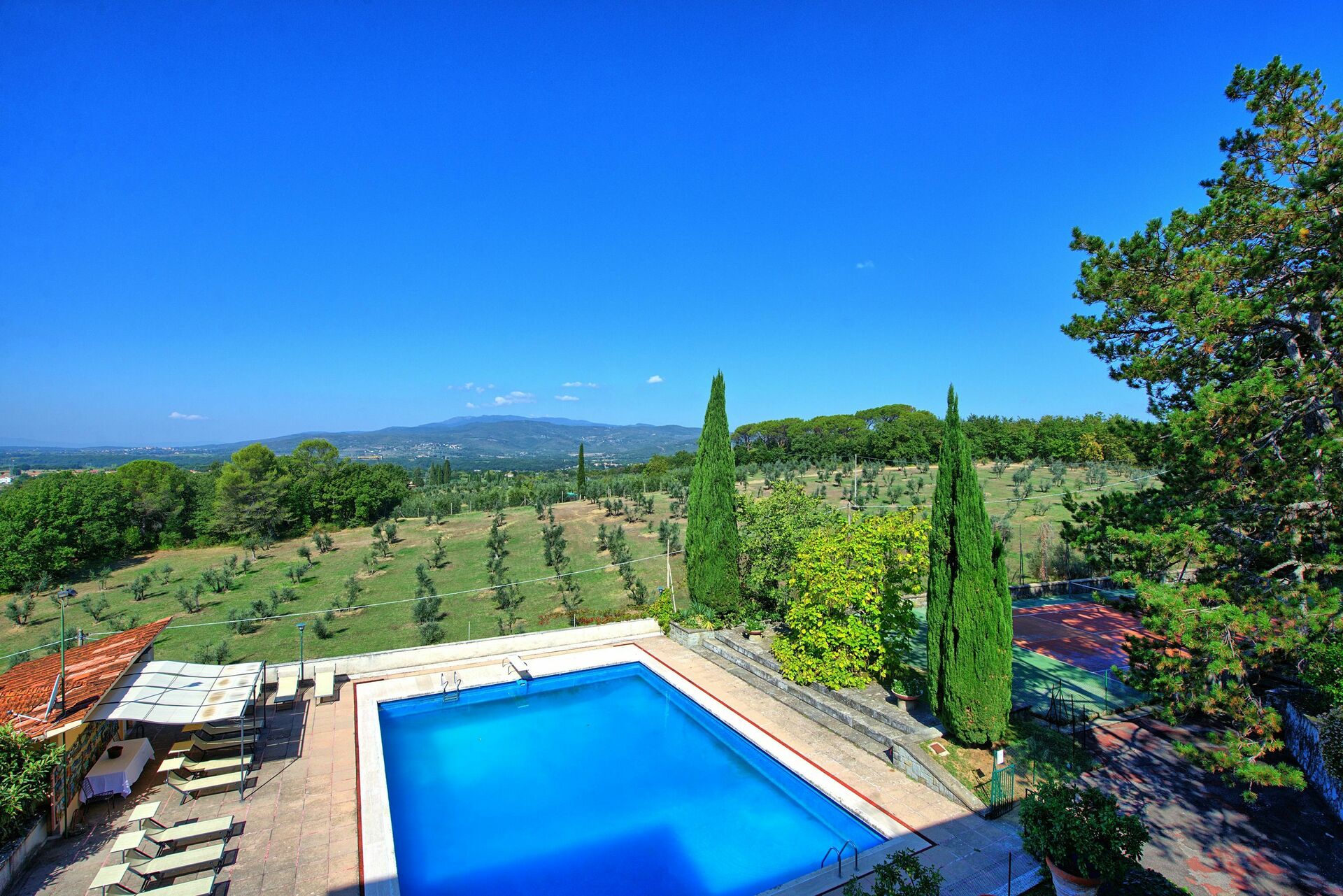 Huset har en privat pool i Toscana, der tilbyder store områder både indendørs og udendørs. Ejendommen er et perfekt sted for en afslappende ferie: en stor park med tennisbane og en panorama-pool, som sikrer privatliv og nydelse for alle gæster.