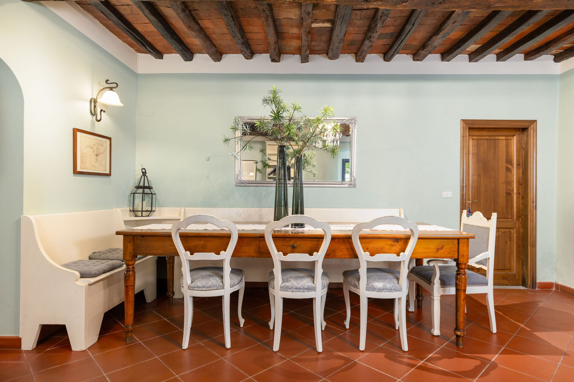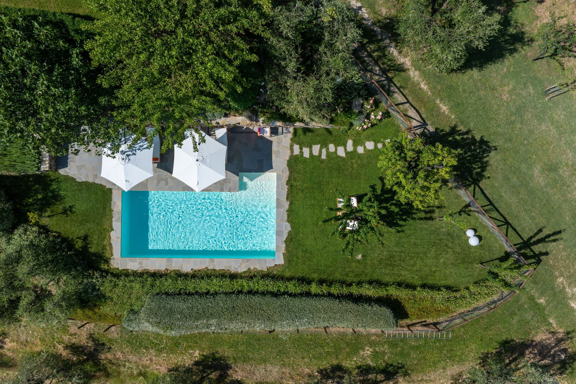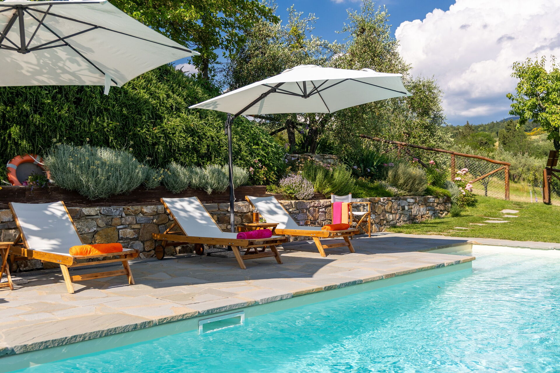 På udendørsområdet finder du en velholdt have og udendørs møbler til at kunne spise udendørs. Her er der også en ny privat pool med panoramaudsigt, hvor du kan køle af på solrige dage i det smukke Toscana.