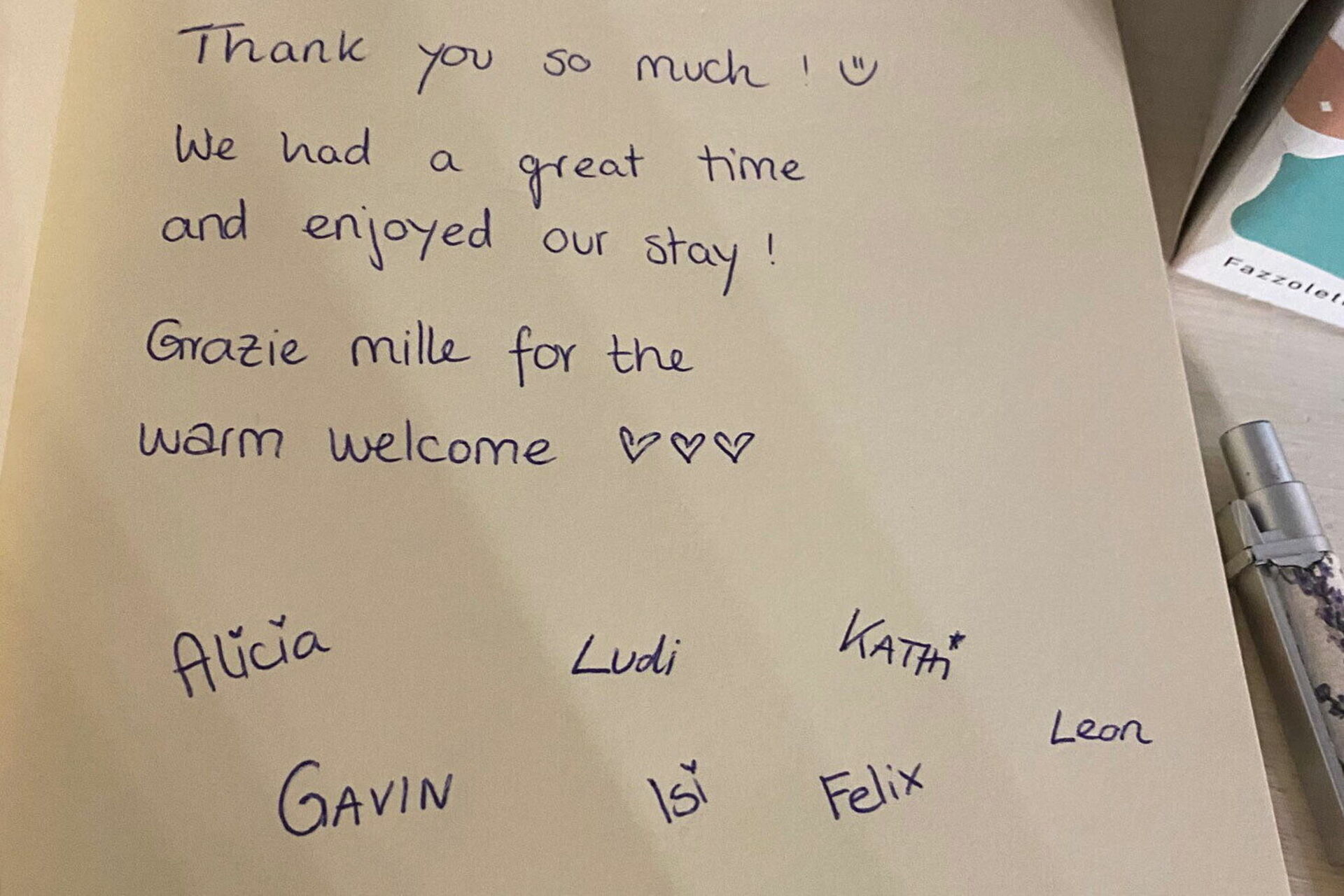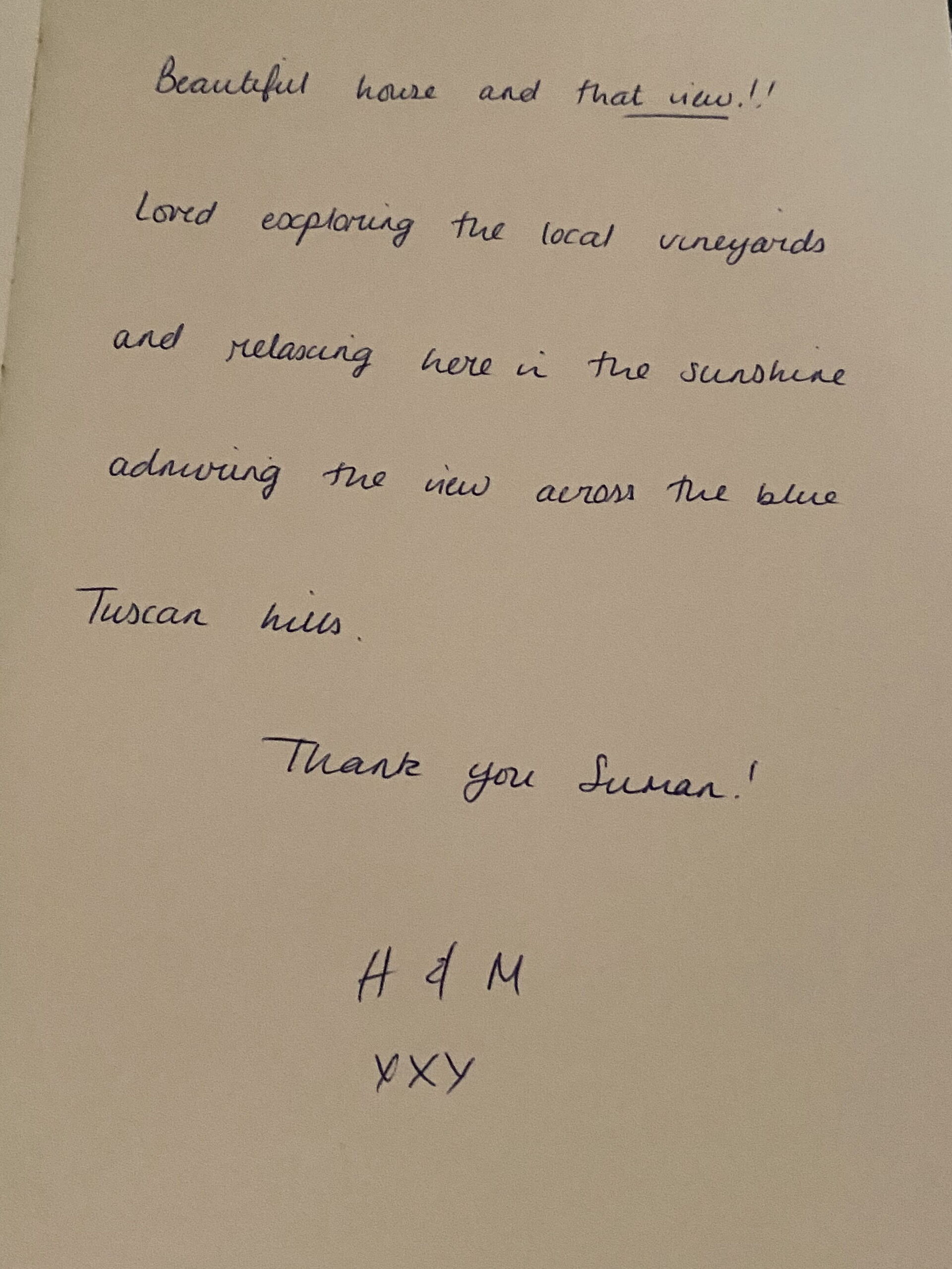 Merci à nos hôtes de tres bons Souvenure de Toscane en Famille.
