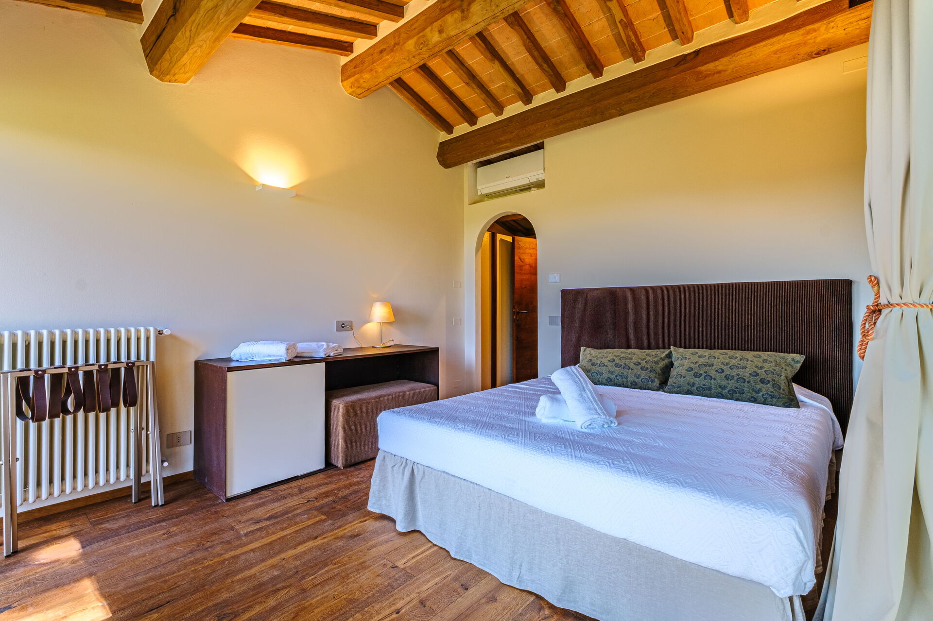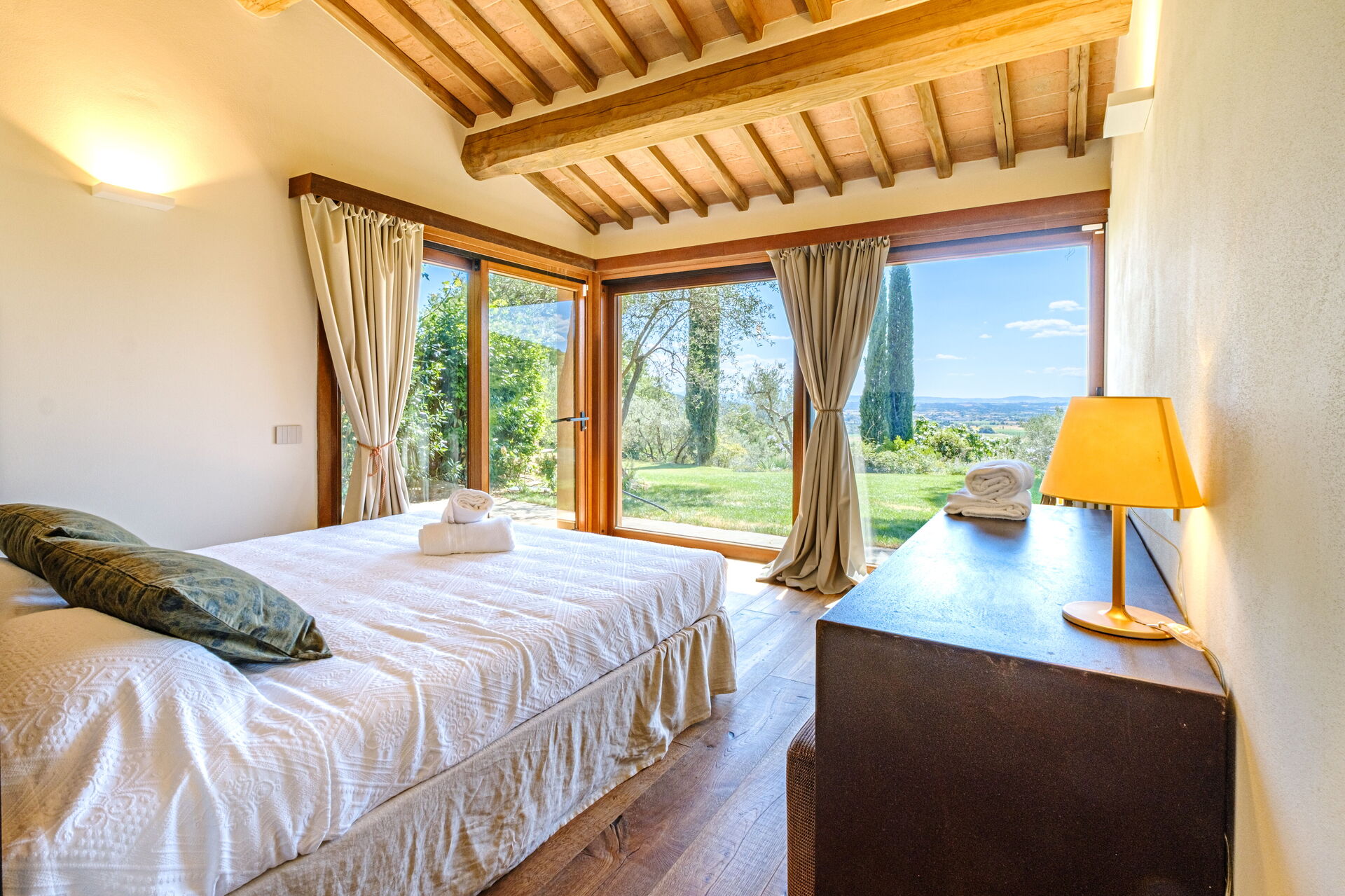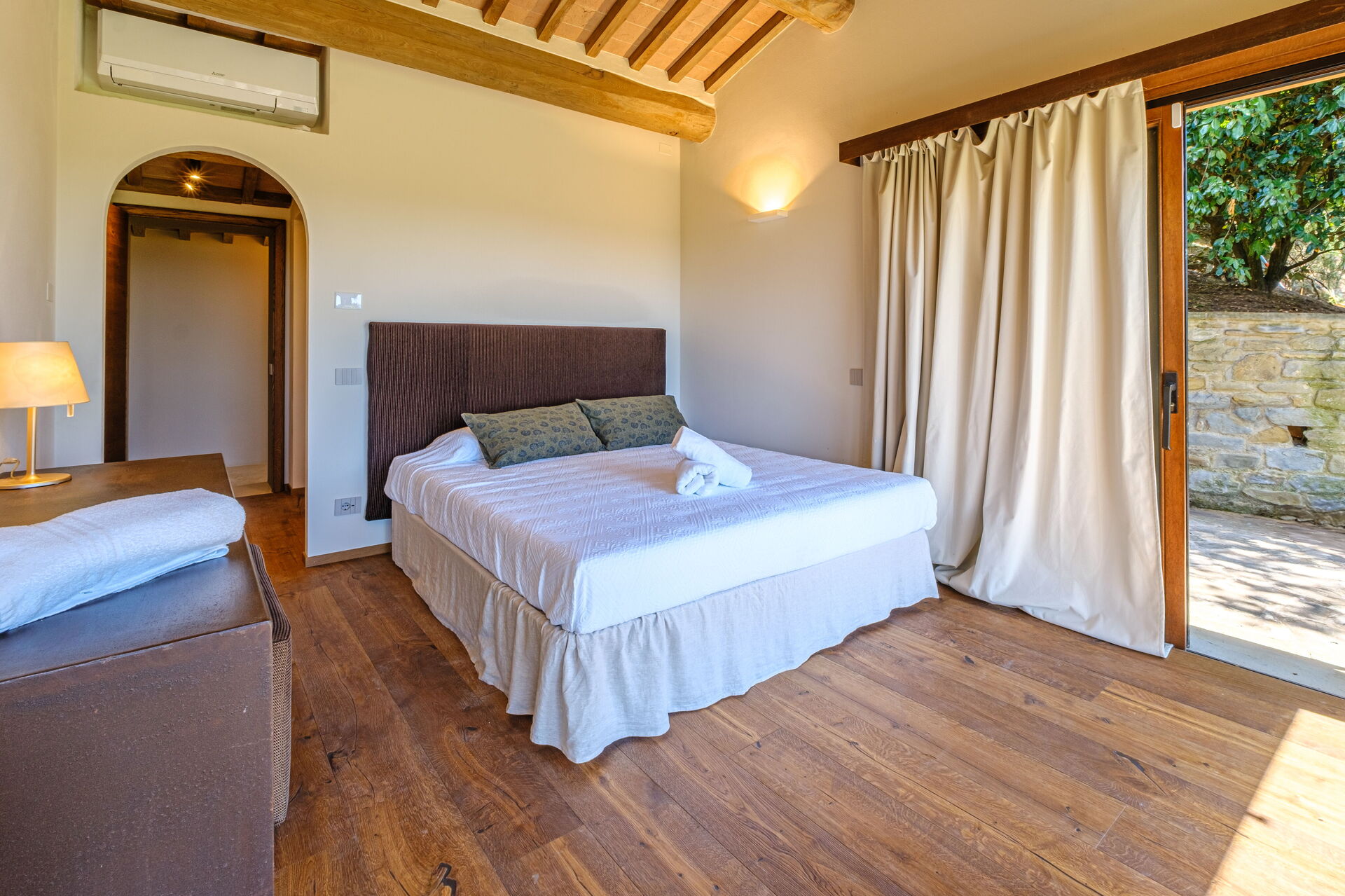Denne eksklusive ejendom er indrettet med smag og elegance; den er komfortabel og udstyret med moderne bekvemmeligheder, samtidig med at de originale arkitektoniske træk ved toscanske landhuse respekteres (synlige bjælker, brug af træ og lokale sten). Villa Roseto er i ét plan, har 5 soveværelser og kan rumme 10 personer; hyggelige fællesområder giver jer mulighed for at tilbringe et behageligt og uforglemmeligt ophold nær Cortona i selskab med venner og familie.