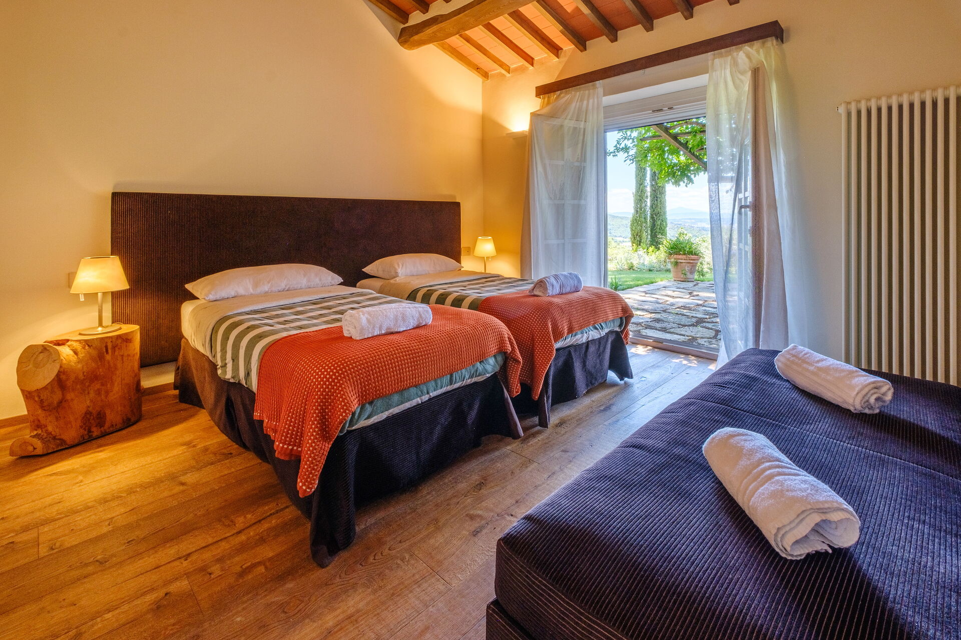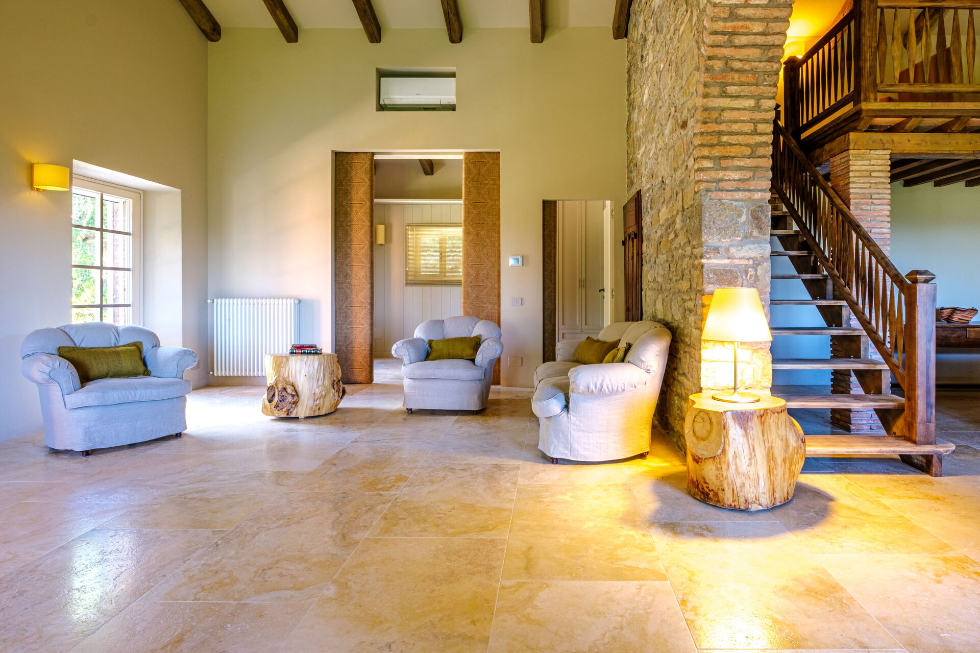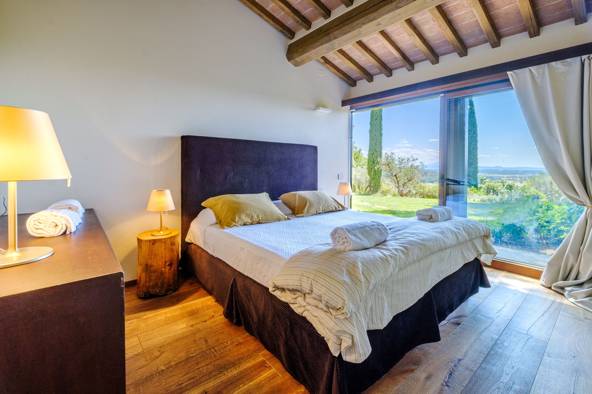 Denne eksklusive ejendom er indrettet med smag og elegance; den er komfortabel og udstyret med moderne bekvemmeligheder, samtidig med at de originale arkitektoniske træk ved toscanske landhuse respekteres (synlige bjælker, brug af træ og lokale sten). Villa Roseto er i ét plan, har 5 soveværelser og kan rumme 10 personer; hyggelige fællesområder giver jer mulighed for at tilbringe et behageligt og uforglemmeligt ophold nær Cortona i selskab med venner og familie.