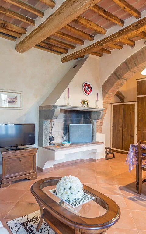 Stueetage: stue med dobbelt sovesofa (mod ekstra gebyr), spisestue med køkken og pejs, to soveværelser med dobbeltsenge, to badeværelser med bruser.