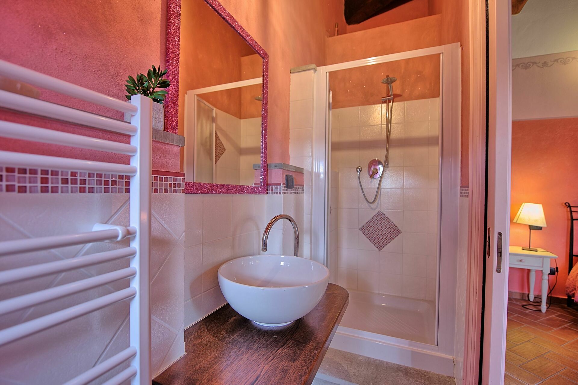 Første sal : dobbeltværelse, badeværelse med bruser, soveværelse med dobbeltseng, soveværelse med dobbeltseng med eget badeværelse med bruser (ingen bidet), dobbeltværelse med privat toilet (adgang via tre trin)