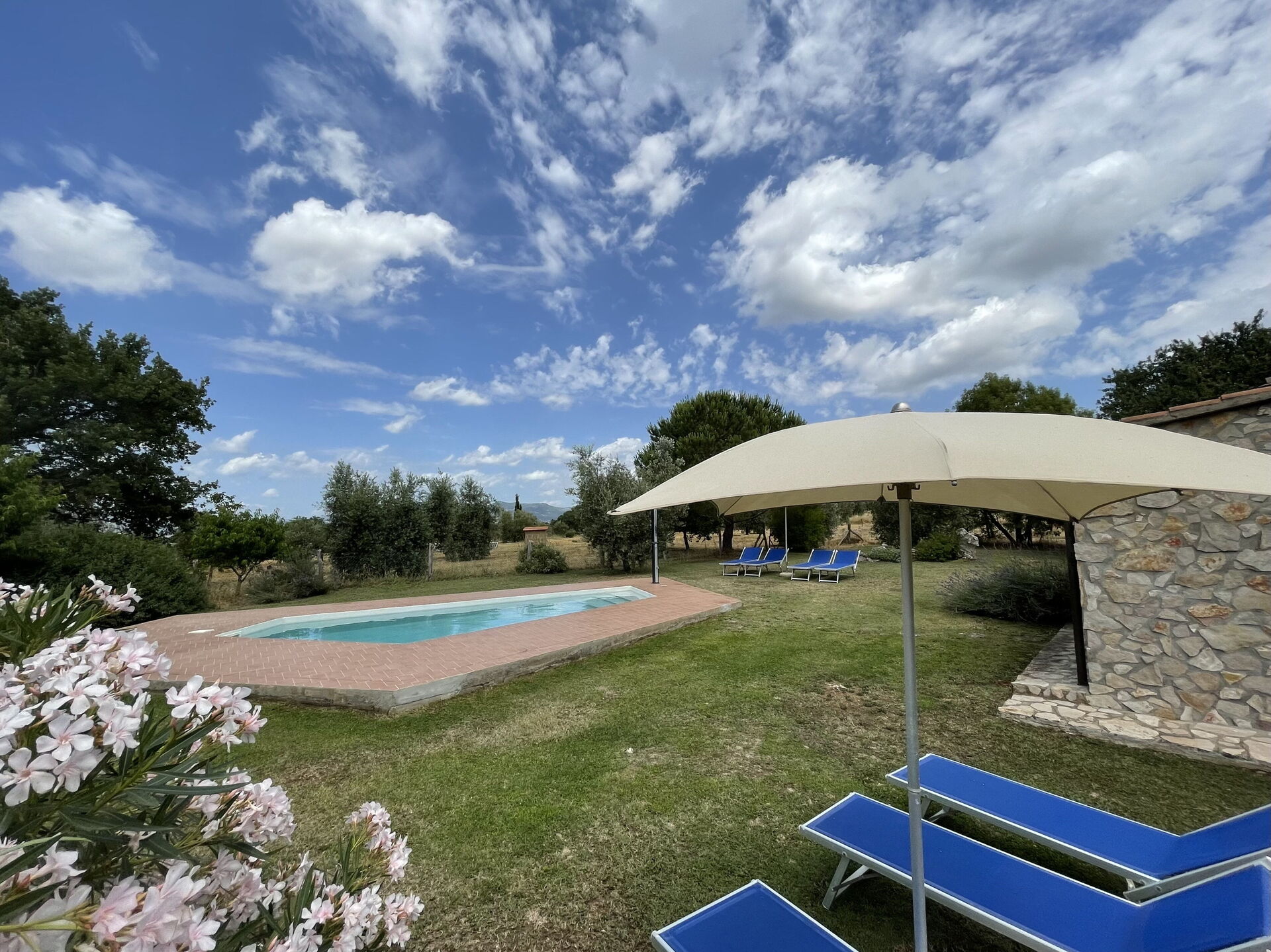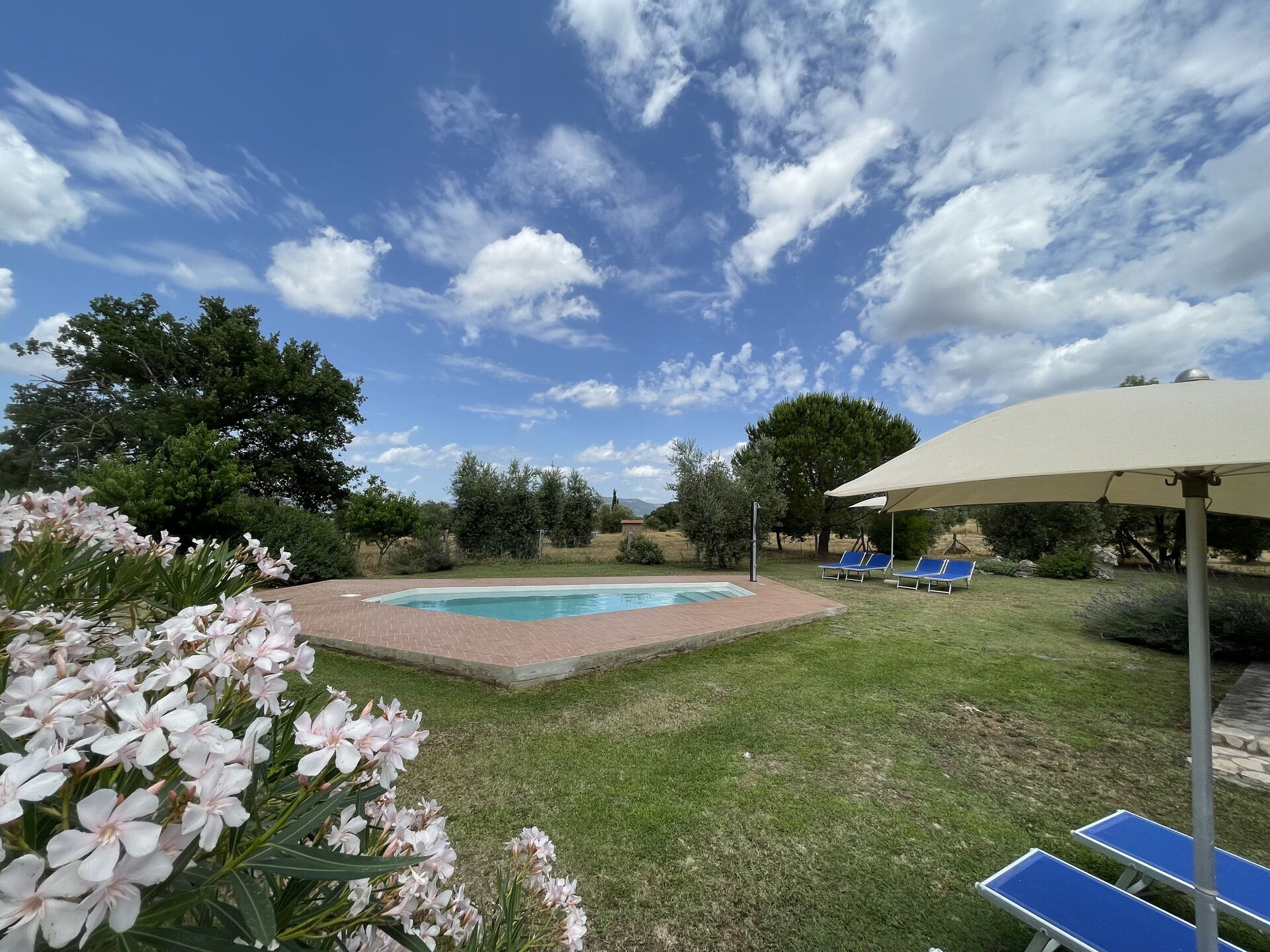 Haven er stor og velholdt med den dejlige private pool i centrum. Ejendomsejerne bor i nærheden og driver en gård.