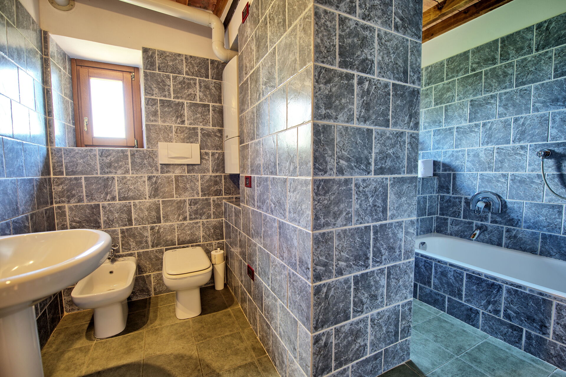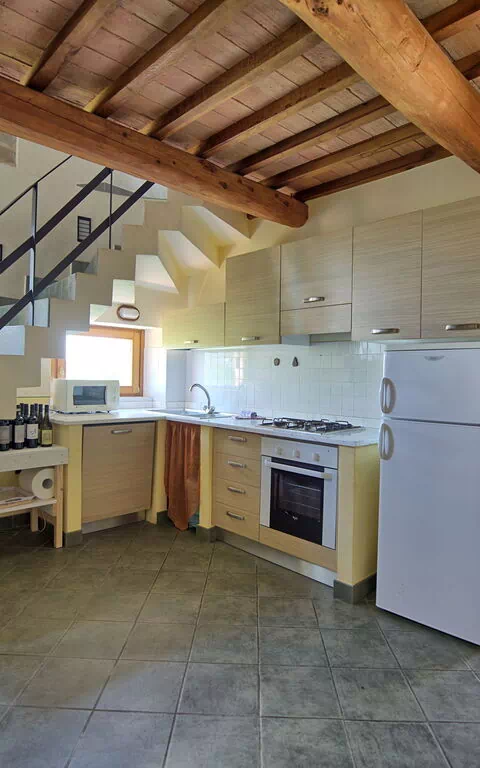 Ground floor: kitchen (dishwasher, moka coffee maker, refrigerator, freezer, oven, microwave), dining room, bathroom with bathtub and washing machine.