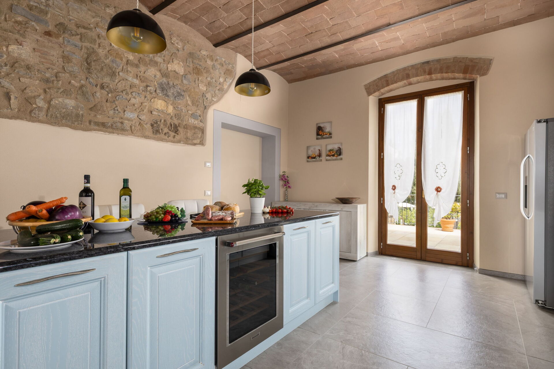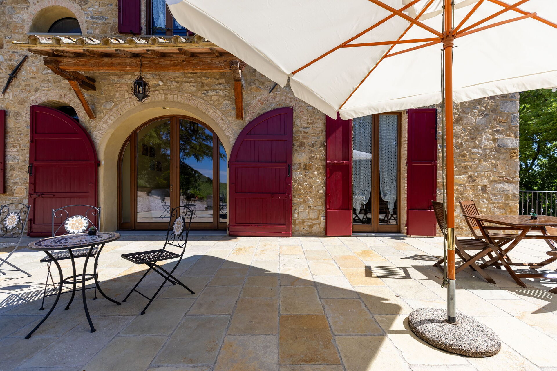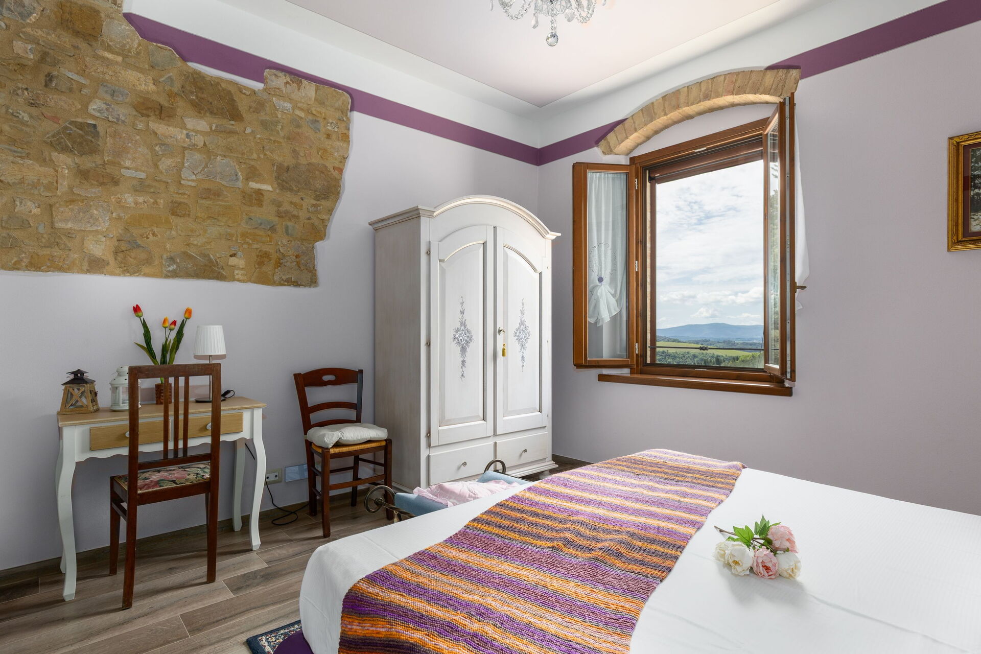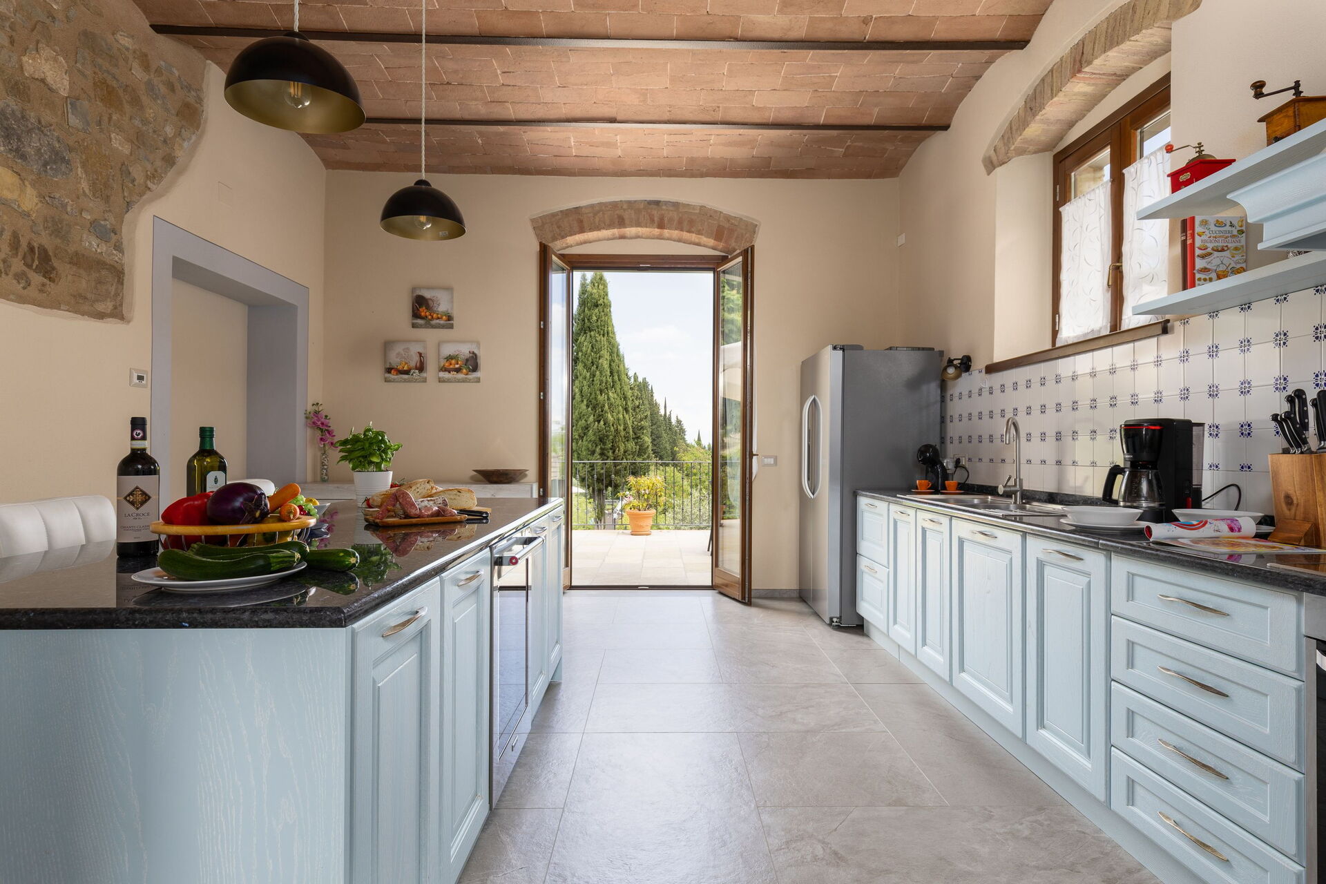 Udendørs er der en terrasse med borde og stole, så gæsterne kan nyde måltider under åben himmel med smuk udsigt over landskabet. Den velholdte have, med en fuldt indhegnet pool og liggestole, er det perfekte sted at slappe af på solrige sommerdage i Toscana.