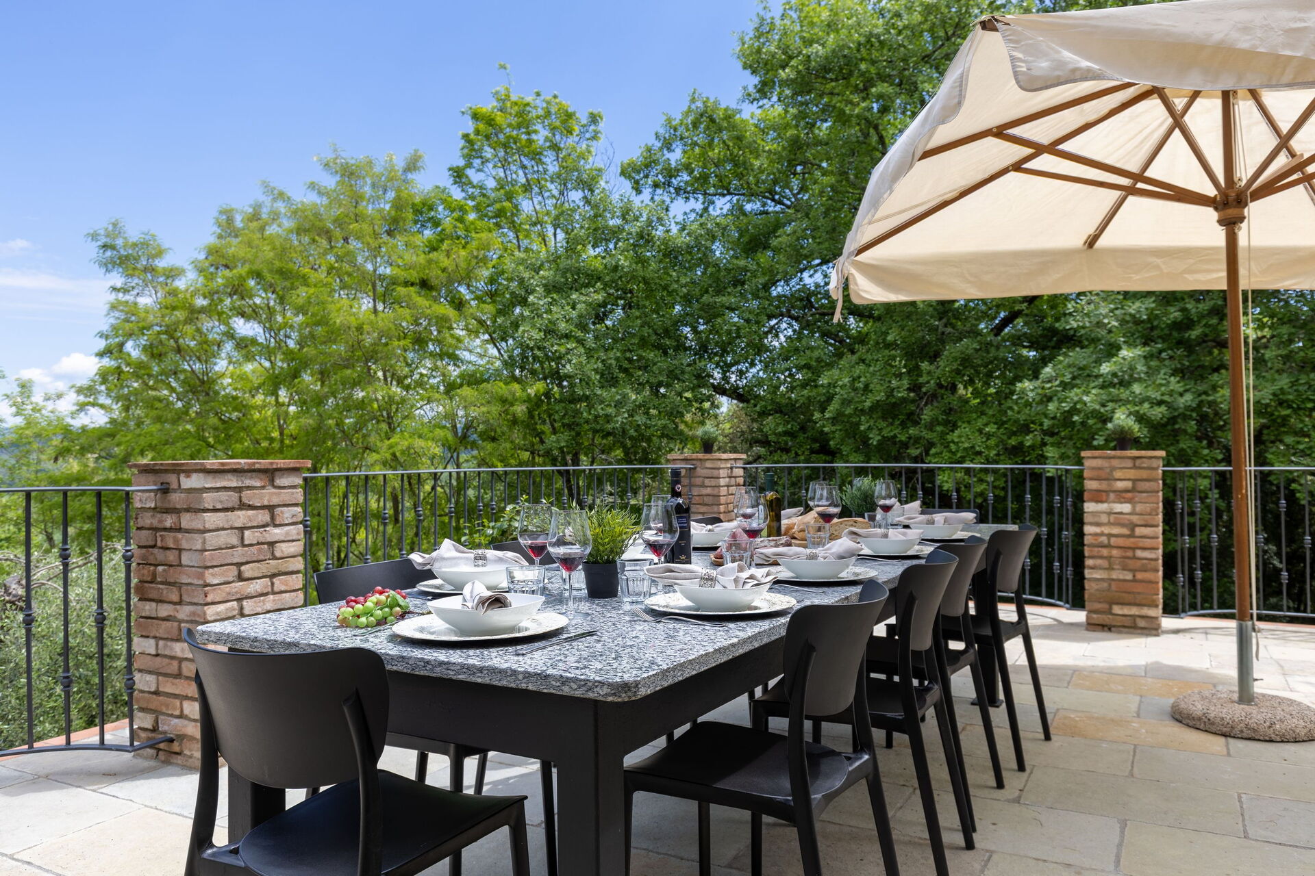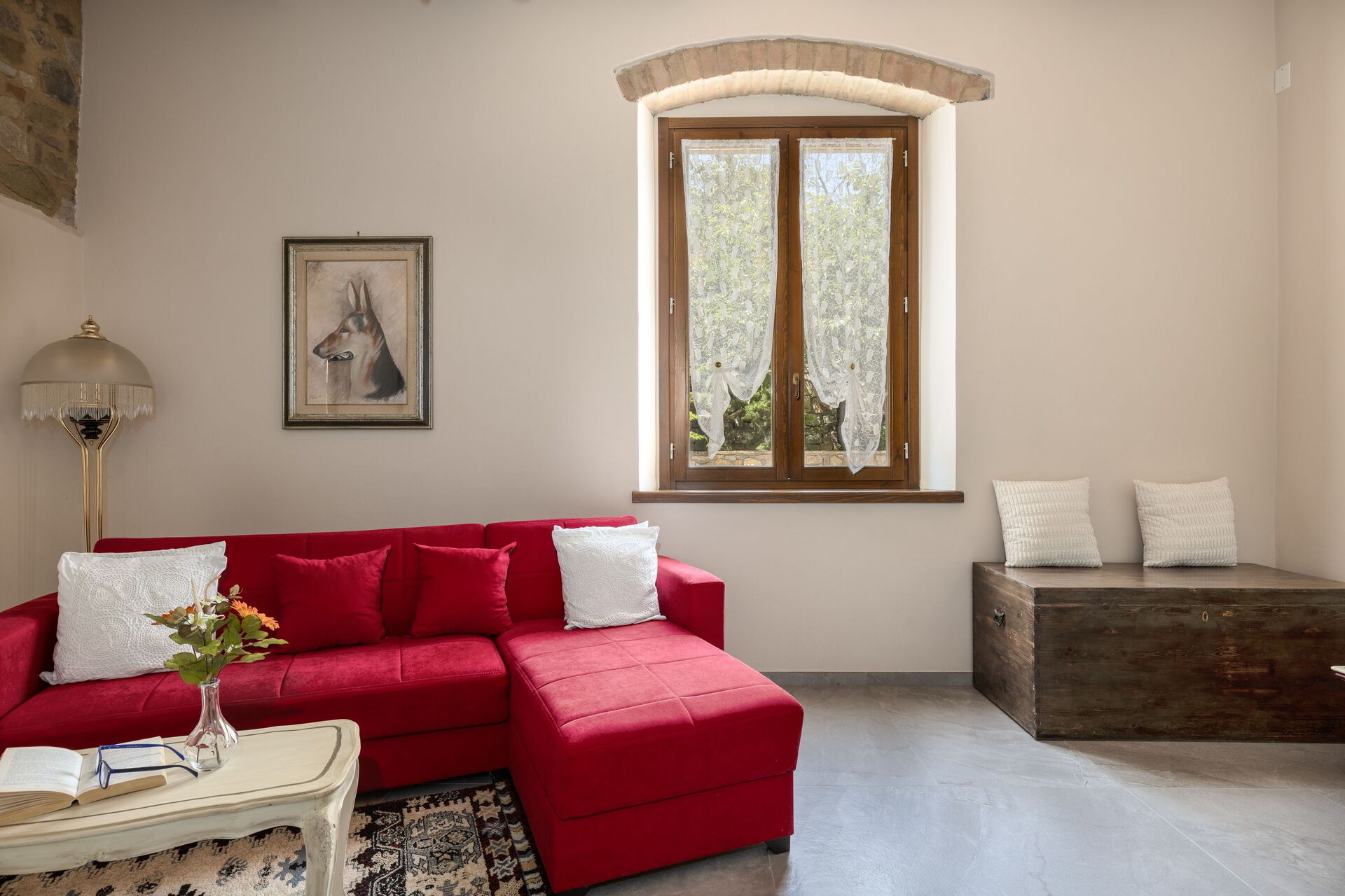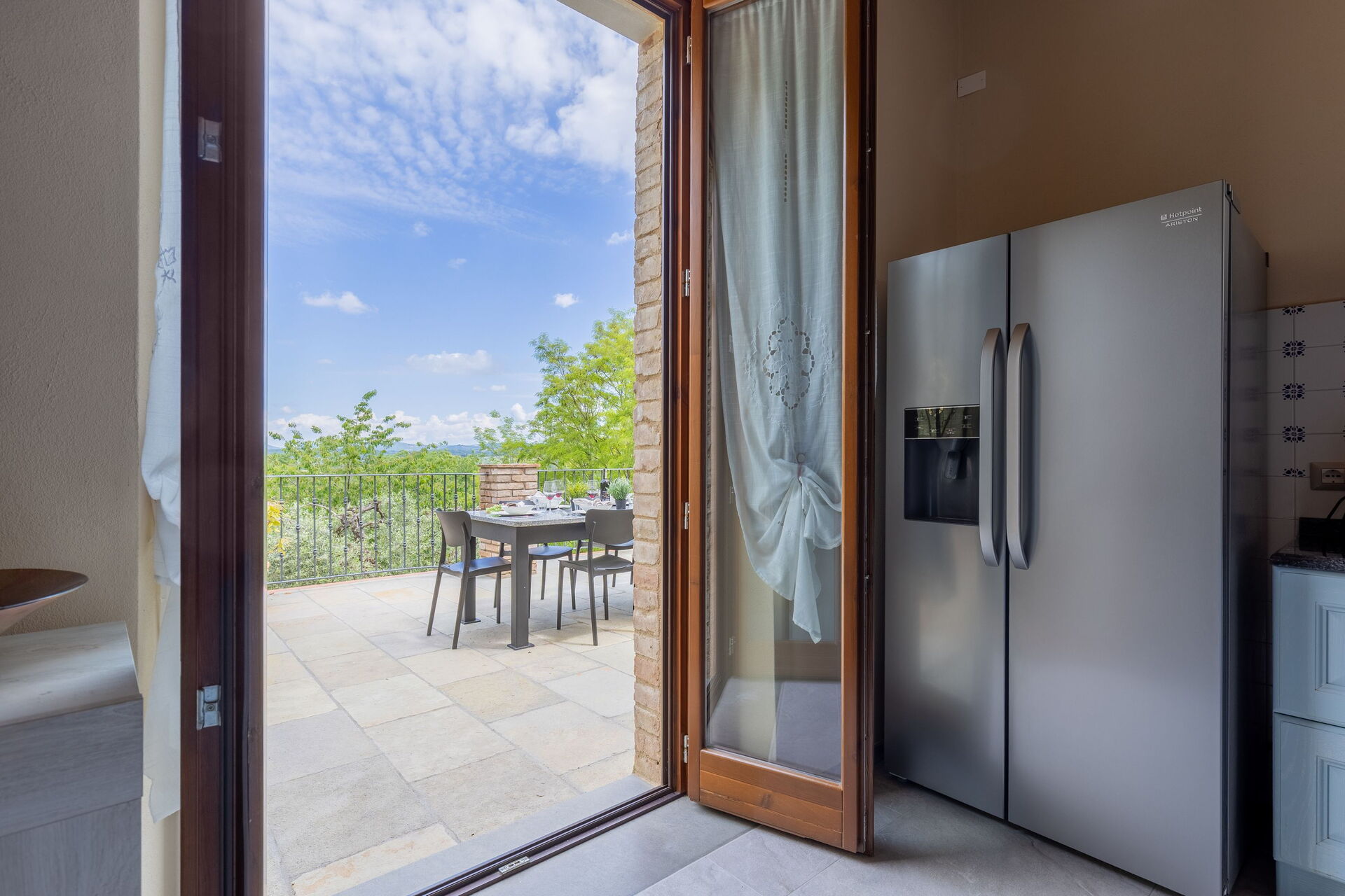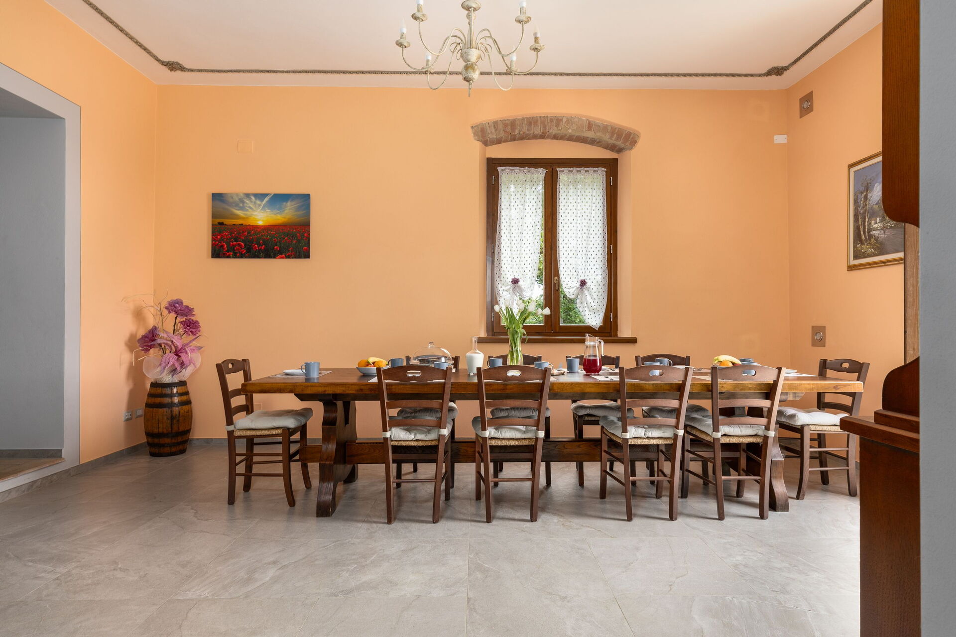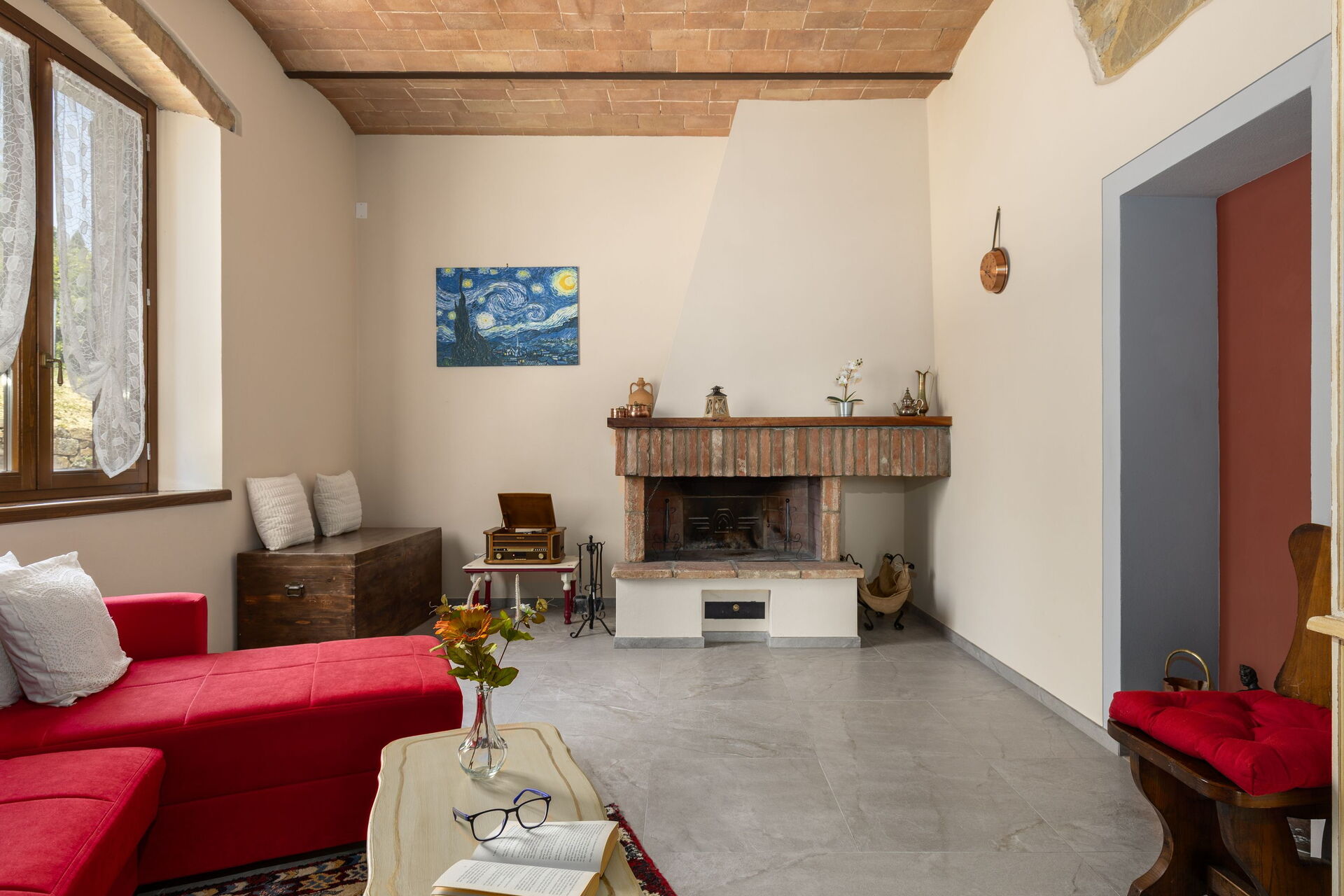 Udendørs er der en terrasse med borde og stole, så gæsterne kan nyde måltider under åben himmel med smuk udsigt over landskabet. Den velholdte have, med en fuldt indhegnet pool og liggestole, er det perfekte sted at slappe af på solrige sommerdage i Toscana.