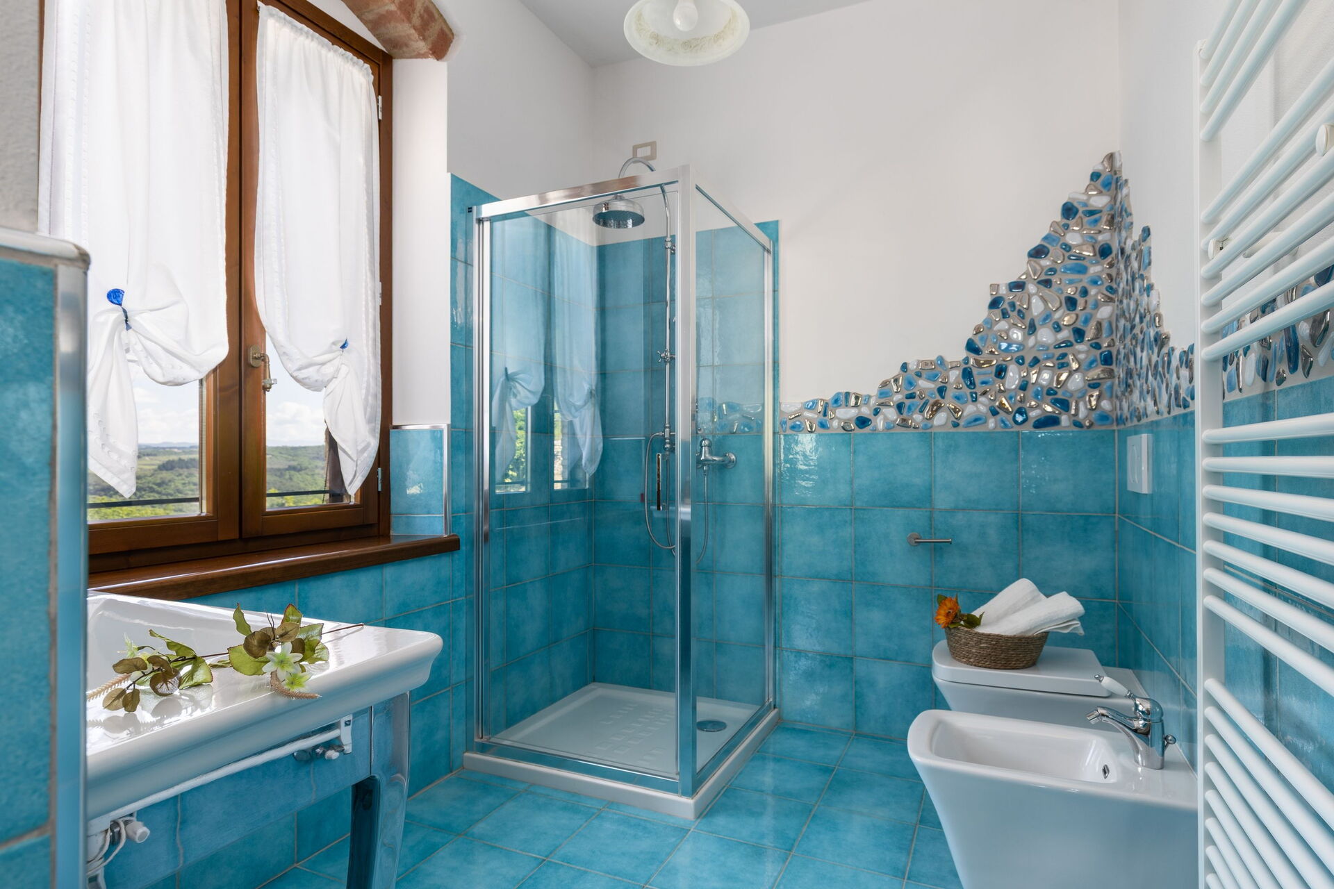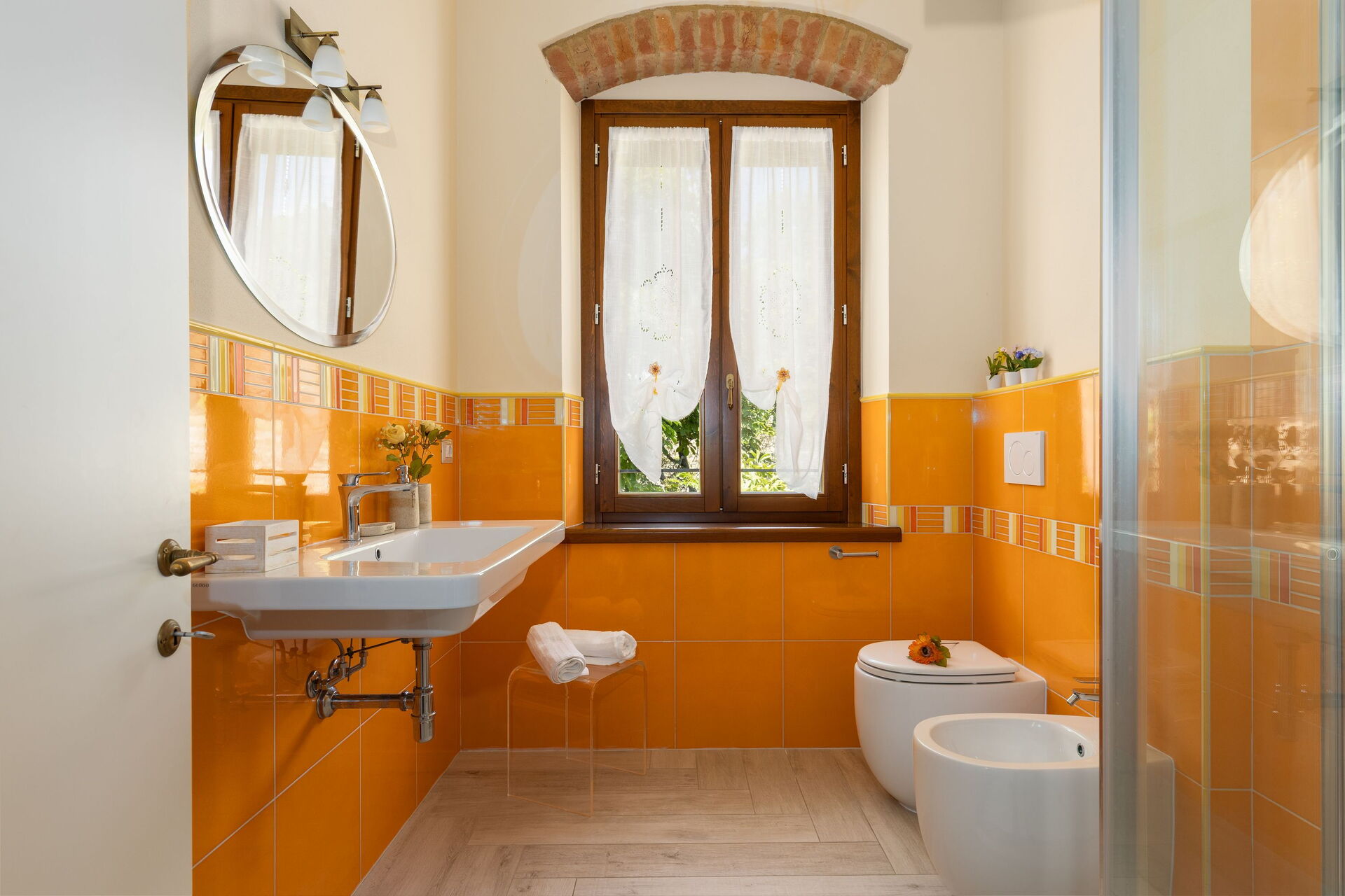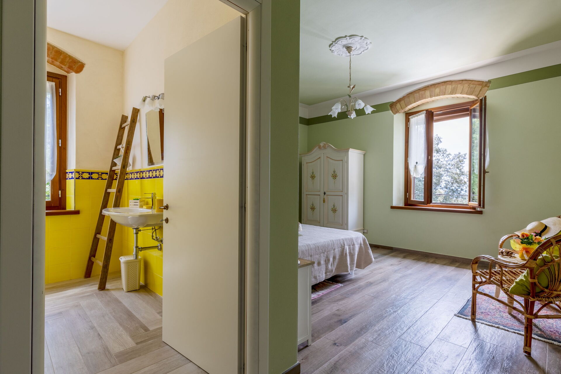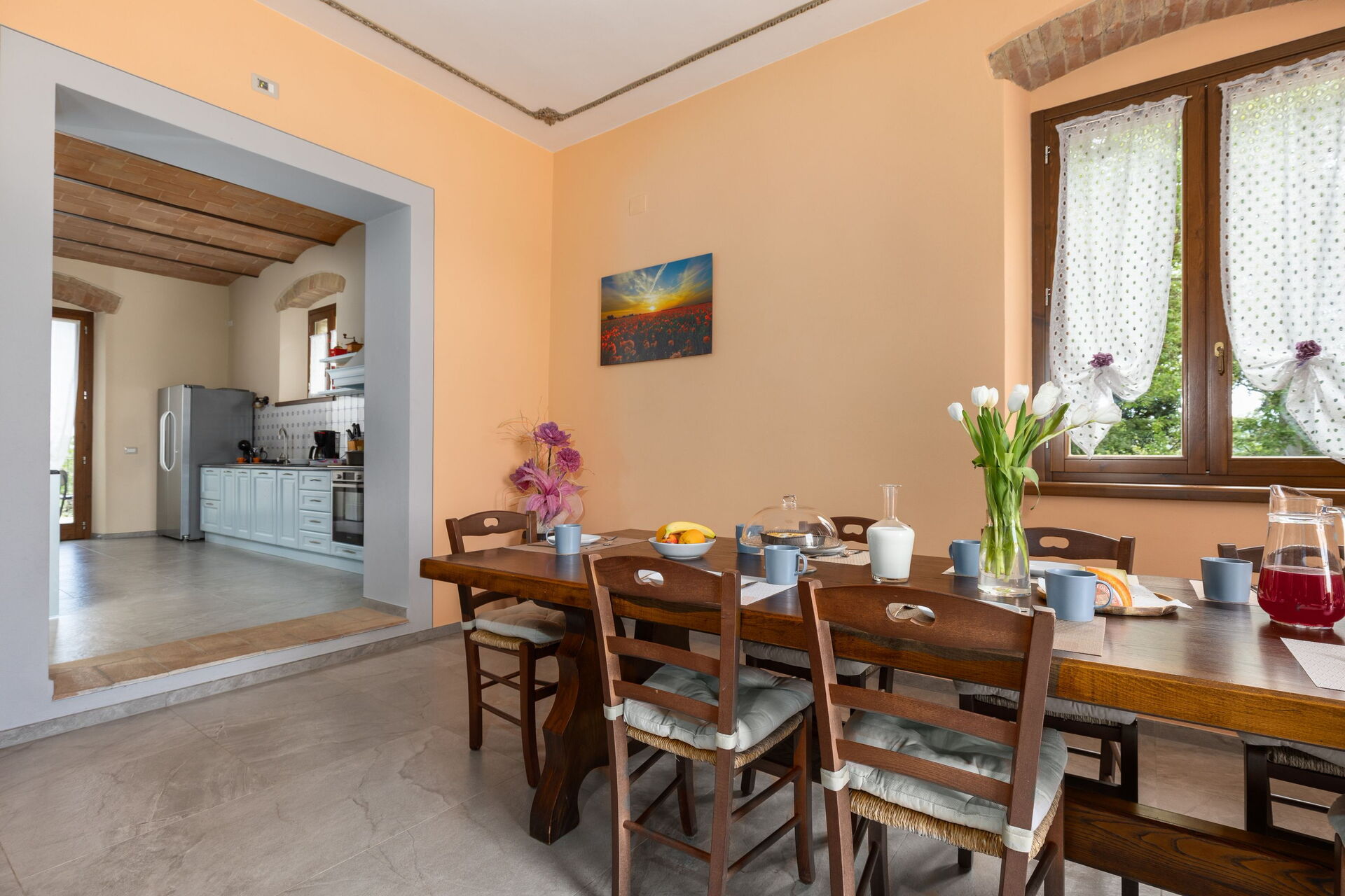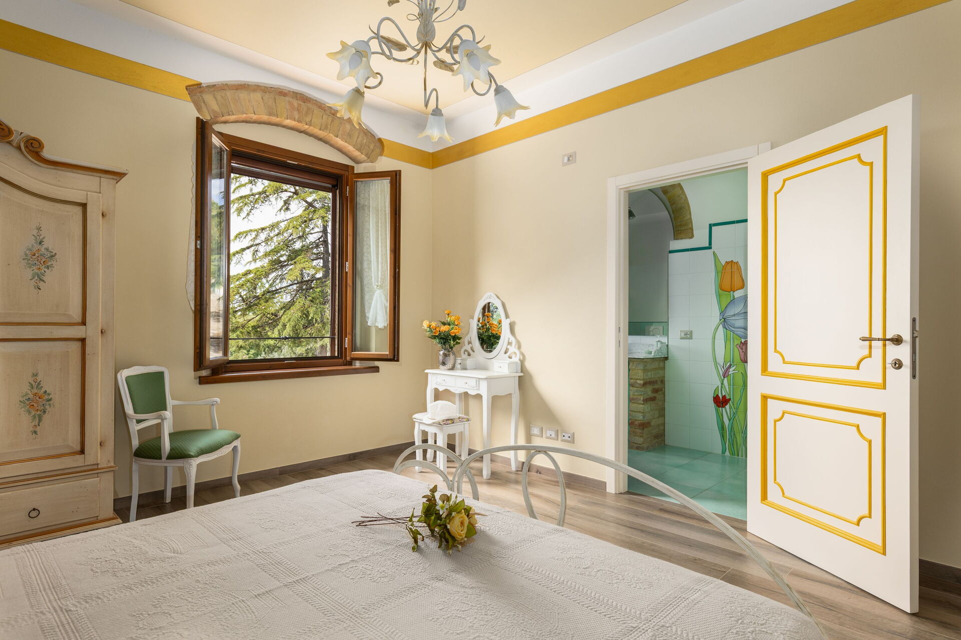 Udendørs er der en terrasse med borde og stole, så gæsterne kan nyde måltider under åben himmel med smuk udsigt over landskabet. Den velholdte have, med en fuldt indhegnet pool og liggestole, er det perfekte sted at slappe af på solrige sommerdage i Toscana.