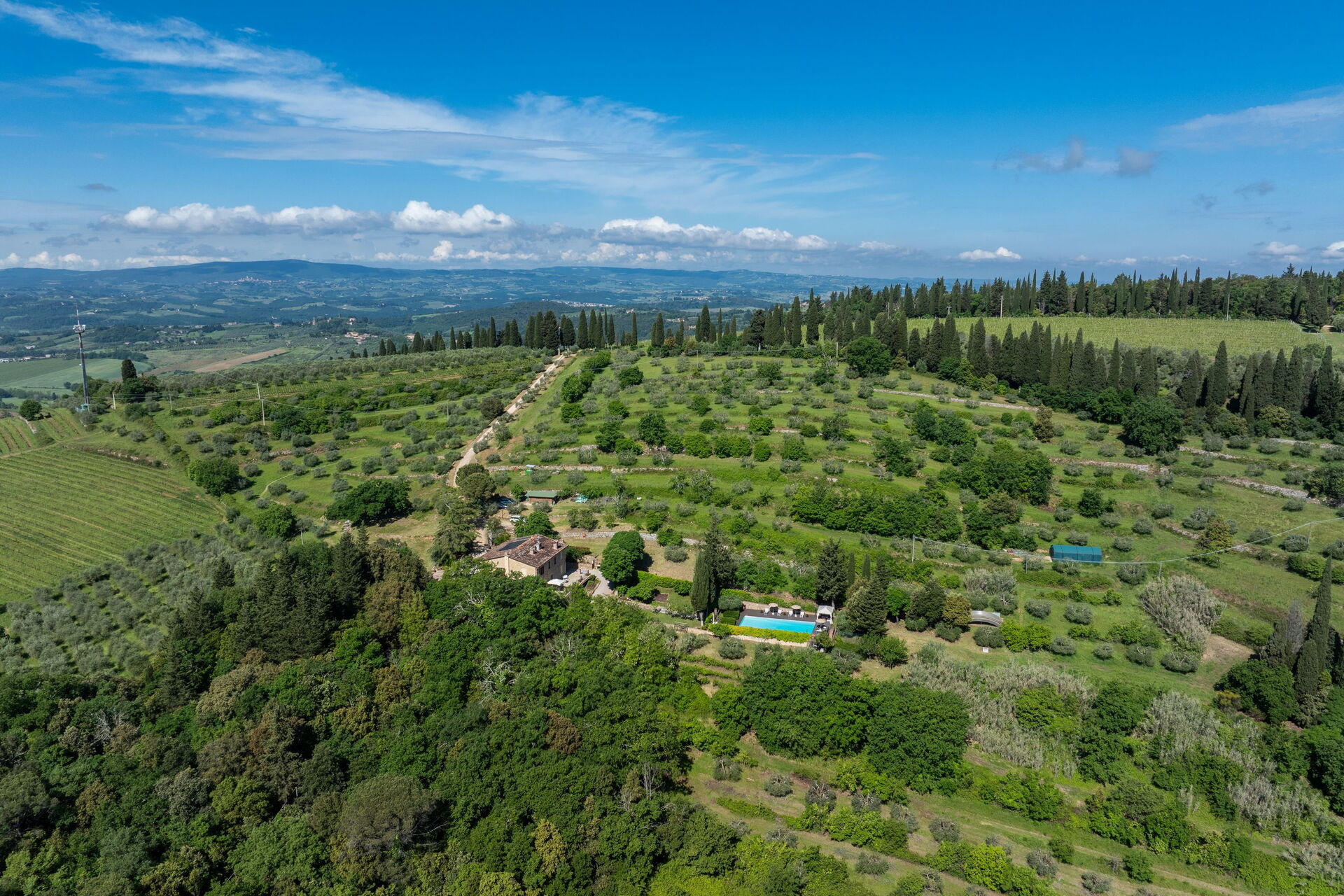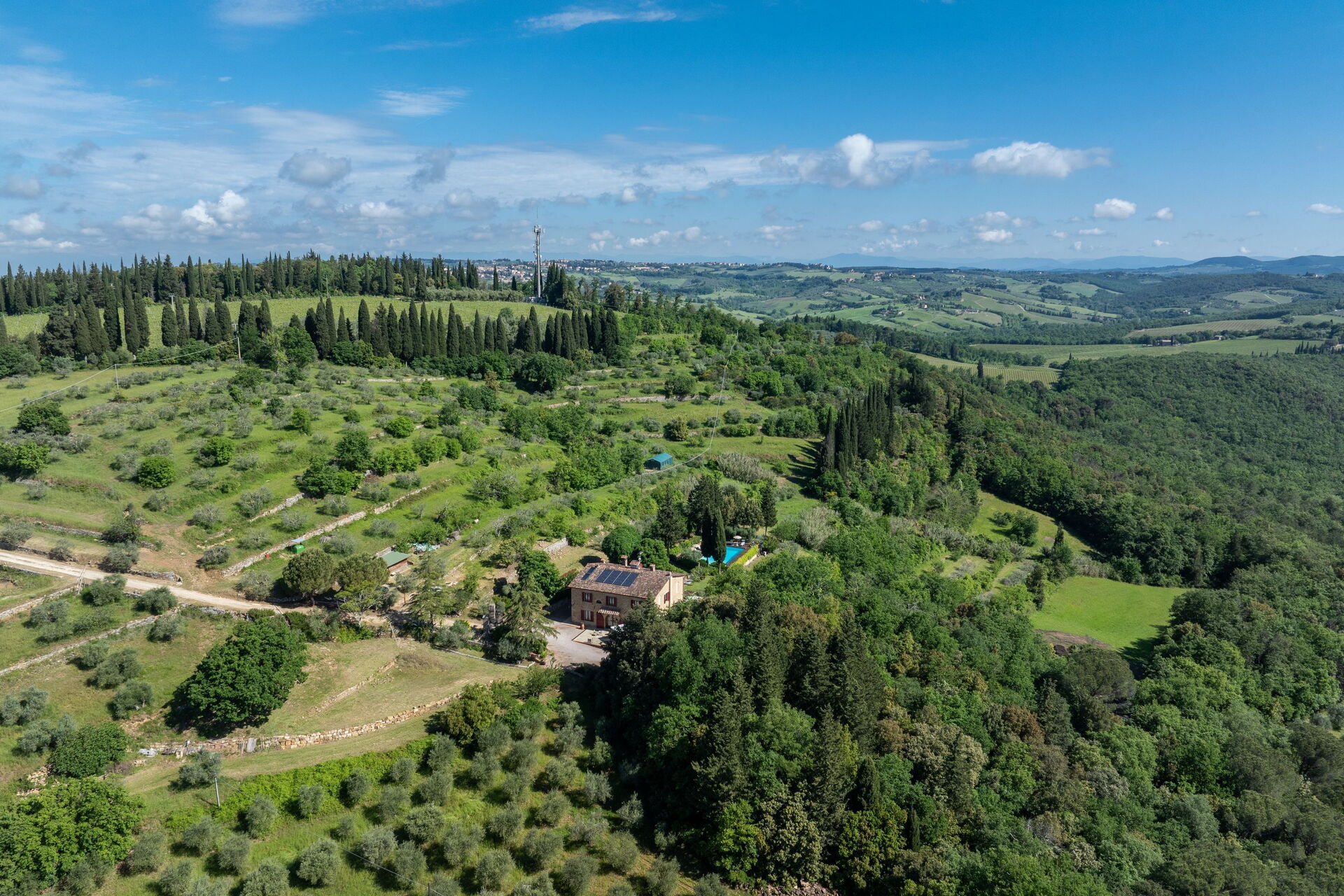 Afstande: Poggibonsi med butikker af alle slags 7 km, Barberino Tavarnelle 12 km, San Gimignano 18 km, Monteriggioni 23 km, Siena 38 km, Volterra 48 km, Chianti-byerne ligger indenfor en radius af 25–50 km, Firenze 48 km, Firenze (lufthavn) 53 km, Pisa (lufthavn) 95 km.