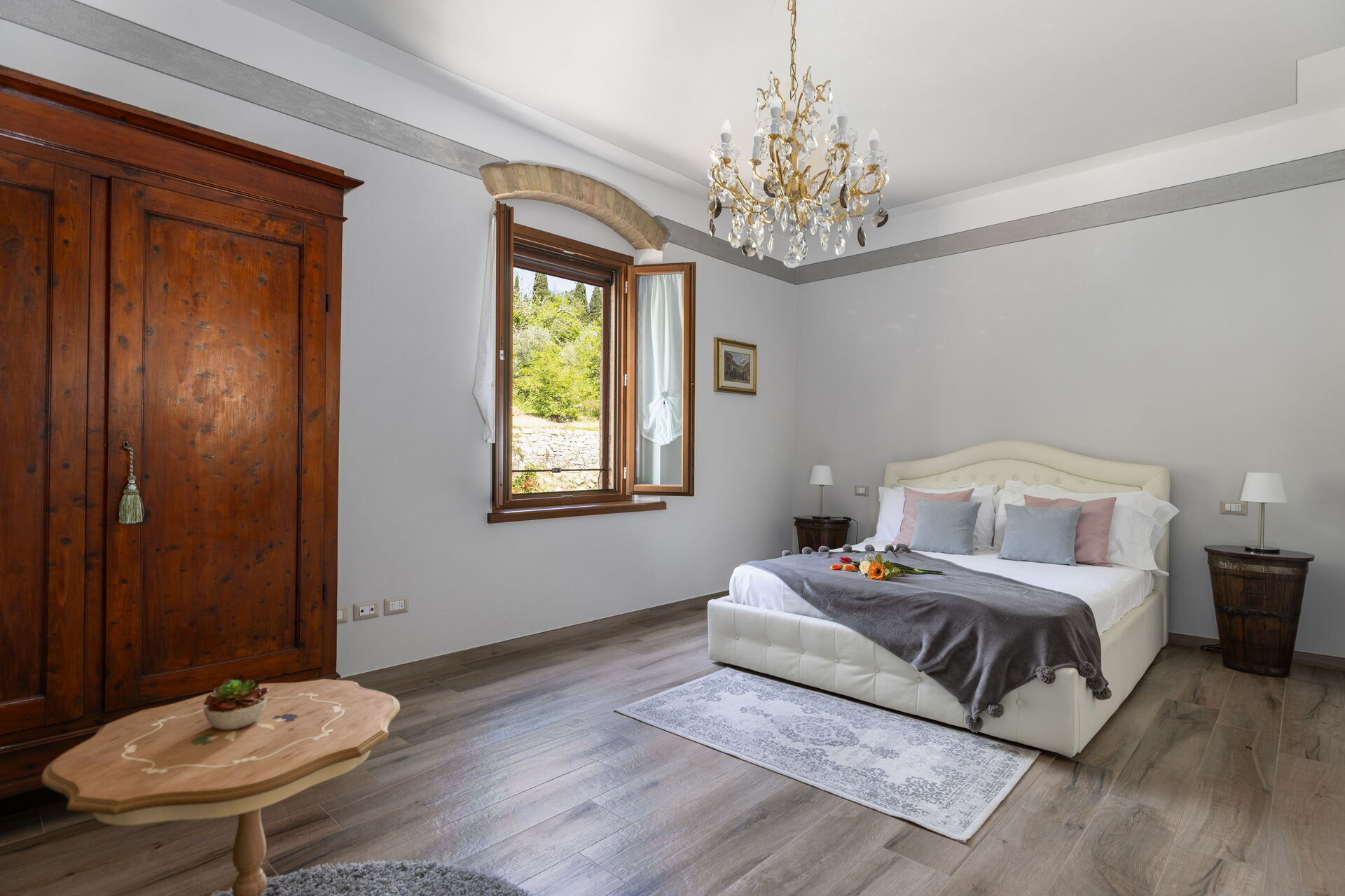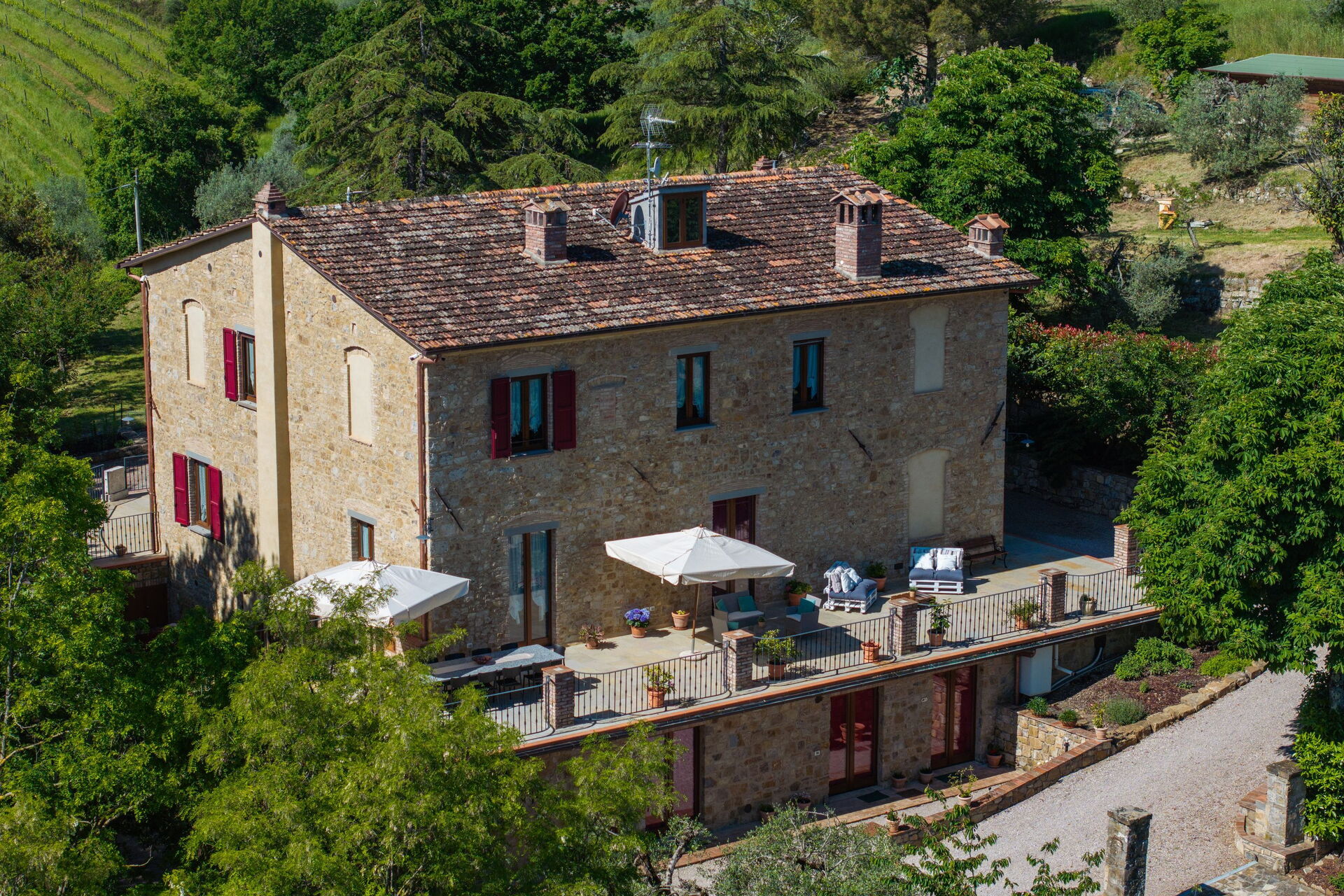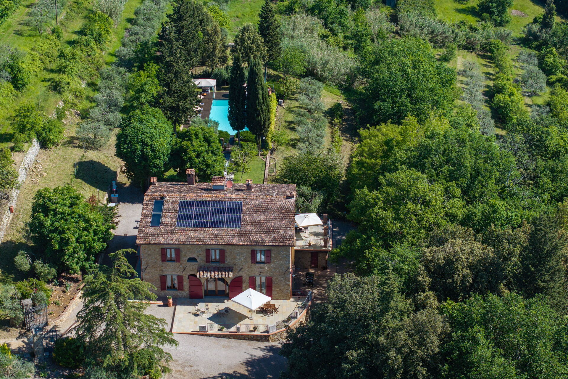 Denne storslåede luksusvilla i Toscana er omgivet af olivenlunde og vinmarker; ejerne producerer fremragende olivenolie. Alt dette gør Tenuta Macericca til det perfekte sted for en afslappende og komfortabel ferie i hjertet af vinområdet Chianti Classico og de mest kendte seværdigheder i Toscana.