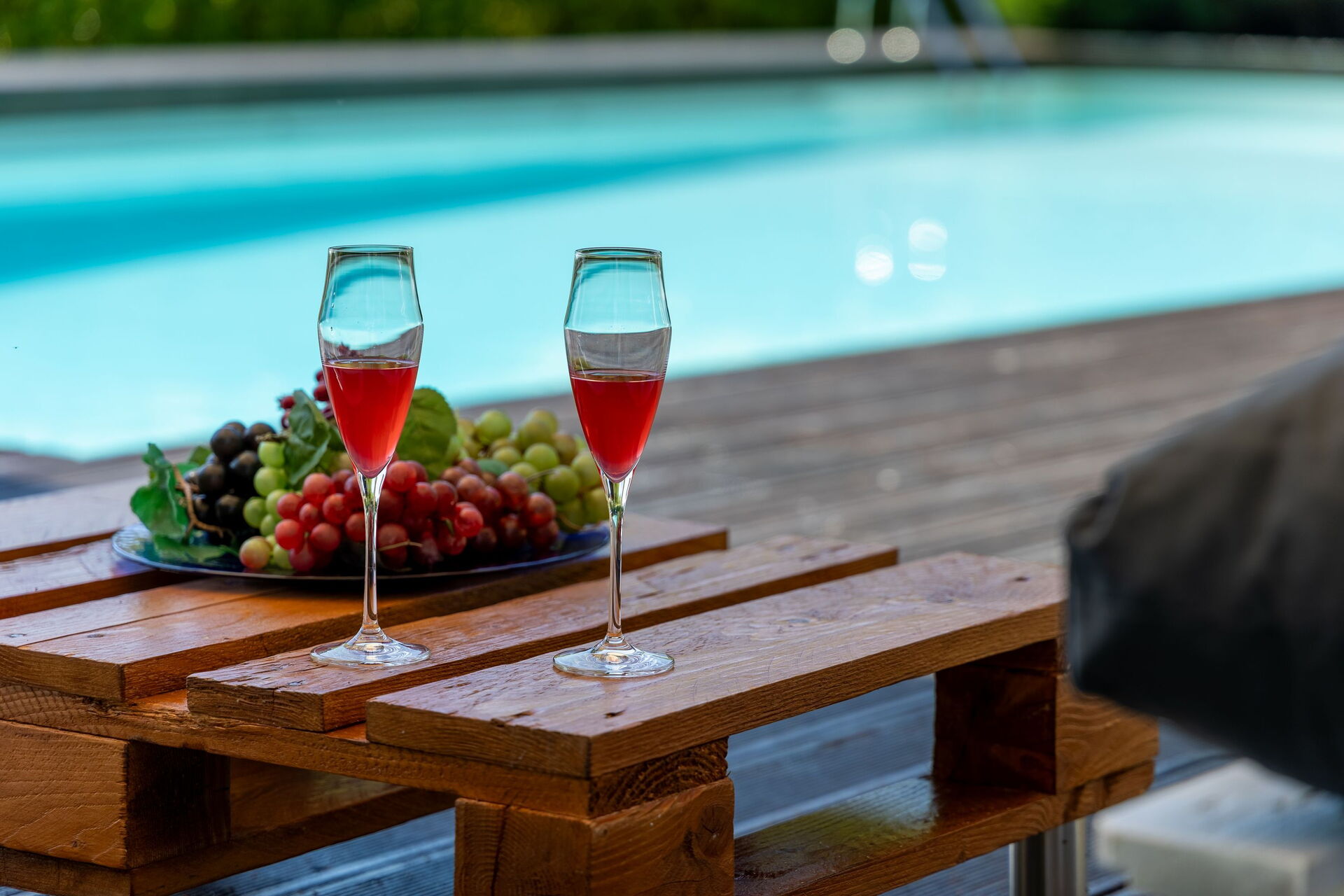 - privat, indhegnet pool (14 x 7 m – minimum dybde: 0,95 m; maksimum dybde: 2,3 m)