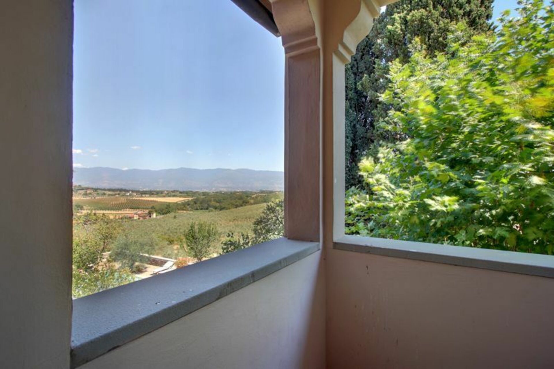 Feriehuset er en del af et stort og traditionelt delt palæ (den anden del af huset ligger bag på bygningen), men gæsterne har stadig fuld privatliv. Fra poolen har du en smuk panoramaudsigt over det omkringliggende landskab.