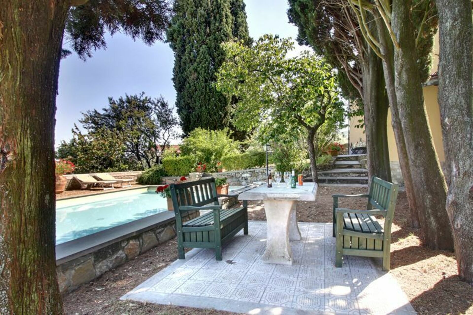 3. The pool itself was rather shallow and surrounded by cypress trees, lovely to look at but regularly needed pine needles removing. This was only undertaken once during our two week stay. We did it the rest of the time. The dirty water led to an ear infection for one of our party.
