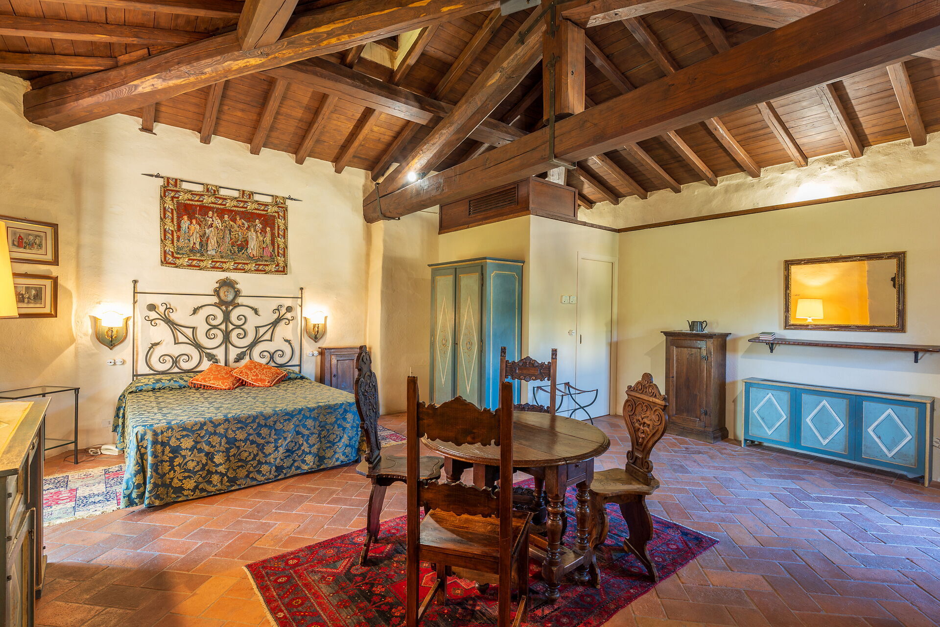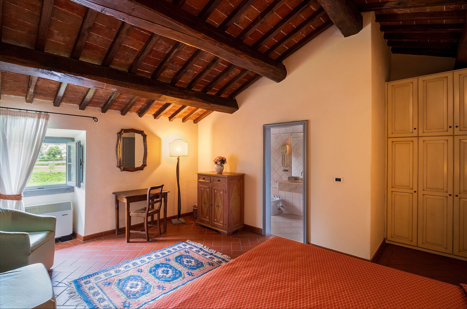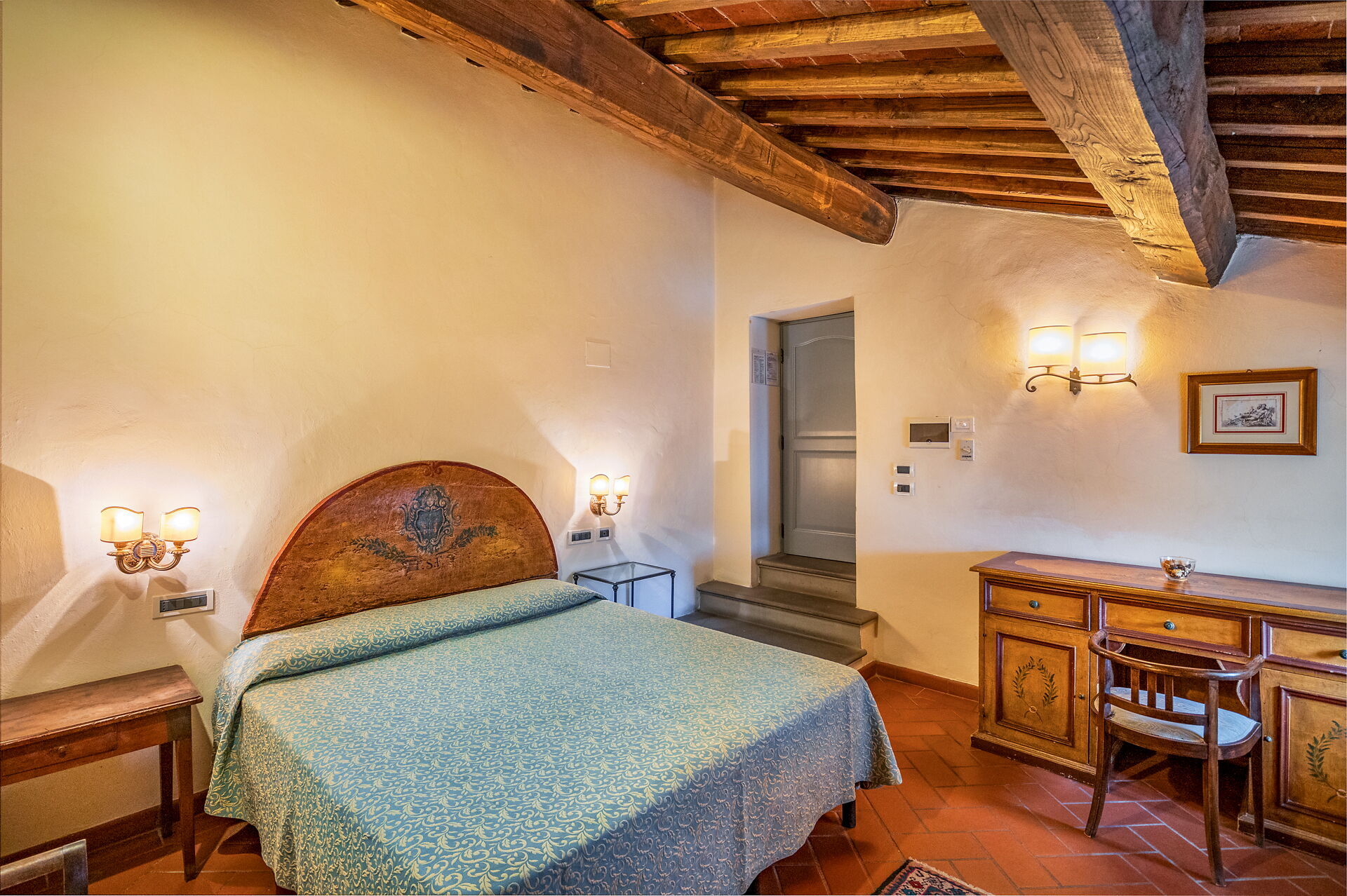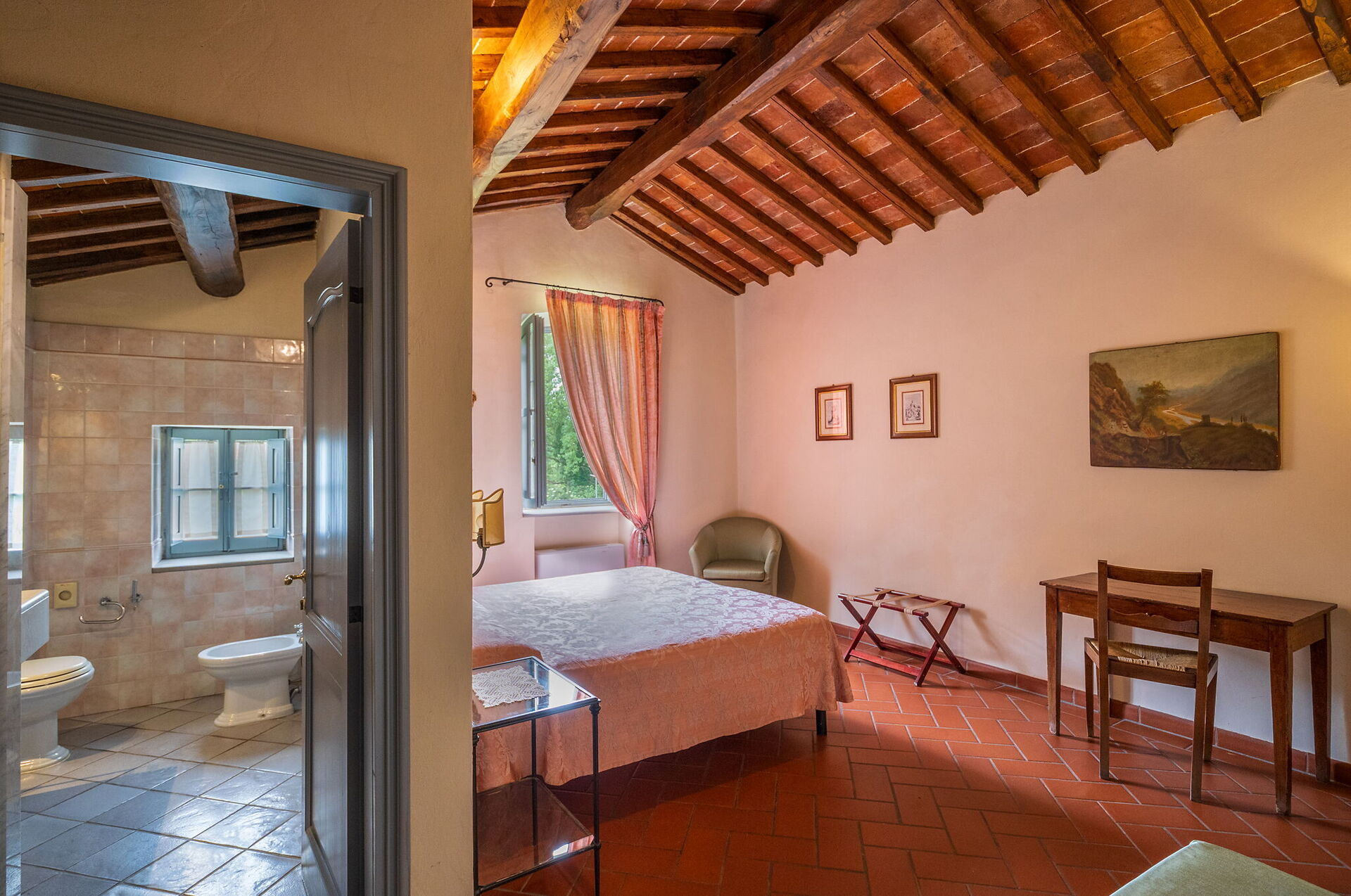 Stueetage: suite med indgang fra en panoramaterrasse med udsigt over Arno. Denne suite består af et soveværelse med dobbeltseng og eget badeværelse med badekar og bruser.