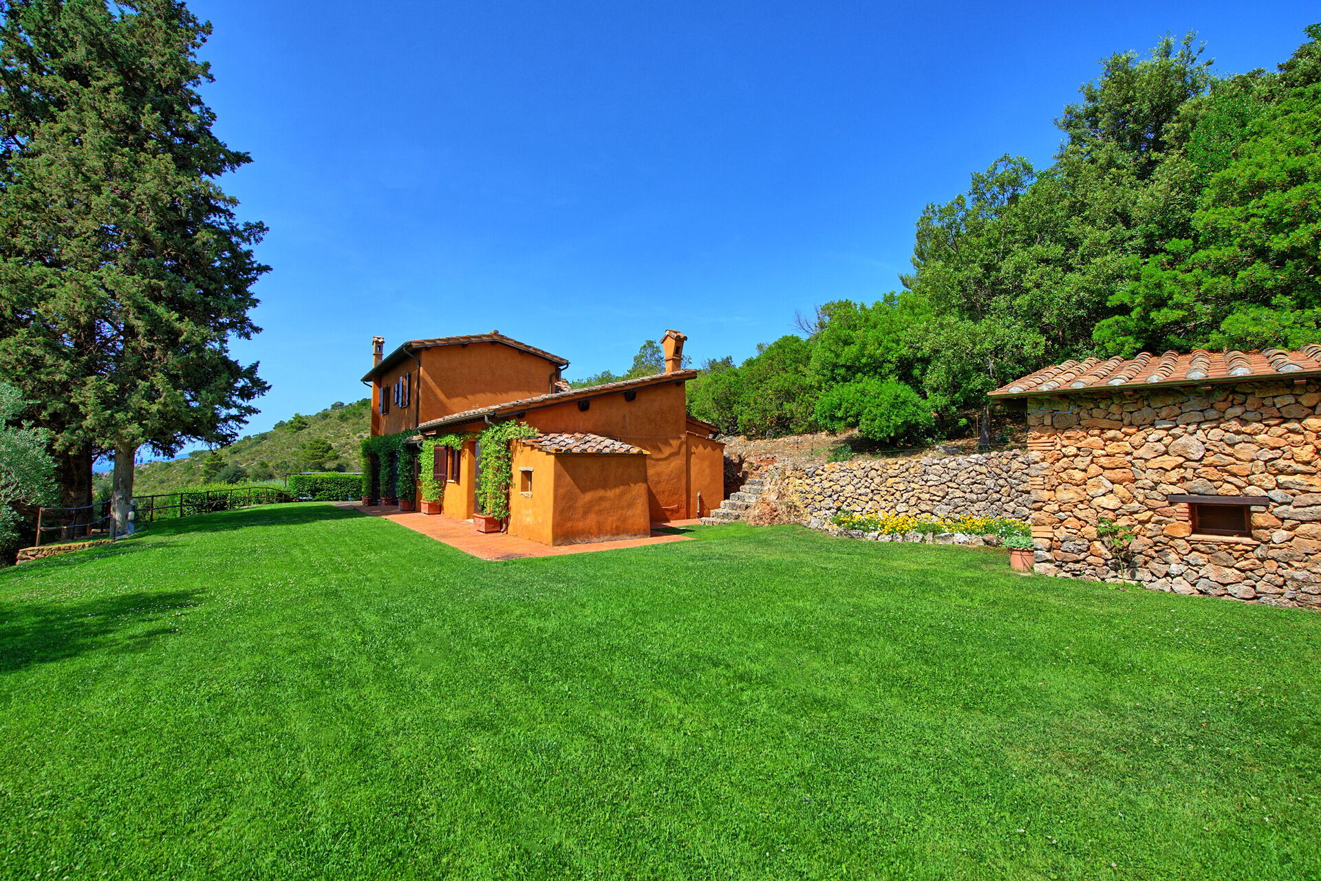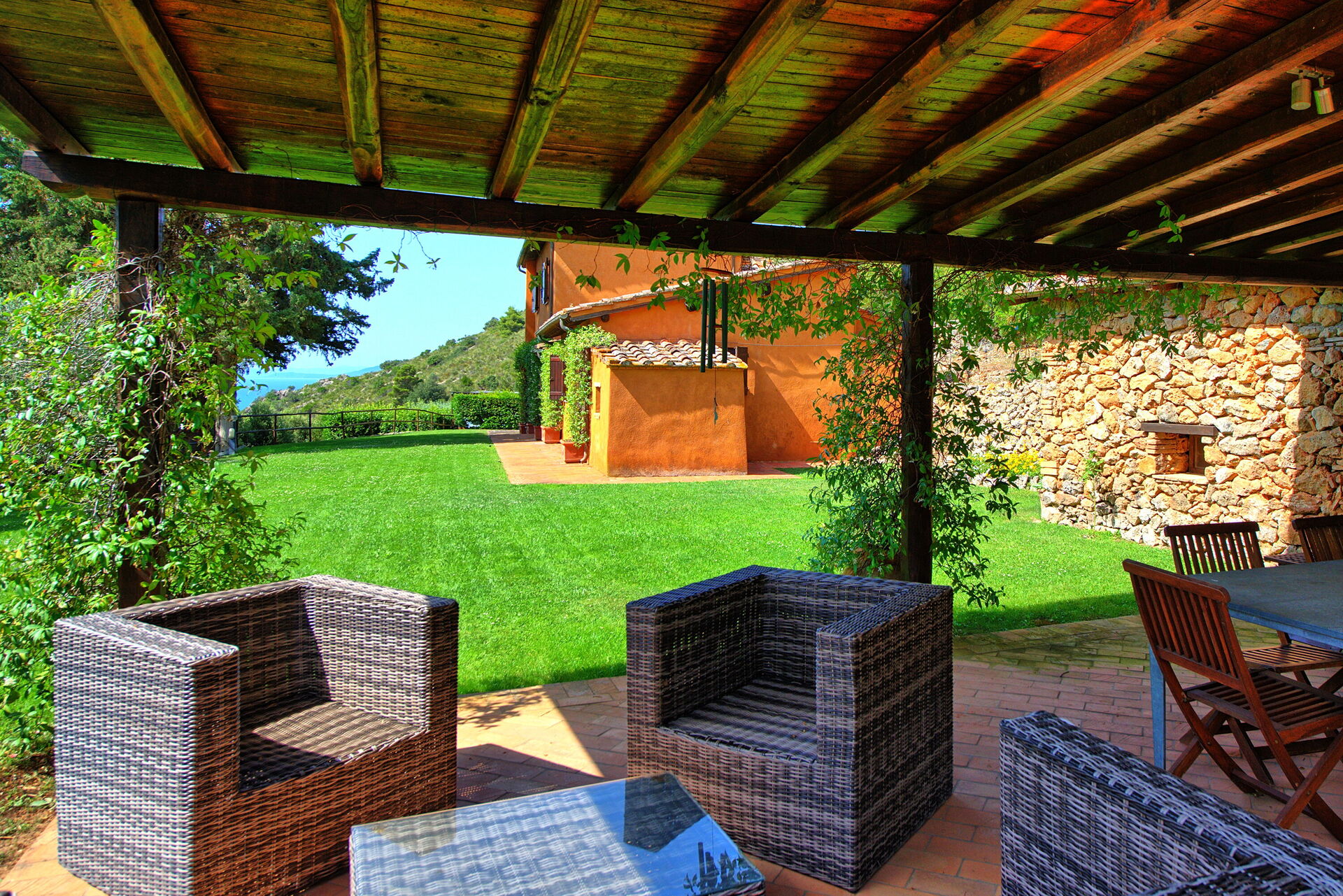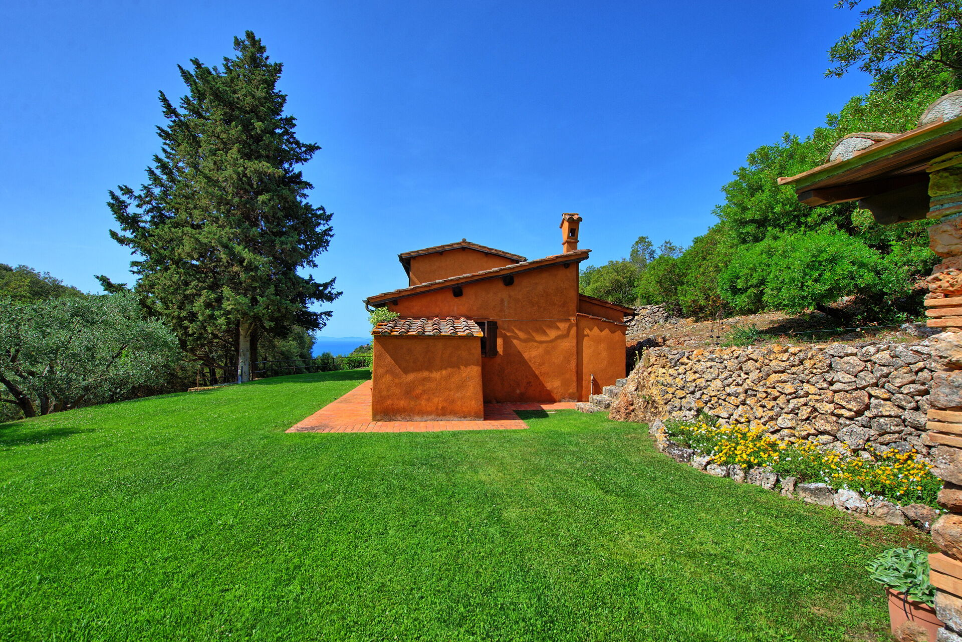 Casale Argentario har en fantastisk beliggenhed med panoramaudsigt over havet. Fra haven er der udsigt over havet og Porto Santo Stefanos gamle fæstning.