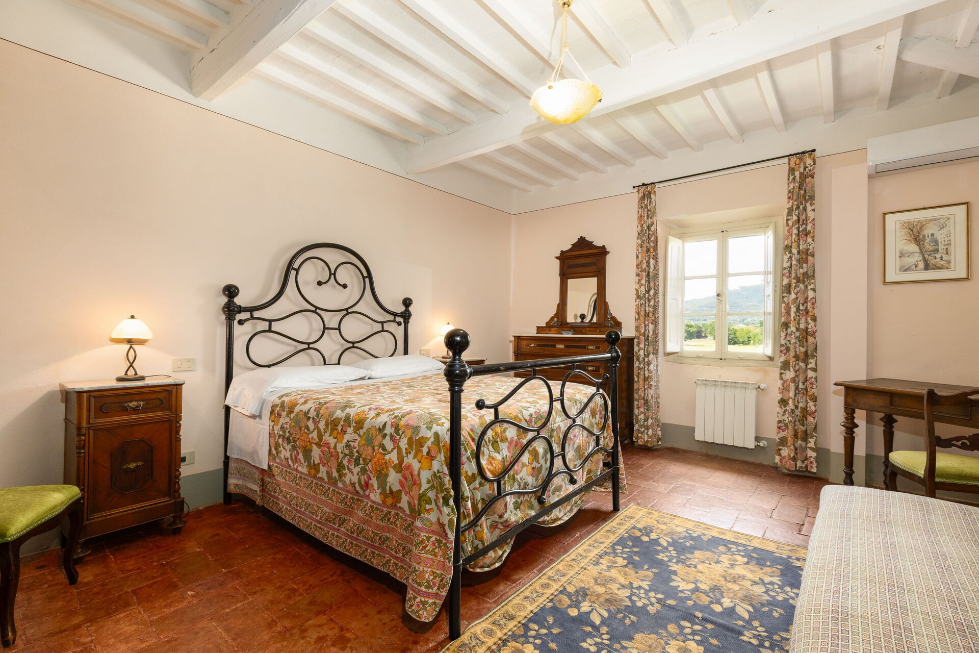 Great location, close to major tourist attractions, knownd and less known, yet all amazing (Cortona, Arezzo, Siena, the monastery of Camaldoli, just to name a few), in the middle of the Tuscan countryside. Property is surrounded by fields (with amazing sunflowers and vineyards !)and nested among trees, providing shelter from the sun. Rooms are very spacious, beautifully furnished with gorgeous antiques, carpets and paintings. Thick walls and wooden shutters provided naturally a cool temperature in the house (even in August we rarely used AC, which indeed is available and very efficient).Multiple separate kitchens available, each with cutlery, plates, pots and dishwasher. Gorgeous outside table for dining, large walking areas with olive trees and swing outside the house. Beautiful, large independent swimming pool, cleaned daily by management. A short drive away from supermarkets, pizzerias, restaurants and gelaterias. Truly a gem for whoever values the beauty and silence of the country side, and yet enjoys all that Tuscany is famous for (art, history, great food, medieval/former Etruscan hilltop towns like Cortona, breath taking panoramas you could see in a Renaissance painting). Ideal setting for a large gathering, where each group has its own space and yet can conveniently gather to enjoy spending time together. I would go back in a flash!