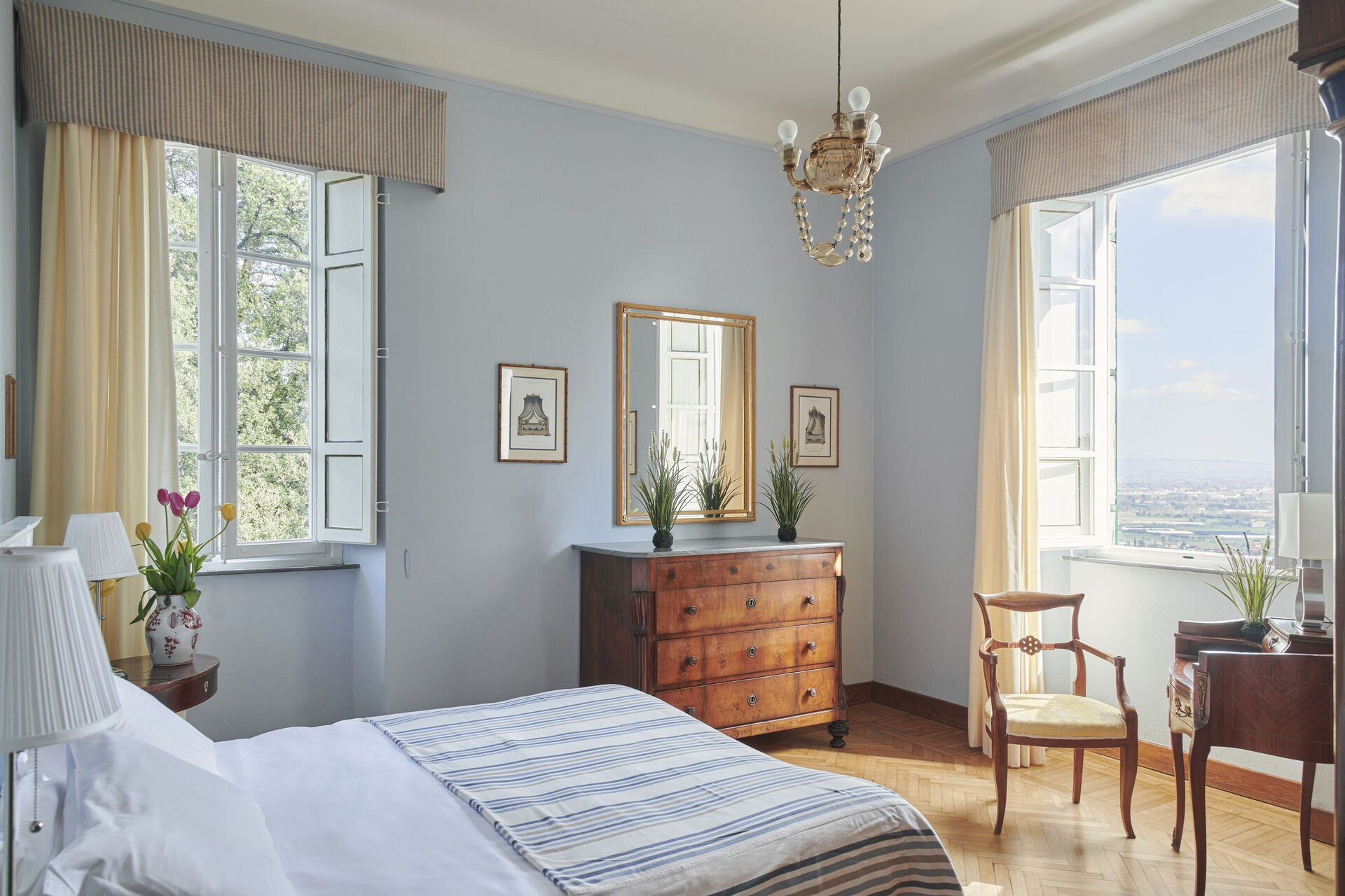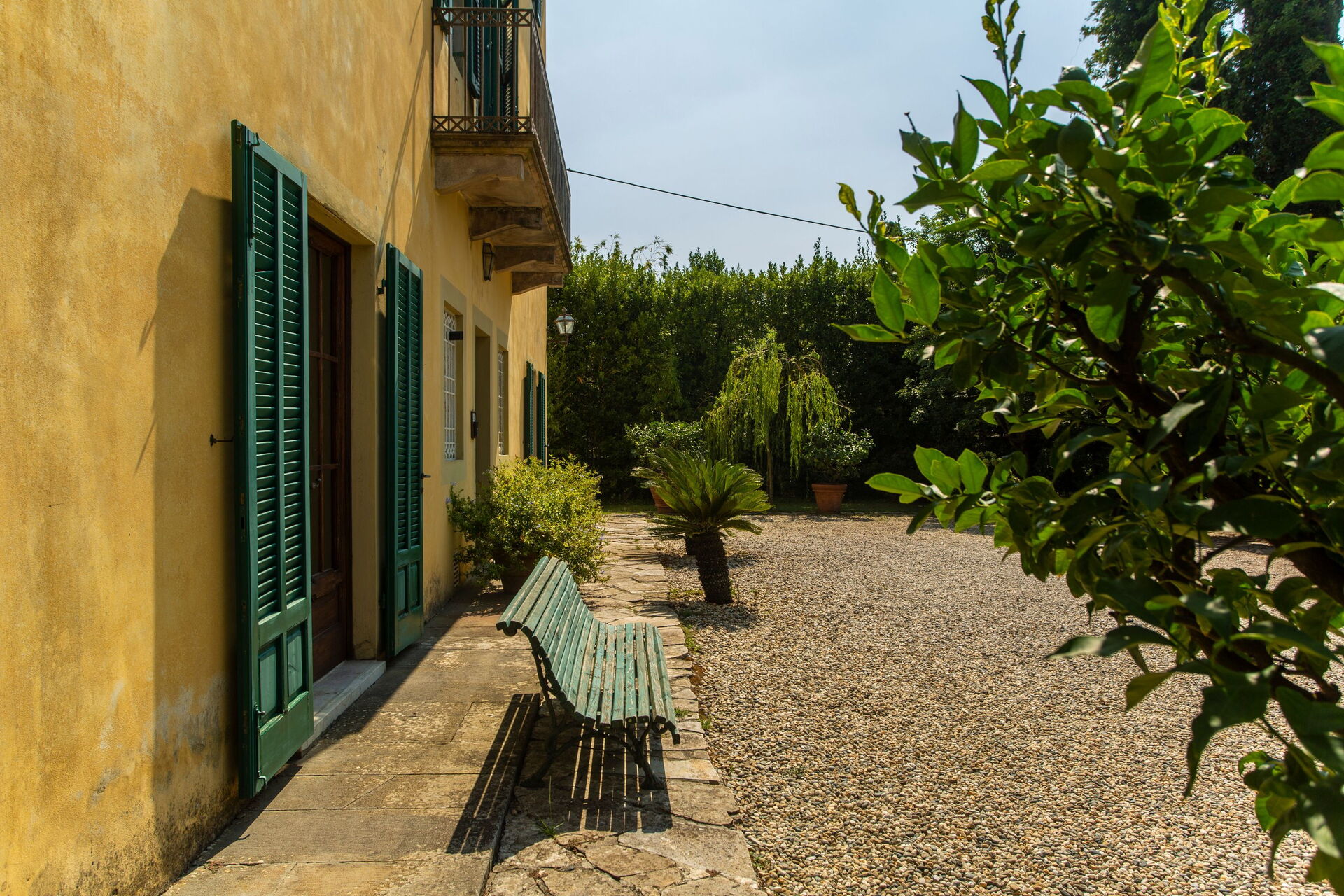 Palæet ligger på landet omkring Lucca, på en smuk bjergskråning domineret af gamle vinmarker og olivenlunde.