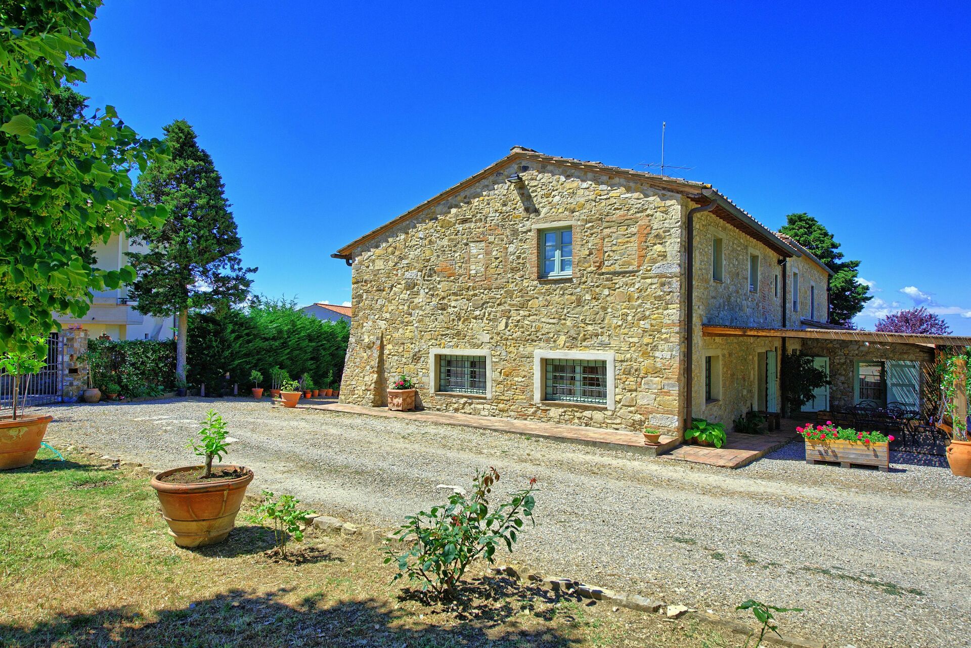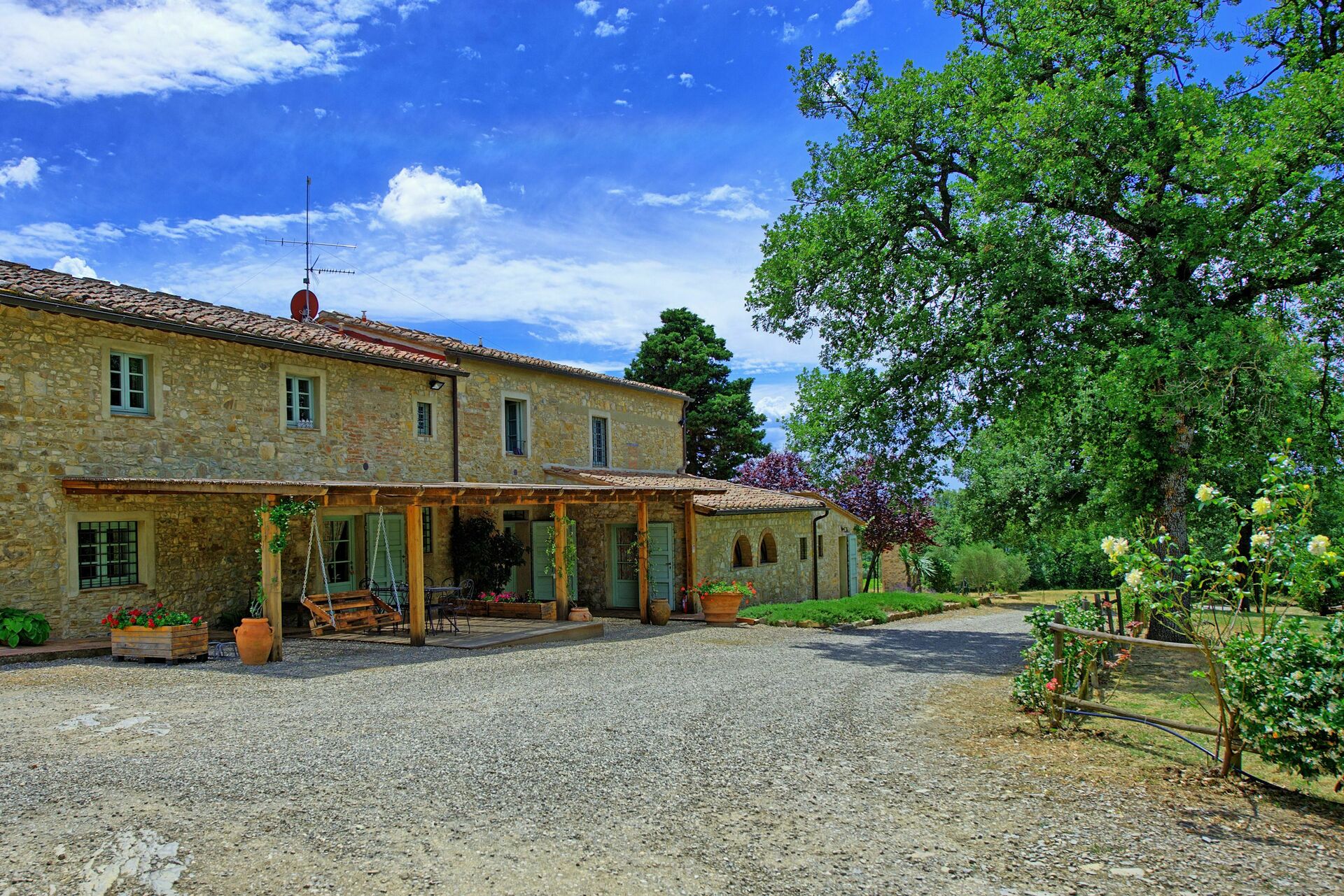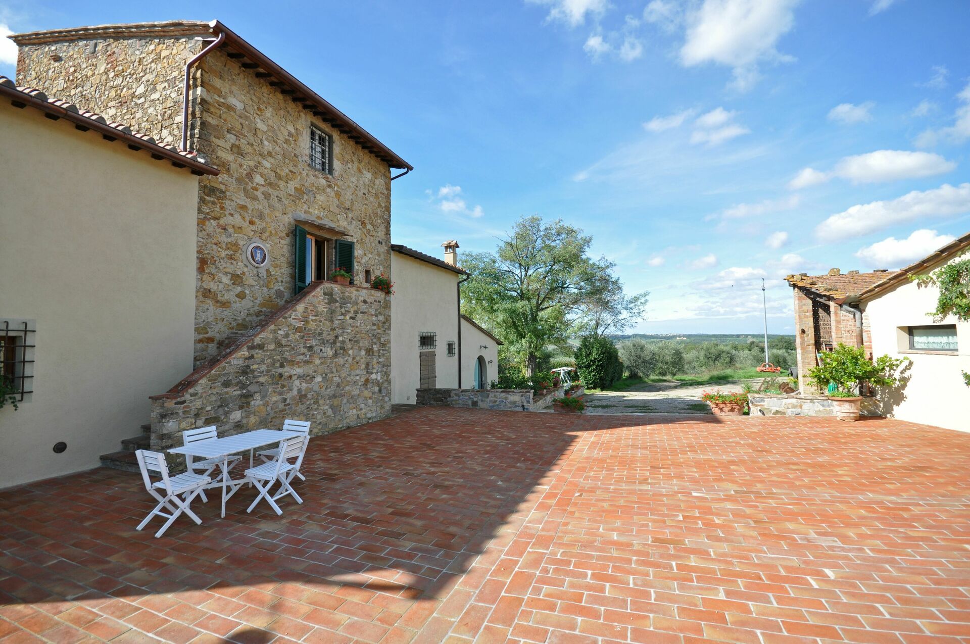 Ejendommen består af 2 komfortable lejligheder, der er nyrestaureret og smagfuldt indrettede. Smukke vinmarker og olivenlunde omgiver ejendommen og producerer fremragende Chianti Classico-vin og olivenolie (mulighed for at smage og købe). Lejlighederne ligger mellem grønne bakker i gåafstand fra den lille by San Donato, der byder på gode restauranter, pizzeriaer og forskellige butikker.