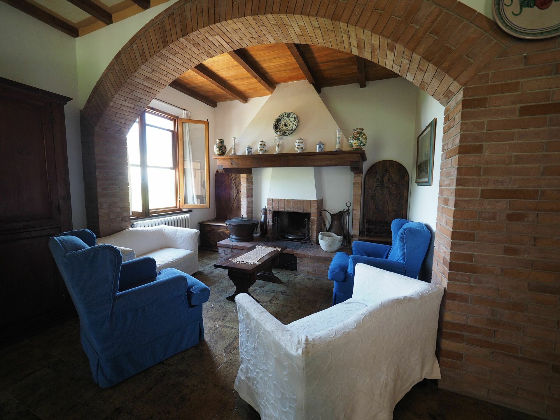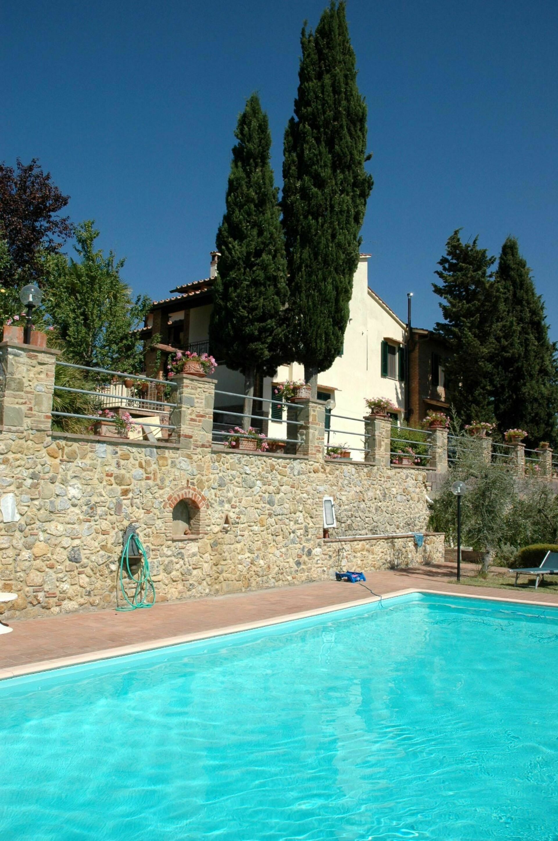 Casa Spina har en fantastisk pool og en stor have med grillplads. Indendørs er en smuk pejs der gør atmosfæren varm i de koldere perioder af året. Ejendommen består af 3 komfortable lejligheder (en lejlighedsvis brugt af ejere af ejendommen) med smuk udsigt over det omkringliggende landskab. Alle lejligheder er indrettet i toscansk rustik stil.