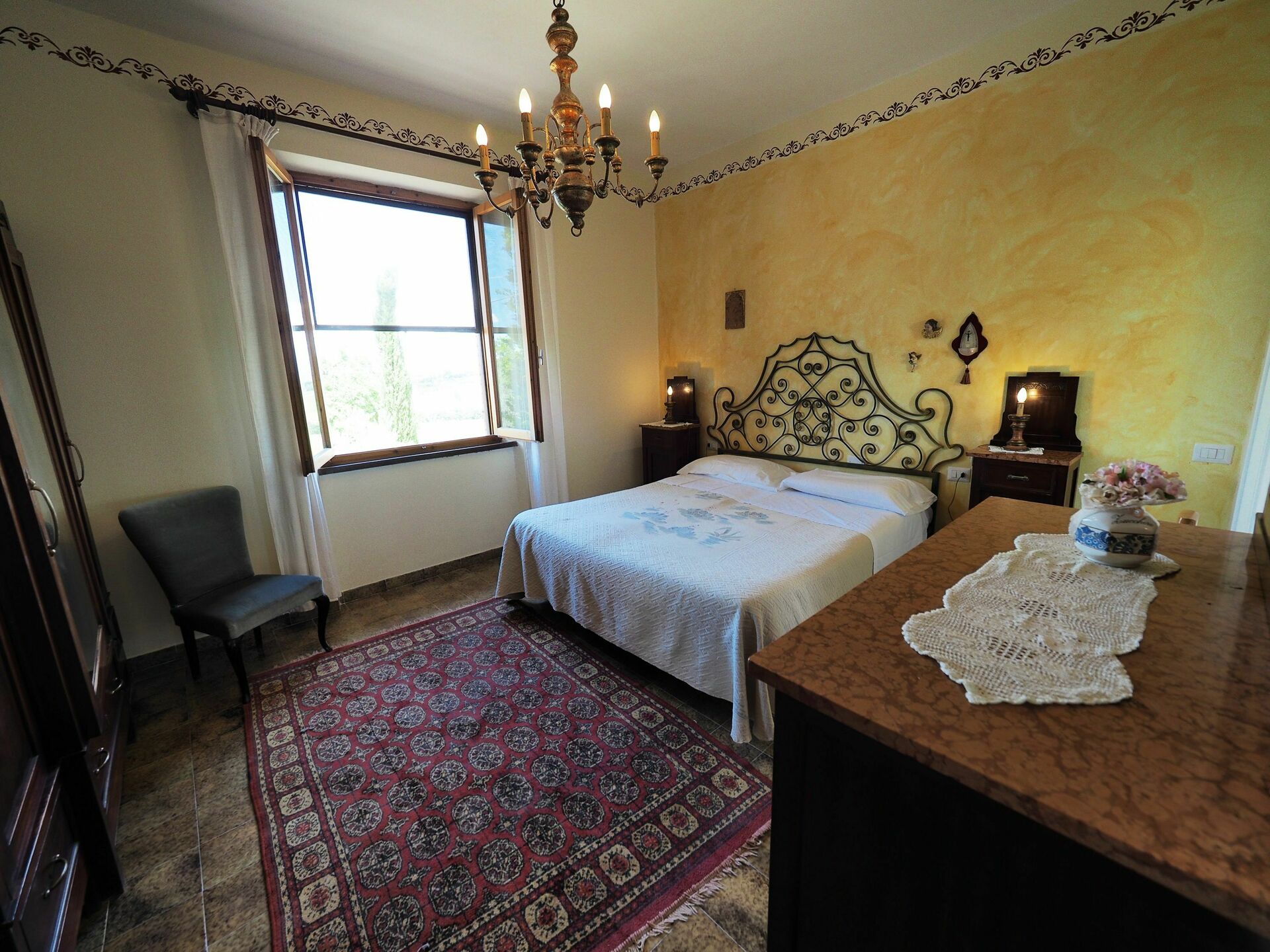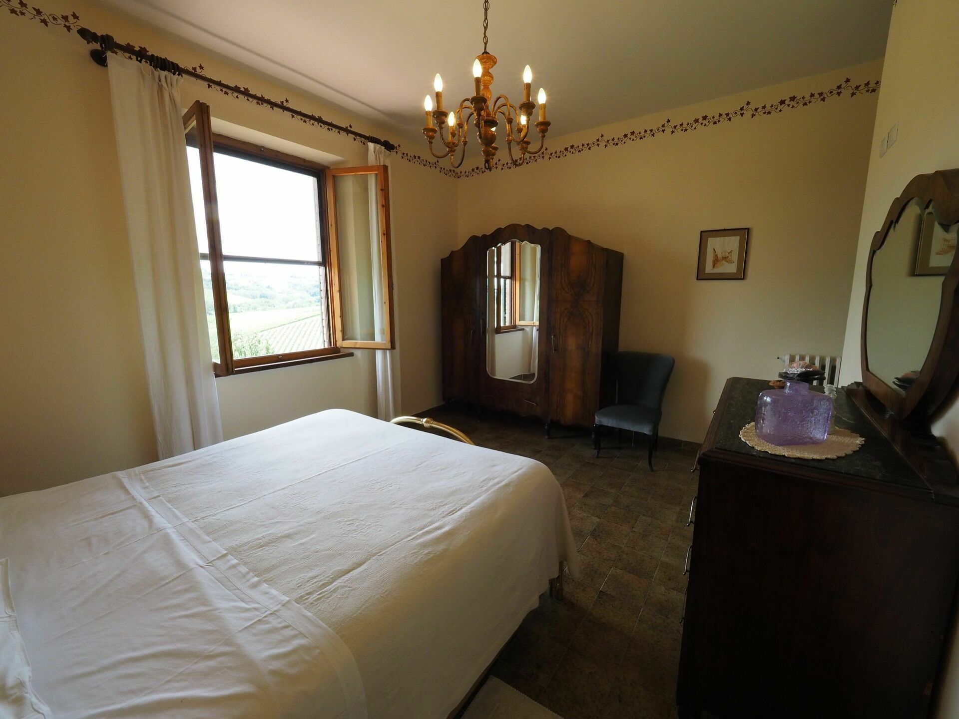 Lejligheden ligger i det smukke Toscana med panoramaudsigt over det charmerende landskab omkring San Gimignano. Her kan du nyde natur, historie og madtraditioner, der er typisk for Chianti.