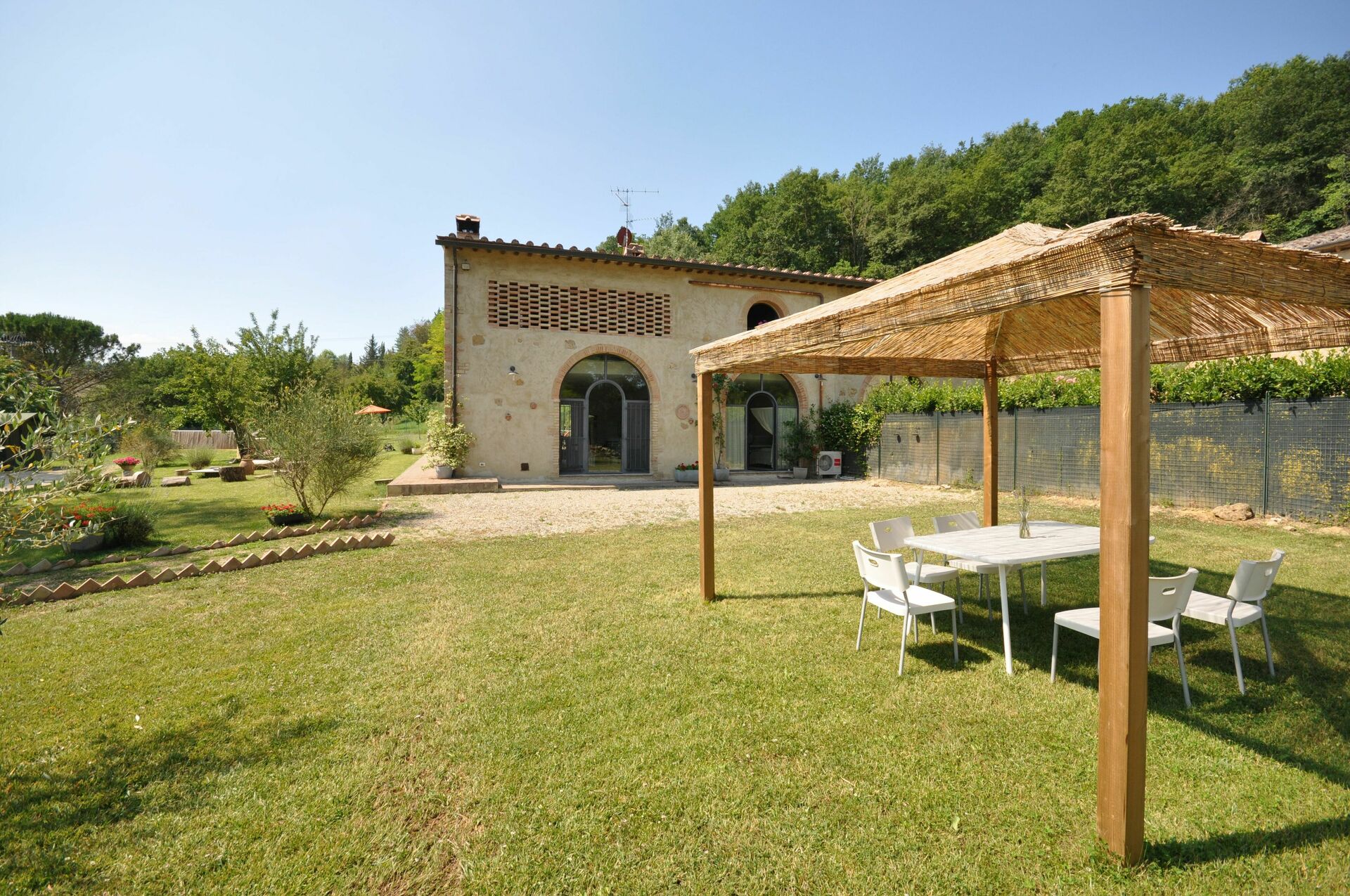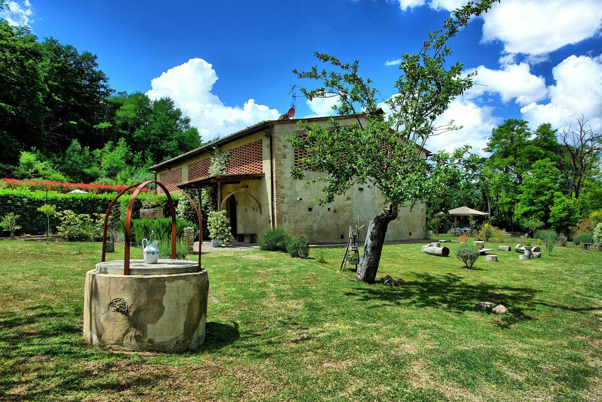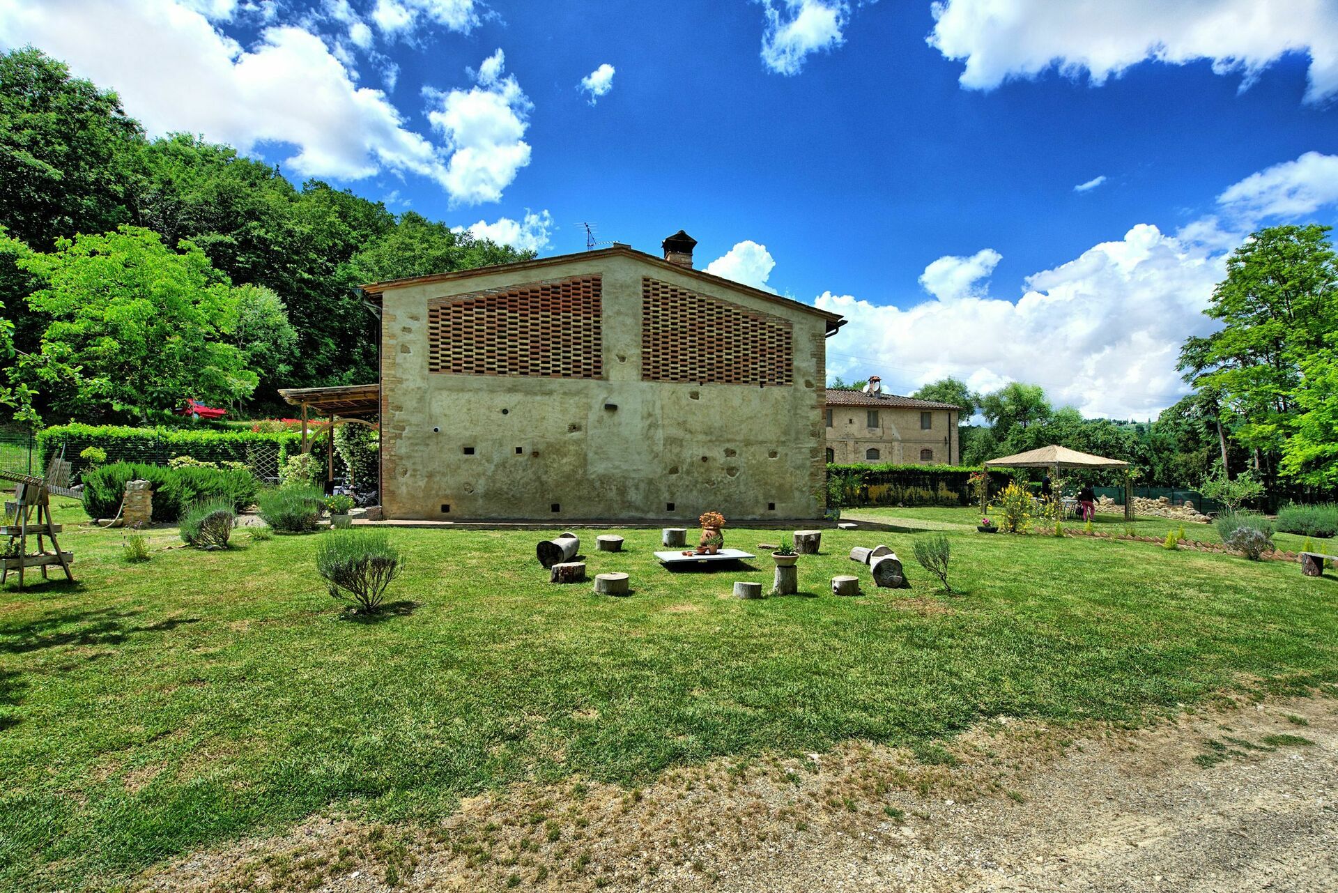 Feriehuset ligger dybt blandt grønne bakker og en kort afstand fra den smukke middelalderby San Gimignano (4 km væk), som er berømt for sine mange tårne. Fra huset kan du nemt nå de mest berømte byer i Toscana som Firenze, Siena, Volterra. Vinregionen Chianti Classico er også let at nå med bil.