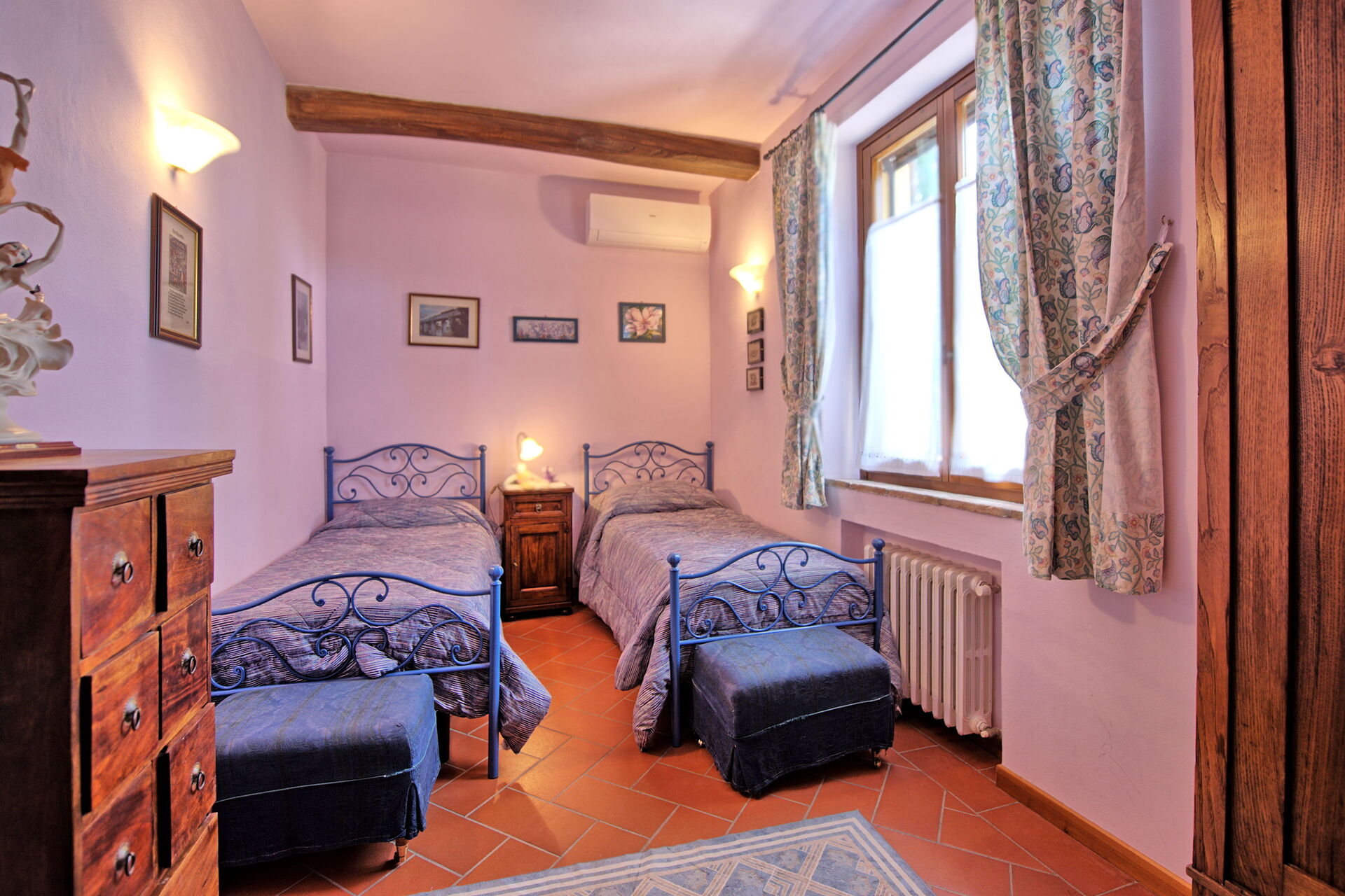 Første sal:soveværelse med dobbeltseng med himmelseng, dobbeltværelse (konvertible til dobbeltseng), badeværelse med bruser.