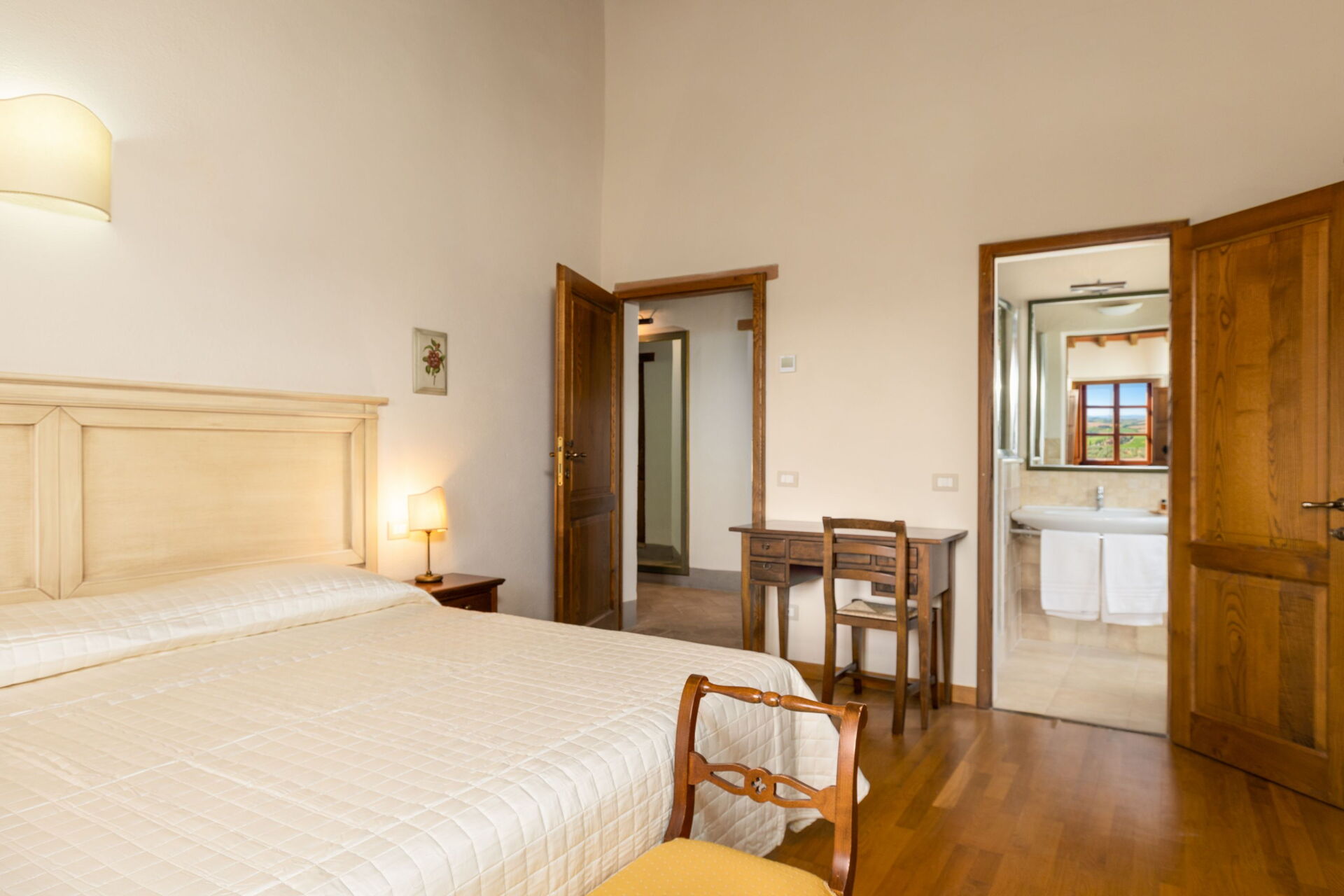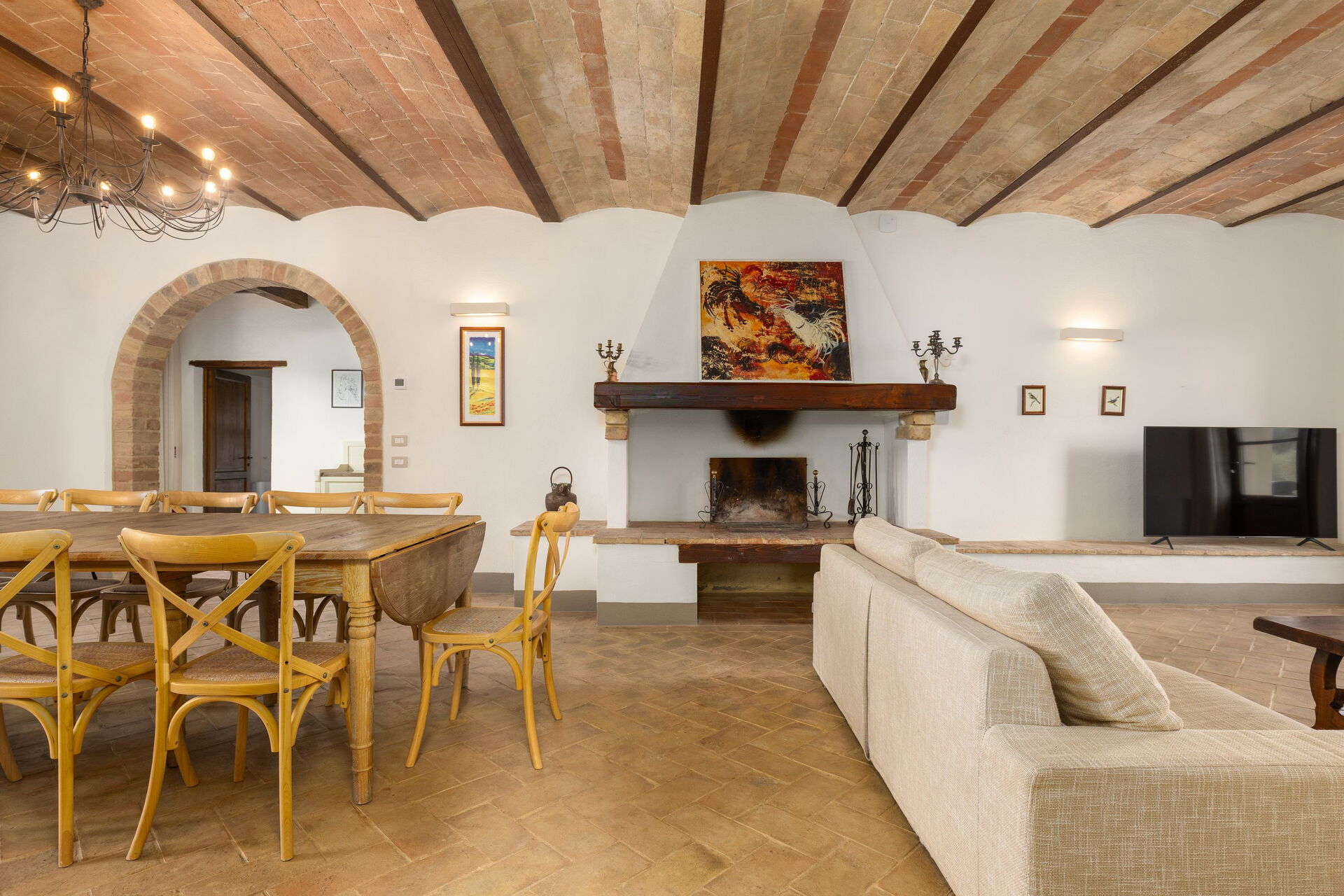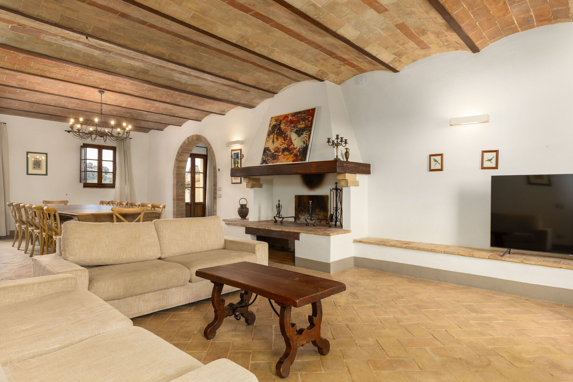 Sommerhuset ligger ved den charmerende middelalderby San Gimignano, med panoramaudsigt til det omkringliggende landskabet der er rig på olivenlunde og vinmarker.Villaen er blevet fuldstændig restaureret og har bevared sine oprindelige arkitektoniske træk, men fornyet med moderne bekvemmeligheder.