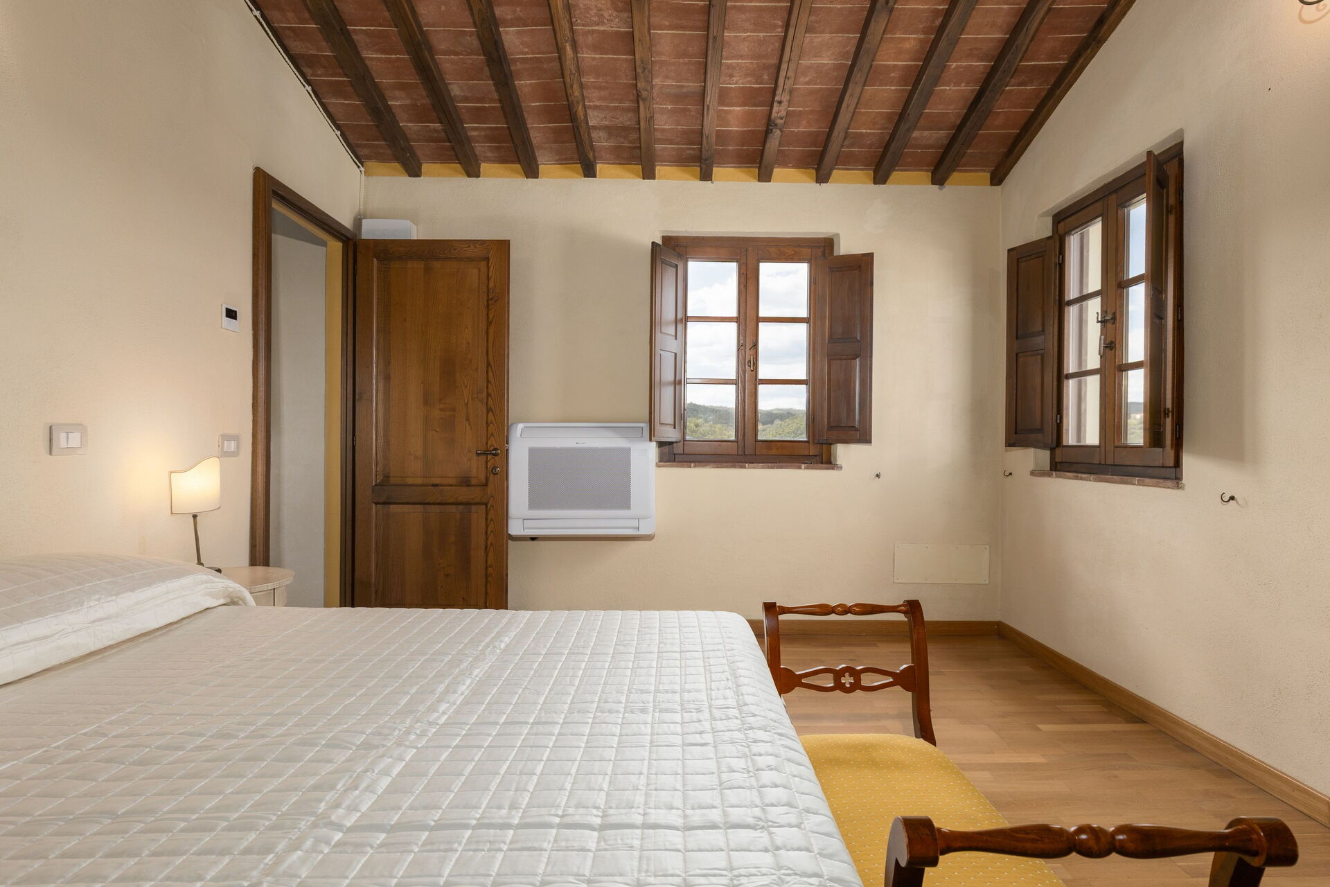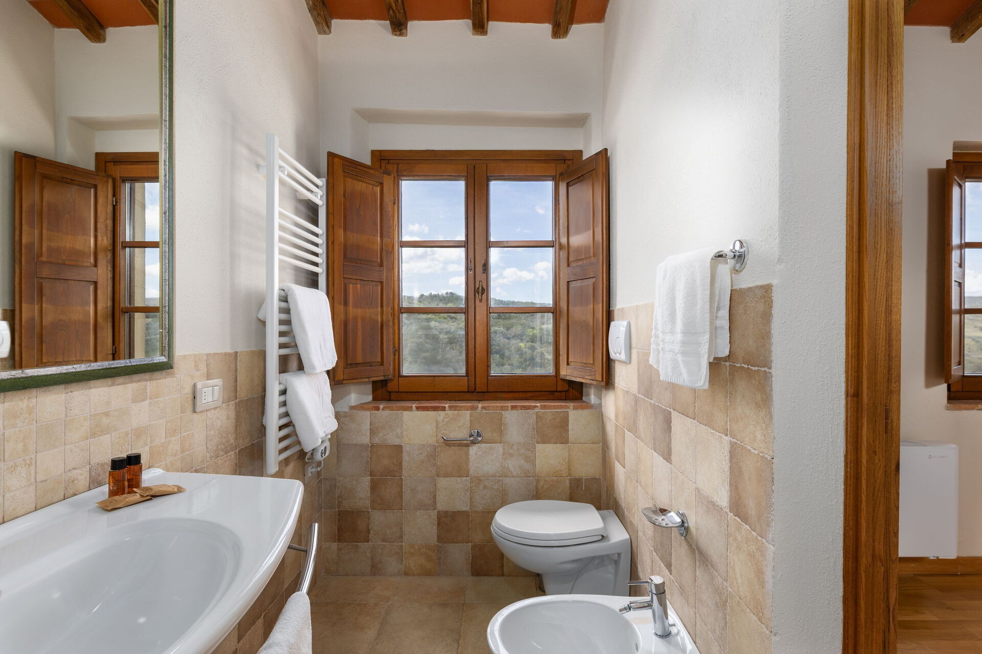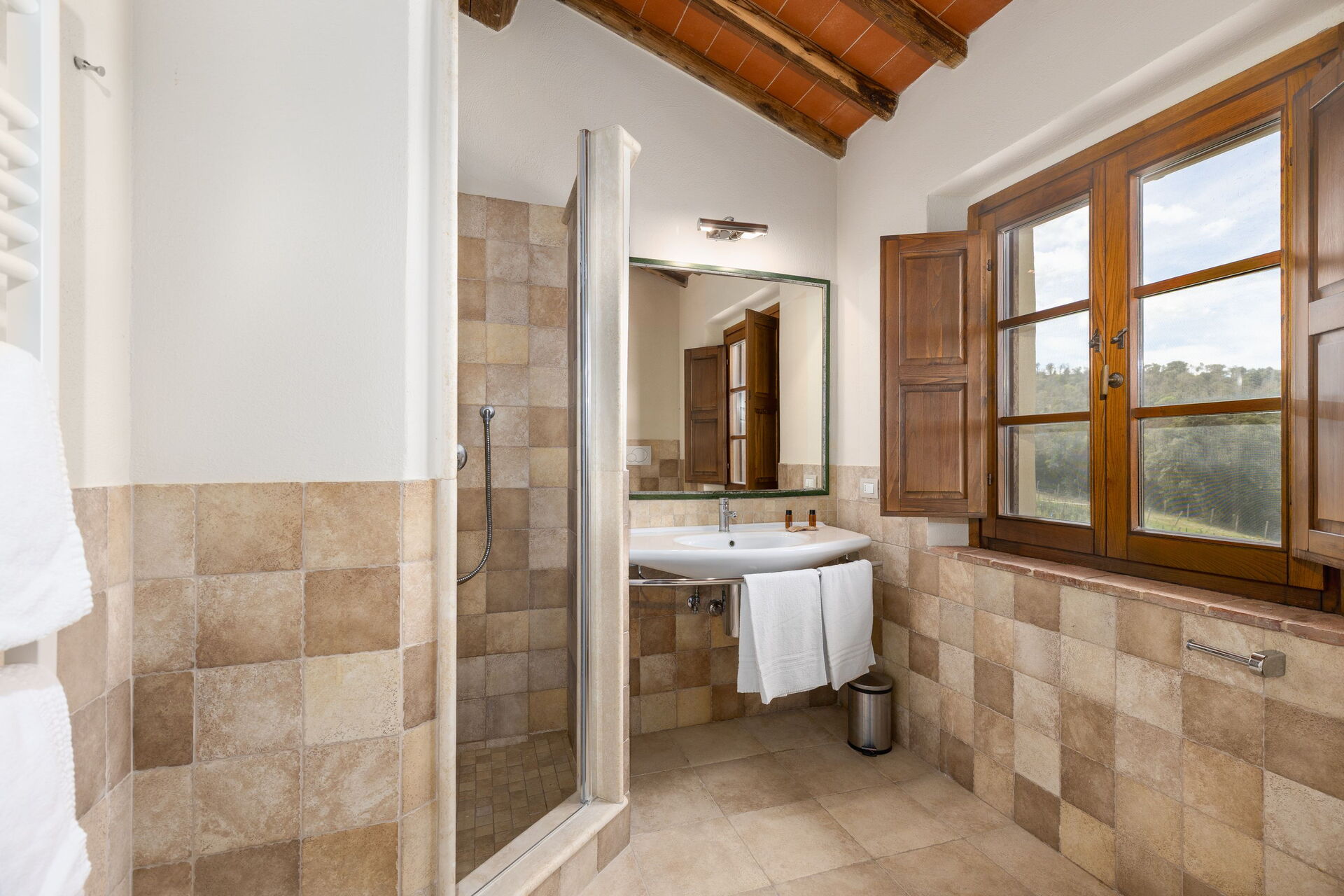 Pool is great. Rooms comfortable and each has an en suite. No fight over showers! Great spaces, nice to have a BBQ Rosemary and bay leaves at your doorstep to add to your recipes. Beautiful view from outdoor dining area. Well worth the walk up the road to watch sunset over the hills. Property in need of some minor care, a bedroom door doesn t close easily, noisy clicking AC in a few rooms, road could use a little grooming. We also recommend cutting hedges to enjoy beautiful view from outdoor dining area. Very accomodating owner, arrived as promised to open gate and show us around. We had to check out early and she was friendly and return to our call promptly to verify our stay had been satisfactory. loved walking up the road to enjoy view of vineyards such a pleaseure discover San Gimignsno wish we would have had time for a wine tasting up The road.