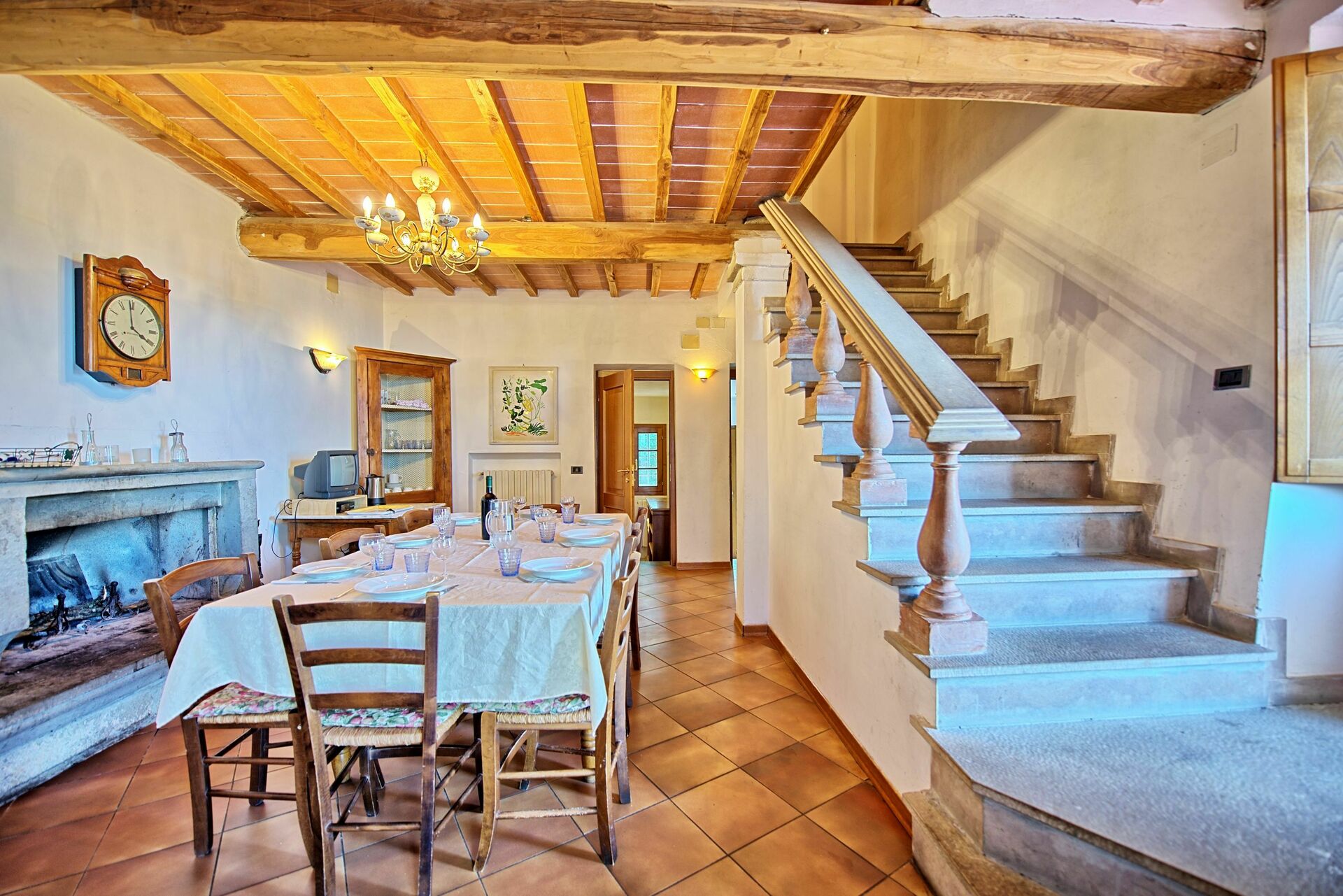 Lejligheden Fienile består af stue med pejs, tekøkken (komplet med ovn og opvaskemaskine), 4 dobbeltværelser og 2 badeværelser med bruser. Træ-bjælkelofter og møbler i antik stil pryder denne lejlighed.