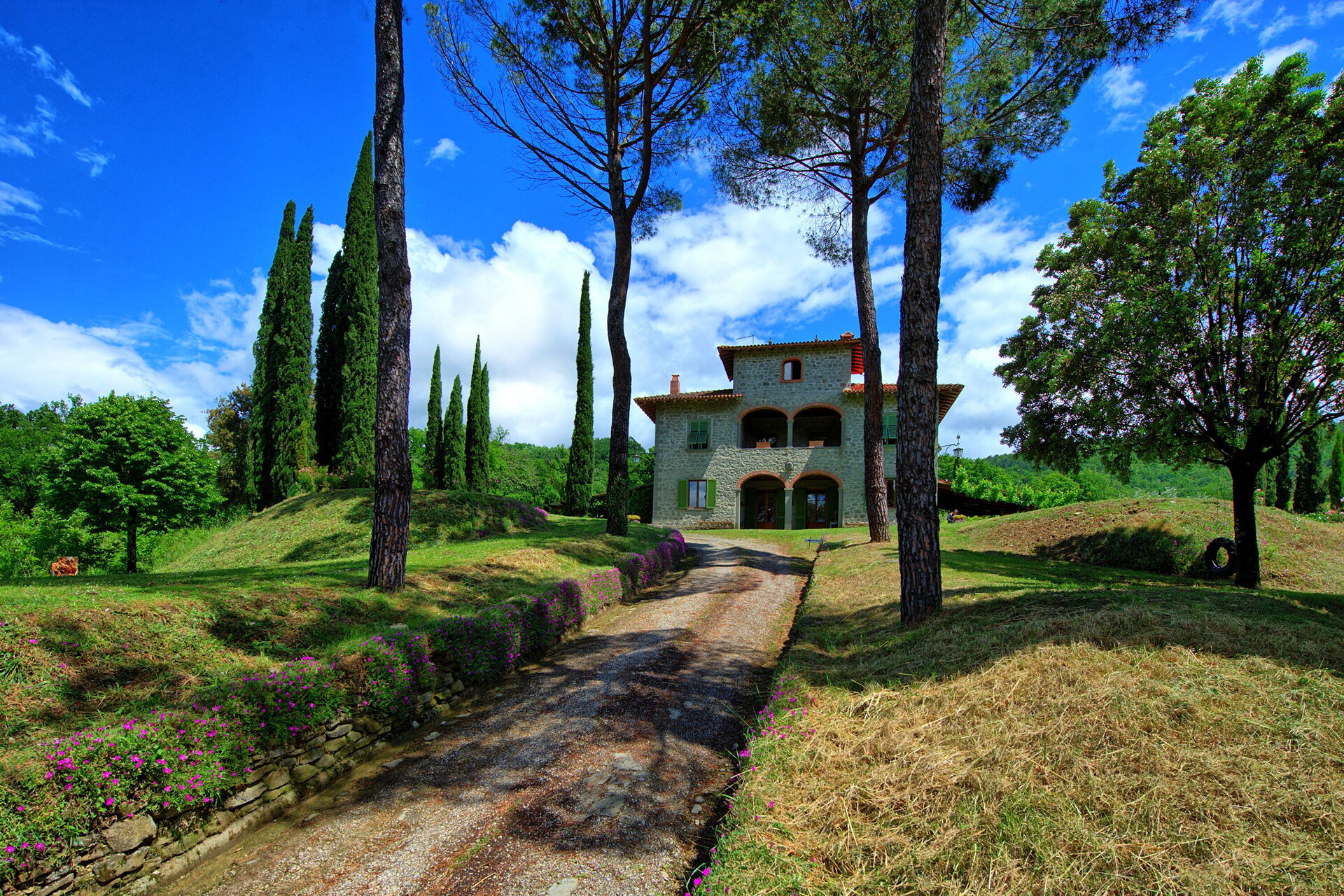 Afstande: Arezzo 10 km. Derfra kan du tage toget til Rom og Firenze; Cortona 40 km væk; Trasimeno søen er 45 km; Siena 80km; Perugia 90 km