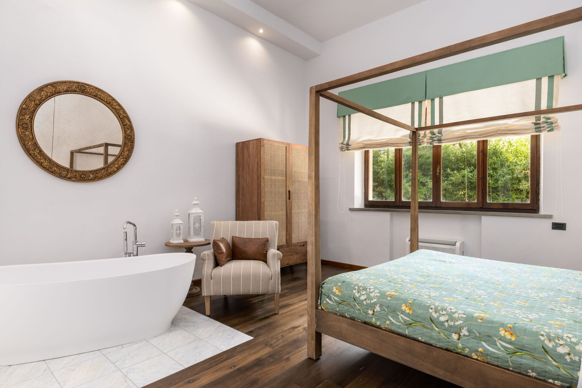 Feriehuset er smukt renoveret og omdannet til en moderne landejendom udstyret med alle moderne bekvemmeligheder, samtidig med at de oprindelige arkitektoniske træk er bevaret. Huset har en elegant indretning og er smagfuldt møbleret.