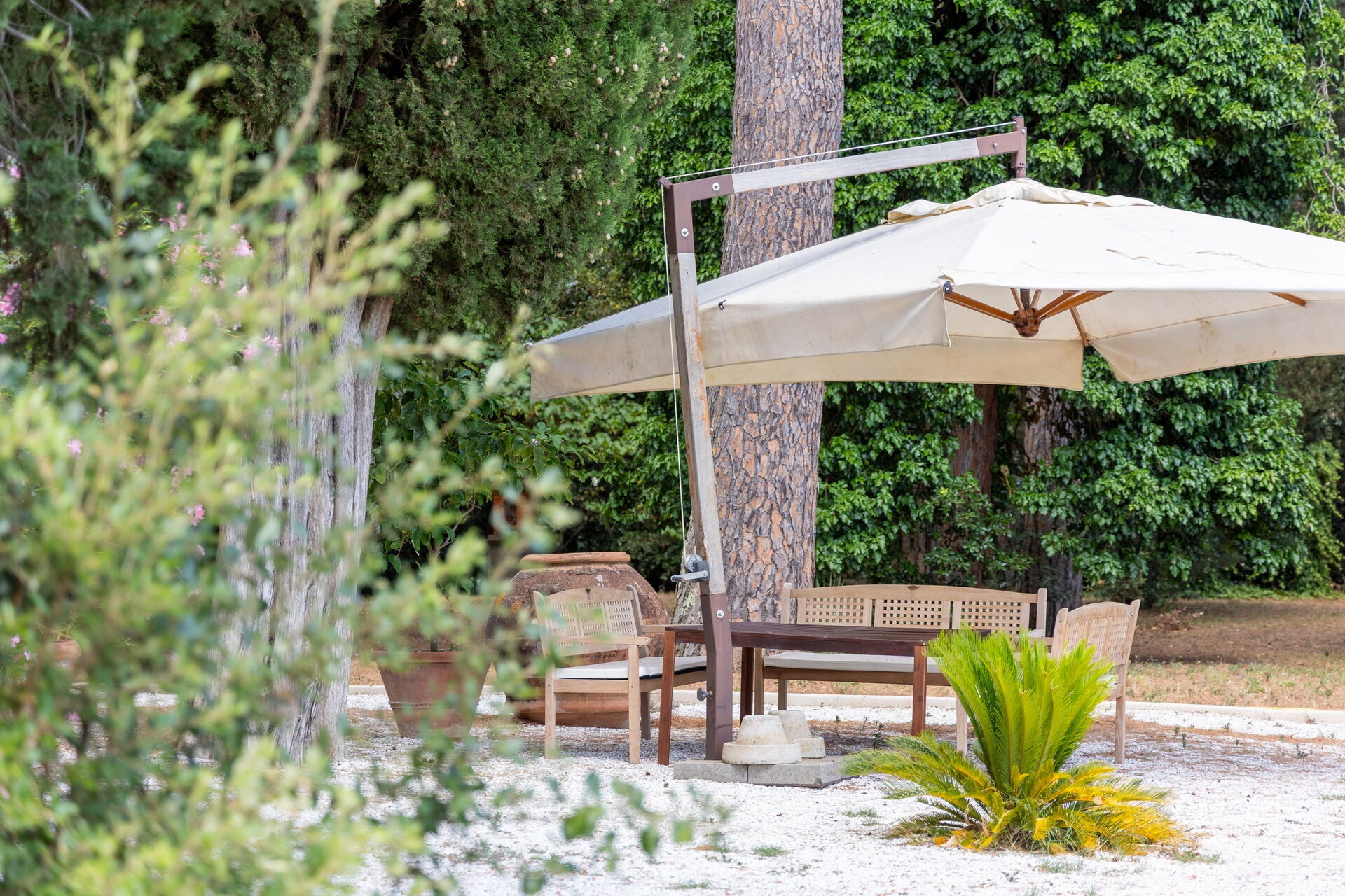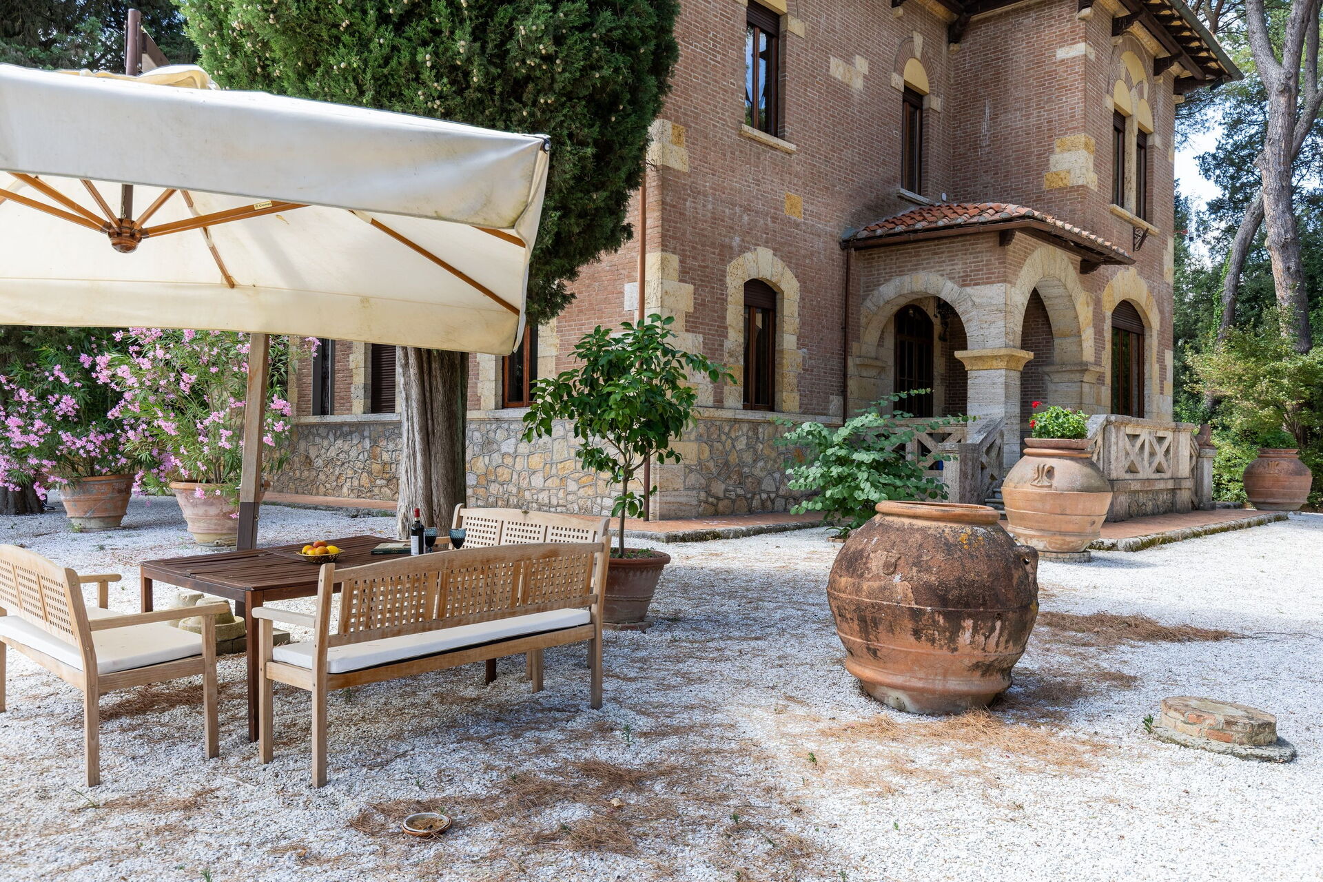 Huset har en velplejet have og er omgivet af træer. Her kan du nyde panoramaudsigt over de omkringliggende bakker og byen Peccioli, som blev kåret til “Italiens by” i 2024.