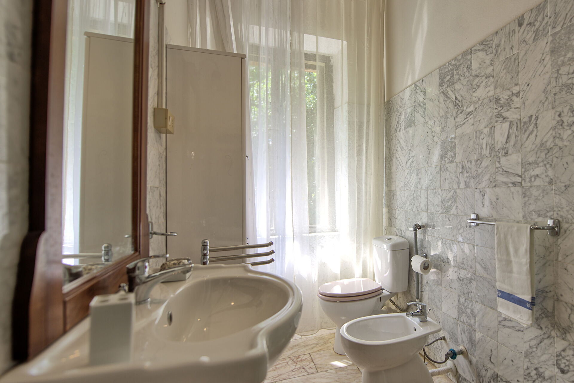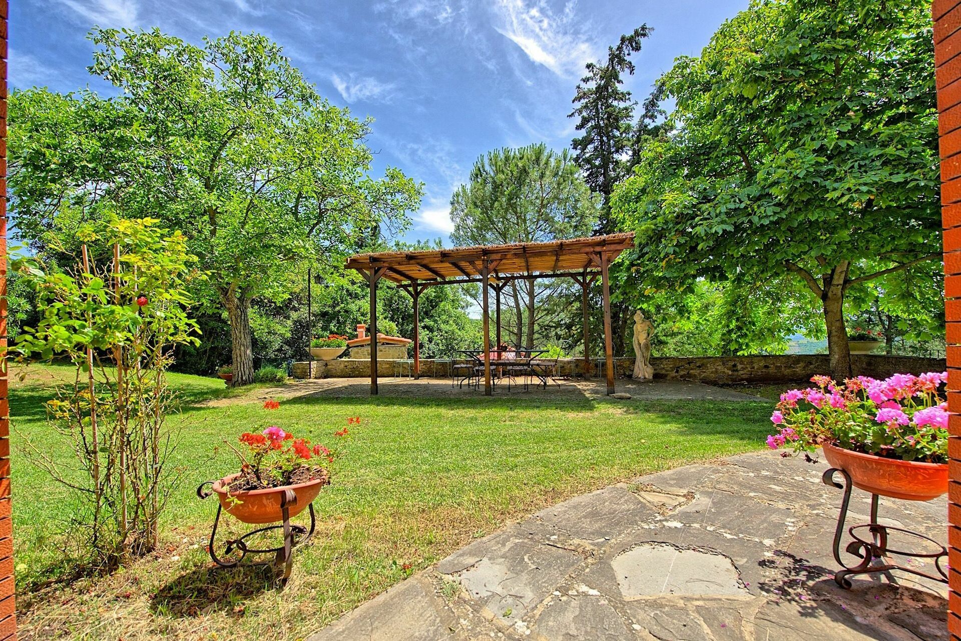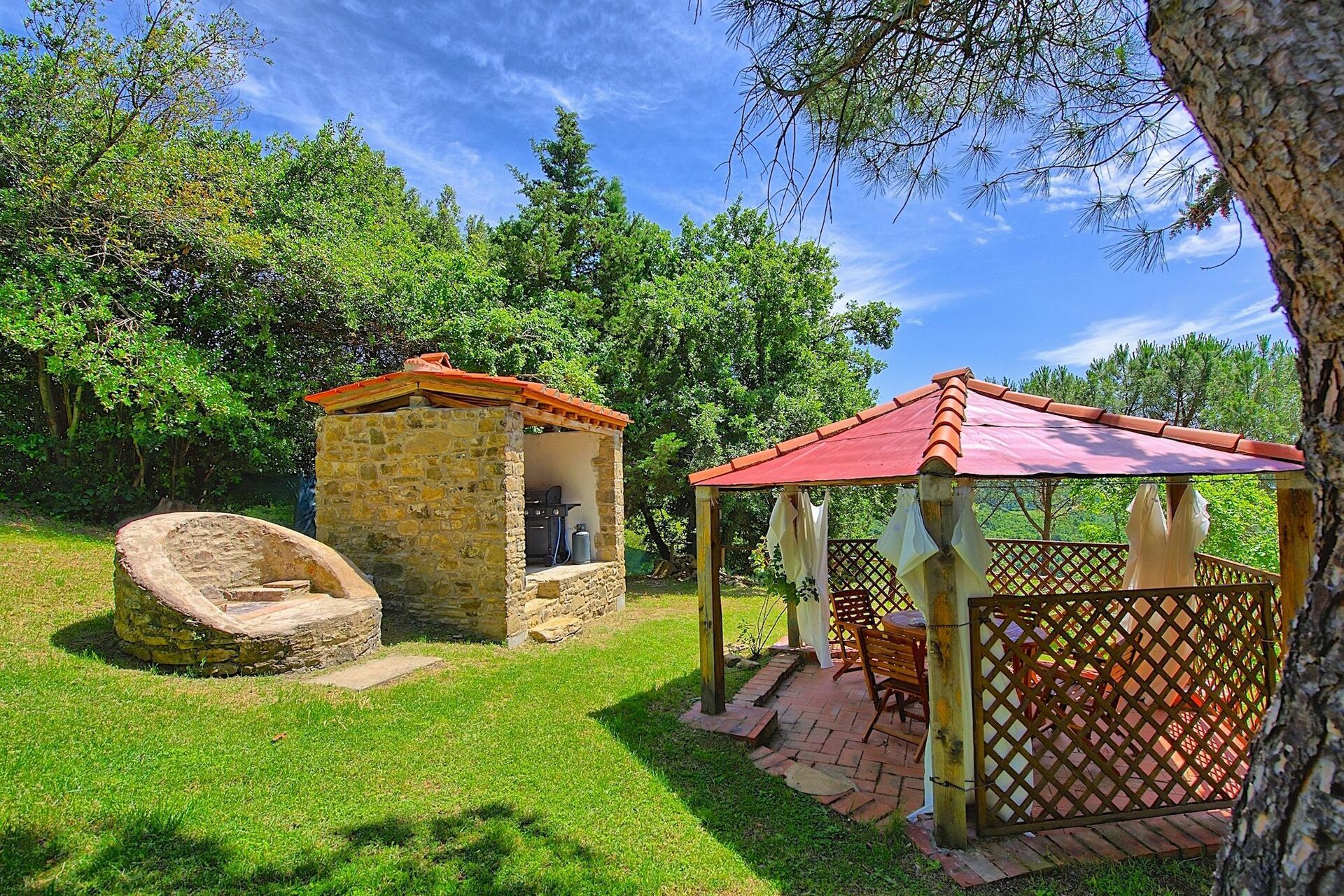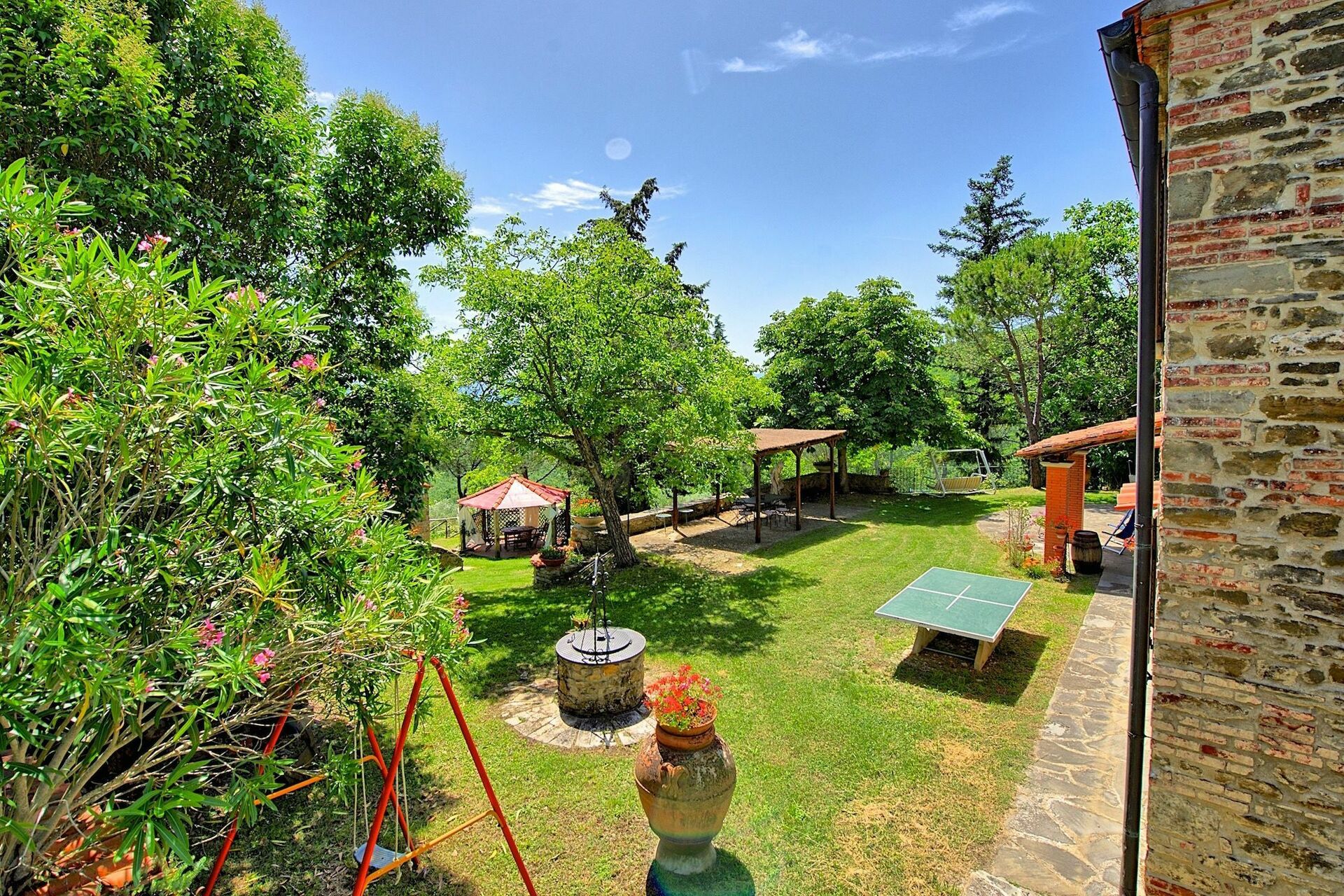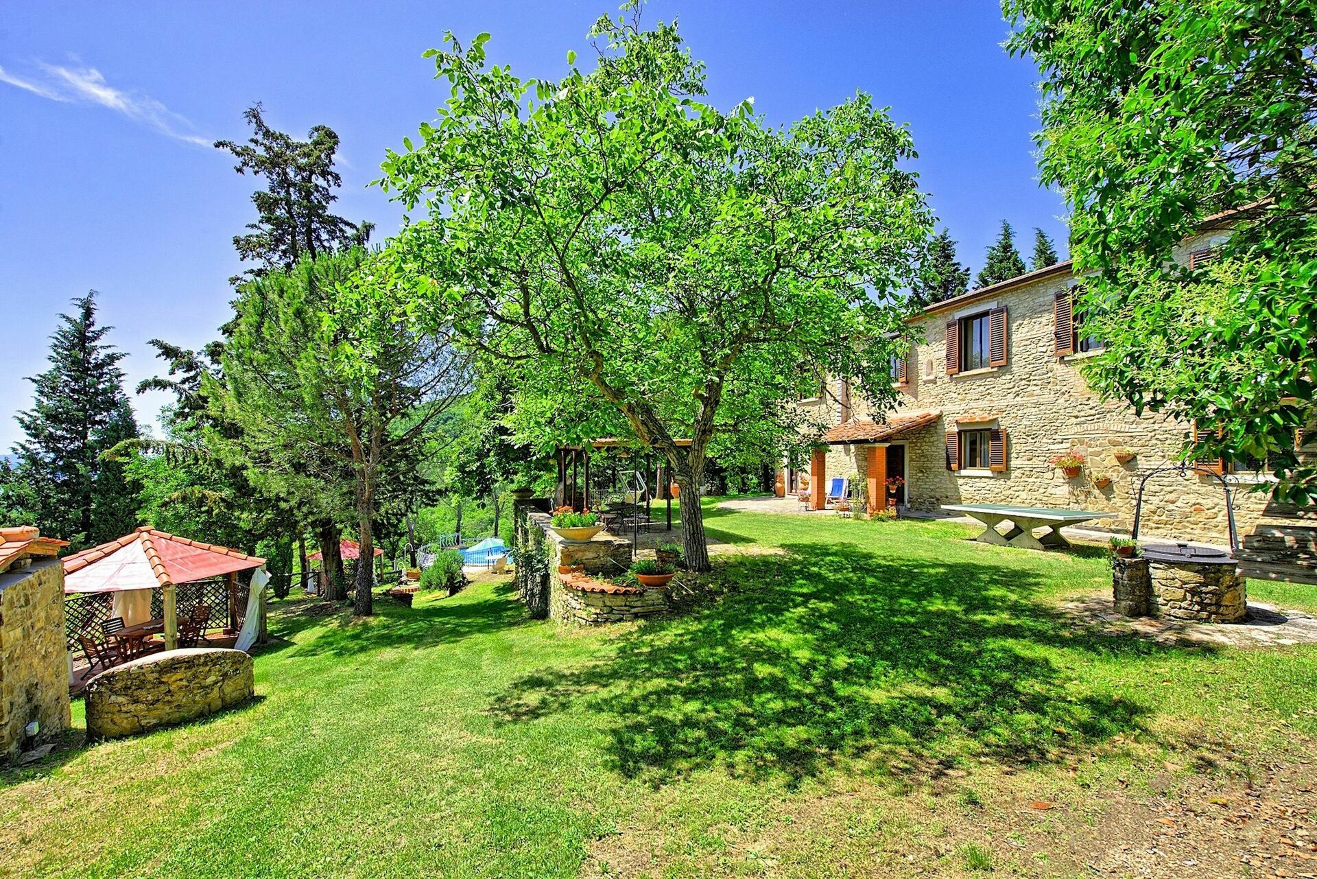 Villa Luciano is located on the top of the hills outside Arezzo with an stunning view. The one-way up is a little bit steep with a lot of curves, but exciting. The house is charming but also very old and looks inside as a museum. But the bedrooms with airco are ok. Outside with the different levels in the garden it is really great to chill out out at the pool or somewhere under a pergola. Absolute privacy. It was a pity that we had 3 evenings in a row NO water because of a shutdown of the electricity. It has to do with bathroom (bagno 2) after taking a shower. After a couple of hours then you can switch finally the button 'up' again from the electricity board. The very friendly owner came the third evening and problems was solved. The BBQ (gas) was really great and easy to use and we used it almost every evening ! The wifi was working well, but only in the sitting room because of the thick walls.