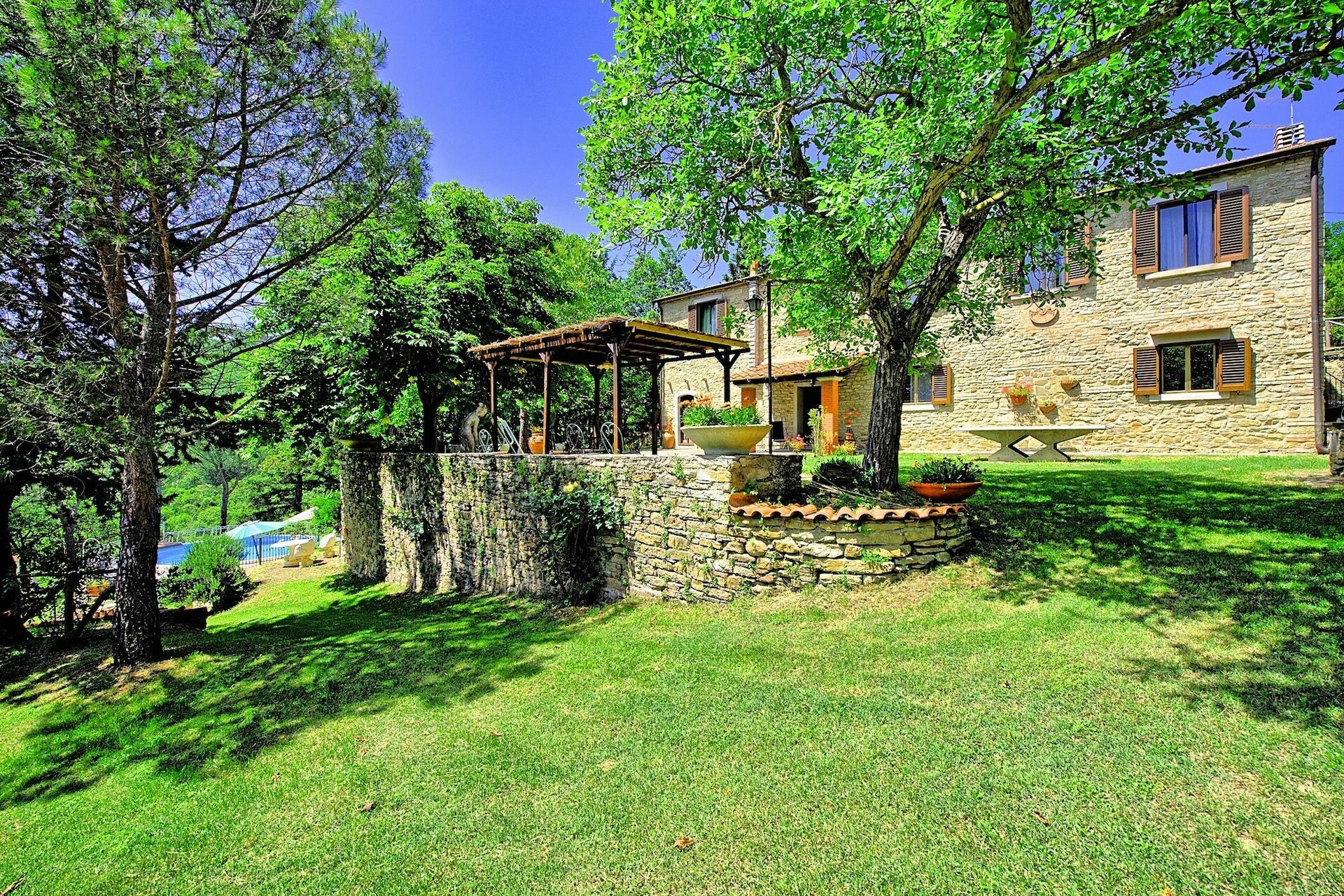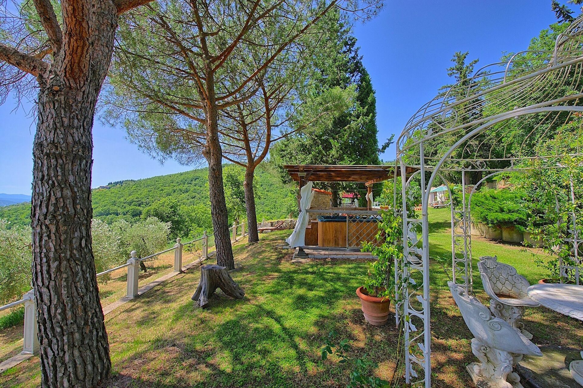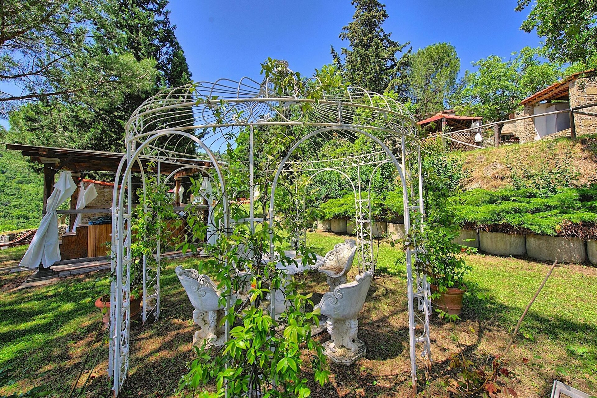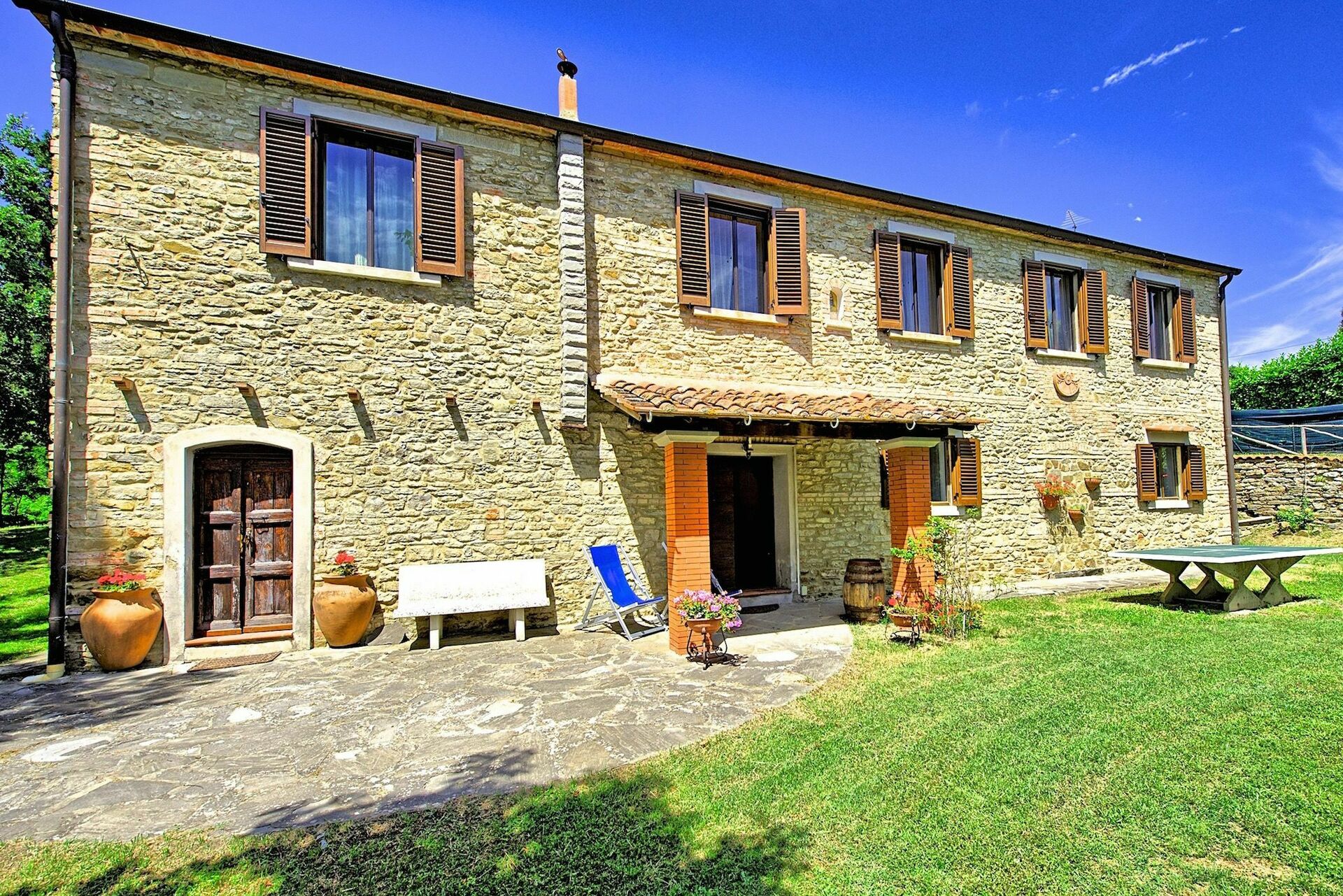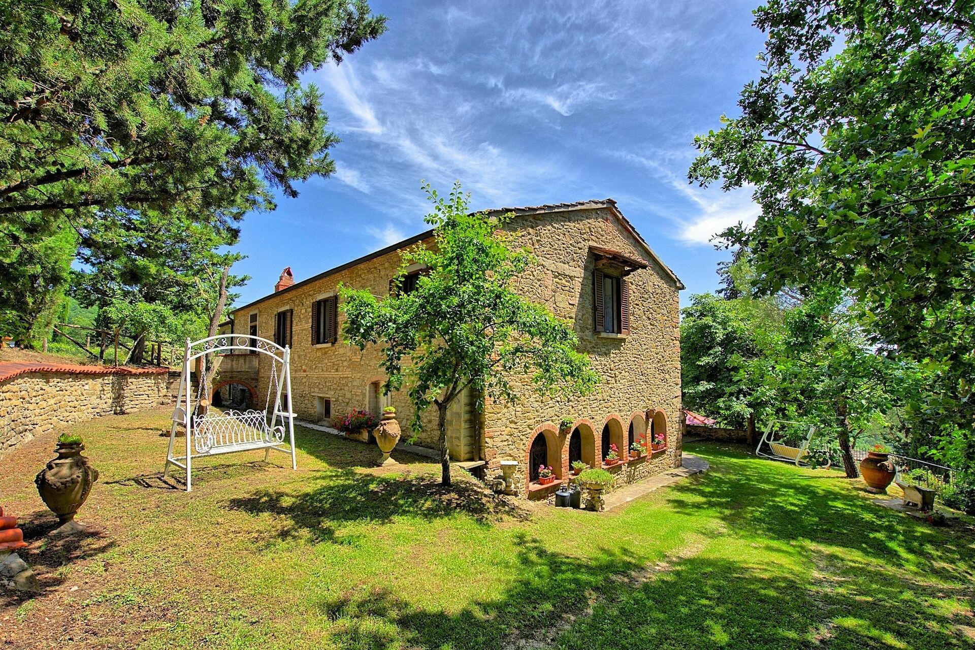 Smuk privat sommerhus med swimmingpool og udendørs boblebad nær Arezzo i Toscana. Arezzo ligger kun 10 kn fra ejendommen. Omkring huset er der Fra villaen har man panoramaudsigt over det omkringliggende landskab med olivenlunde og skove med Arezzo i det fjerne. Huset har 9 senge og er indrettet i en rustik indretning typisk for Toscana . Den perfekte beliggenheden gør at de mest berømte områder i Toscana og Umbrien er inden rækkevidde. Der er regelmæssige togafgange fra Arezzo med tog til Firenze, Orvieto, Rom osv.