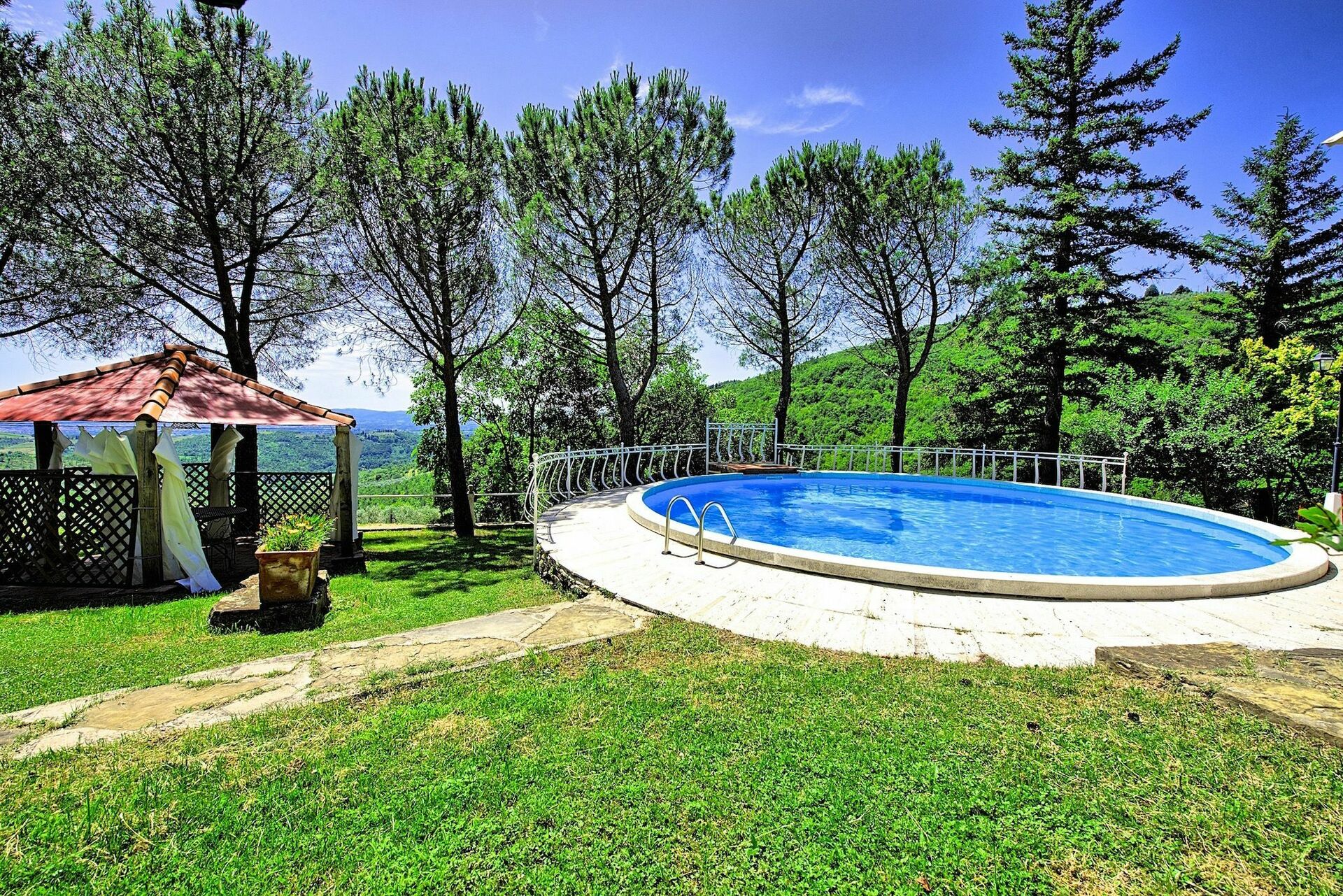 We had a great stay. The house is on top of a Mountain. So You have a great view over the landscape and arezzo. The next supermarket and the old town is just a short ride away. The house keeper war very friendly and helpful. The kitchen had everything we needed. Everything was clean, the bedrooms, bathroom and the pool was very nice. One star less, because the pictures of the inside are a bit different from the reality and the living room has a big pool f a weird smell