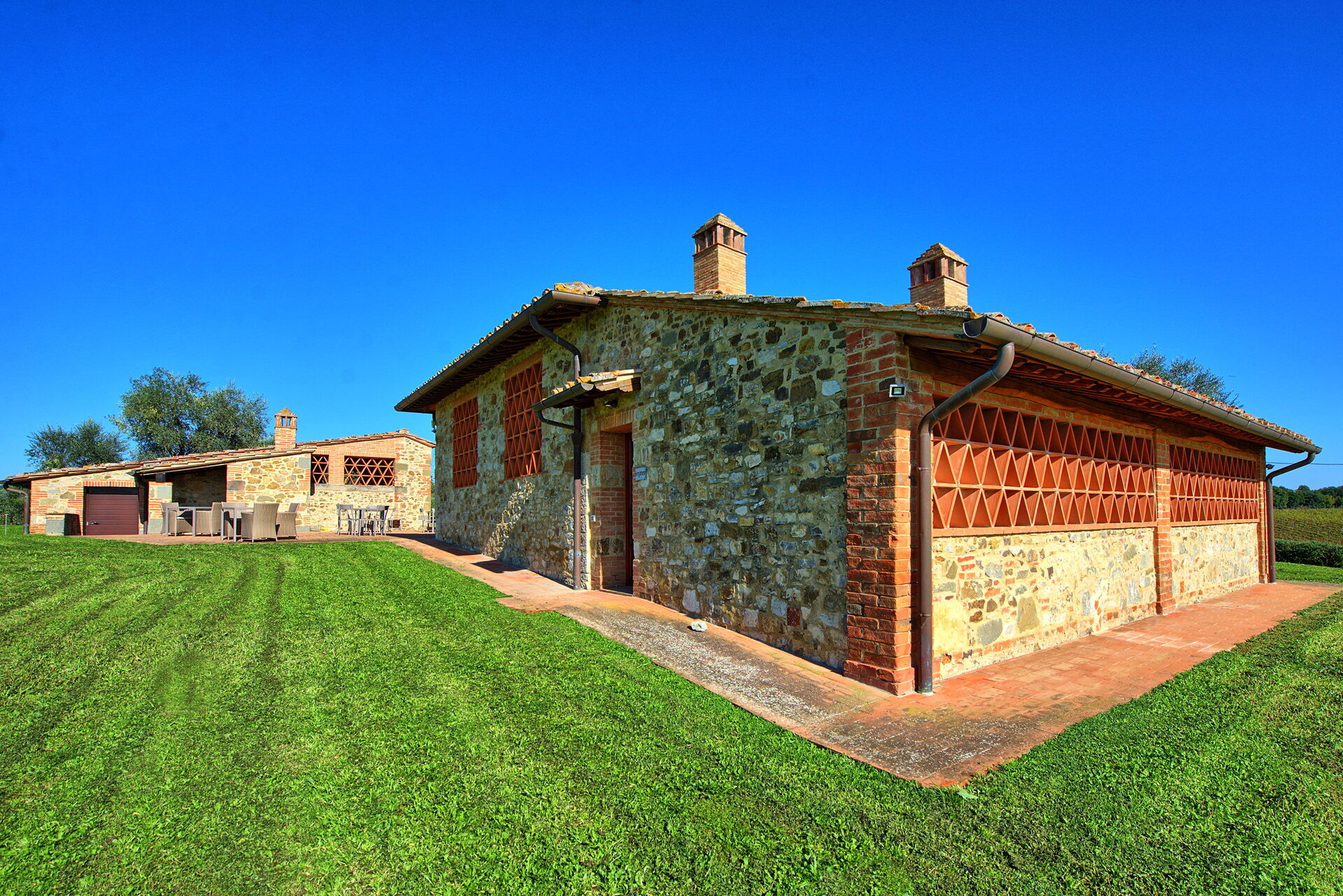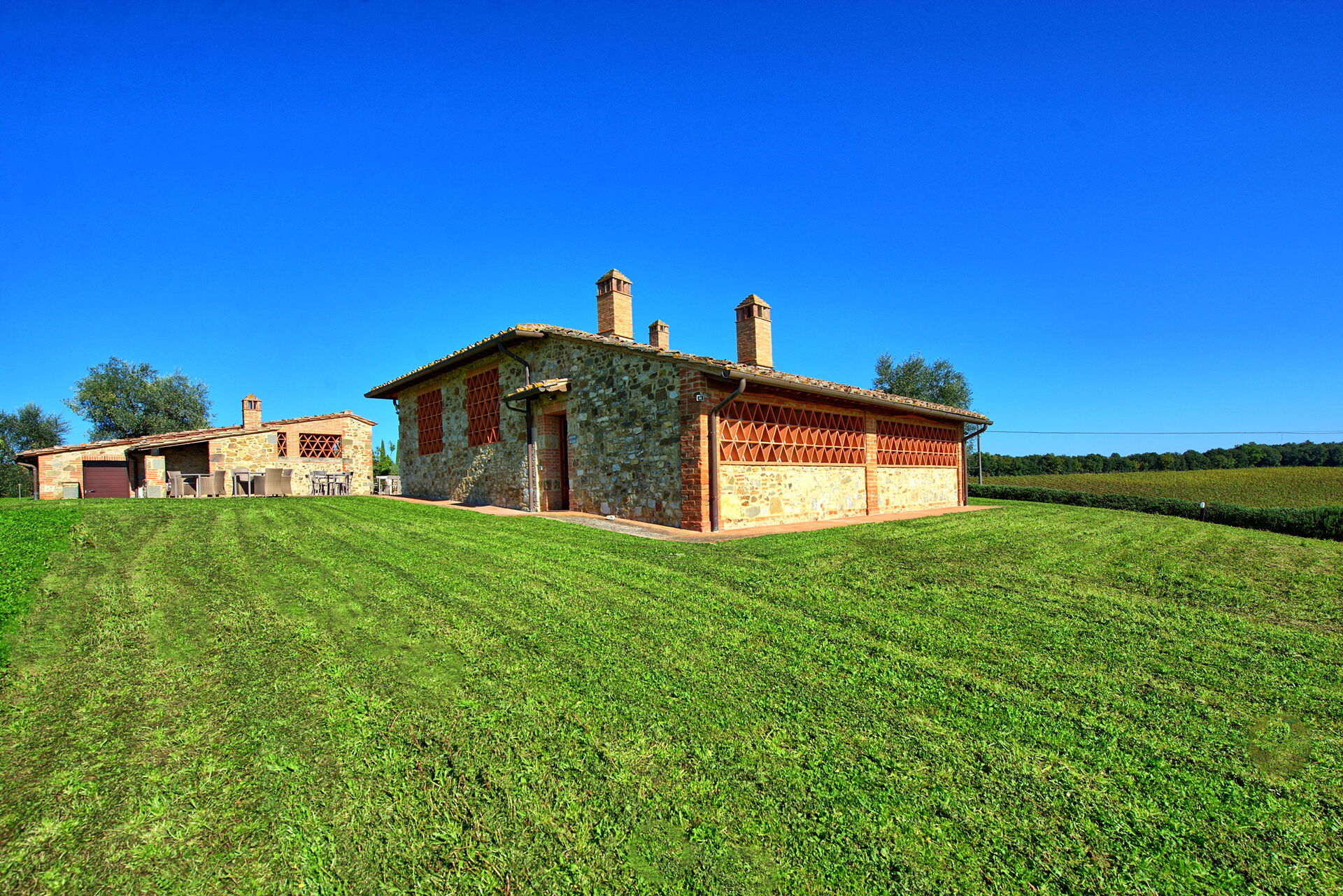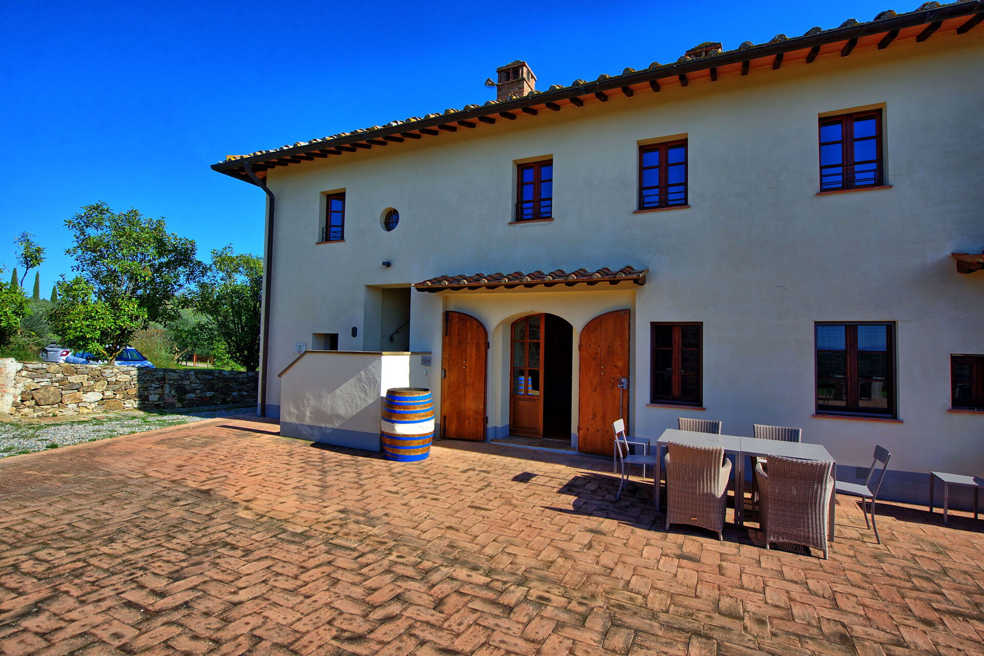 Ferieboligen er pænt restaureret og omdannet til 6 komfortable lejligheder indrettet i rustik stil med nogle antikviteter. Ejendommen er fredeligt beliggende på bakkerne i Chianti Classico og er omgivet af vinmarker og olivenlunde. Fra ejendommen har du smuk panoramaudsigt, hvor du kan se Siena i det fjerne. Feriehuset har en stor velholdt have (6000 m2) med infinity-pool, som er til rådighed for gæsterne i de 6 lejligheder. Det veteran l'Eroica cykelløb, der afholdes i Toscana hvert efterår, passerer lige forbi ejendommen.