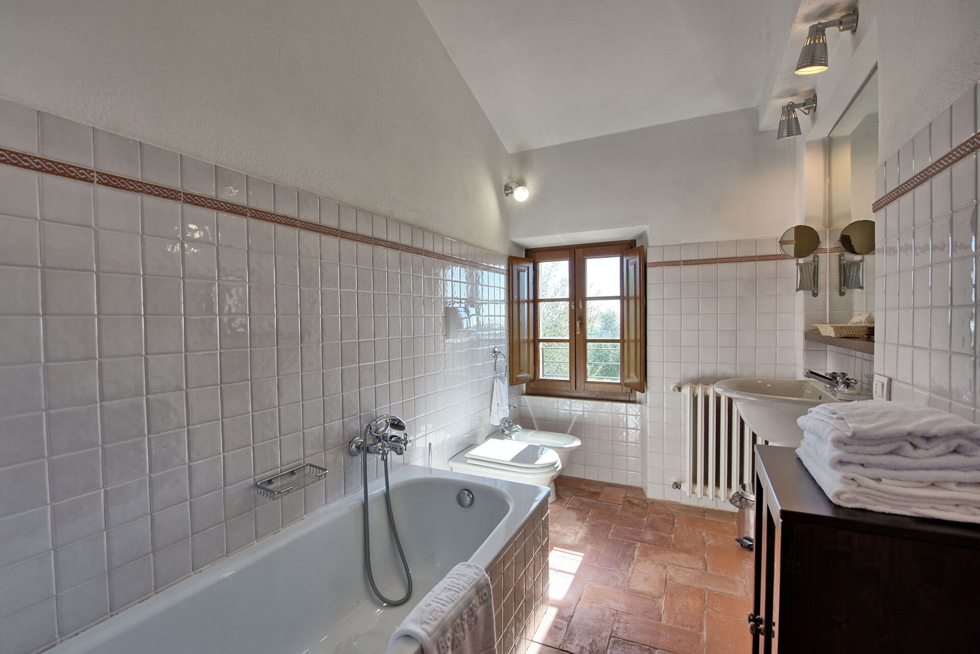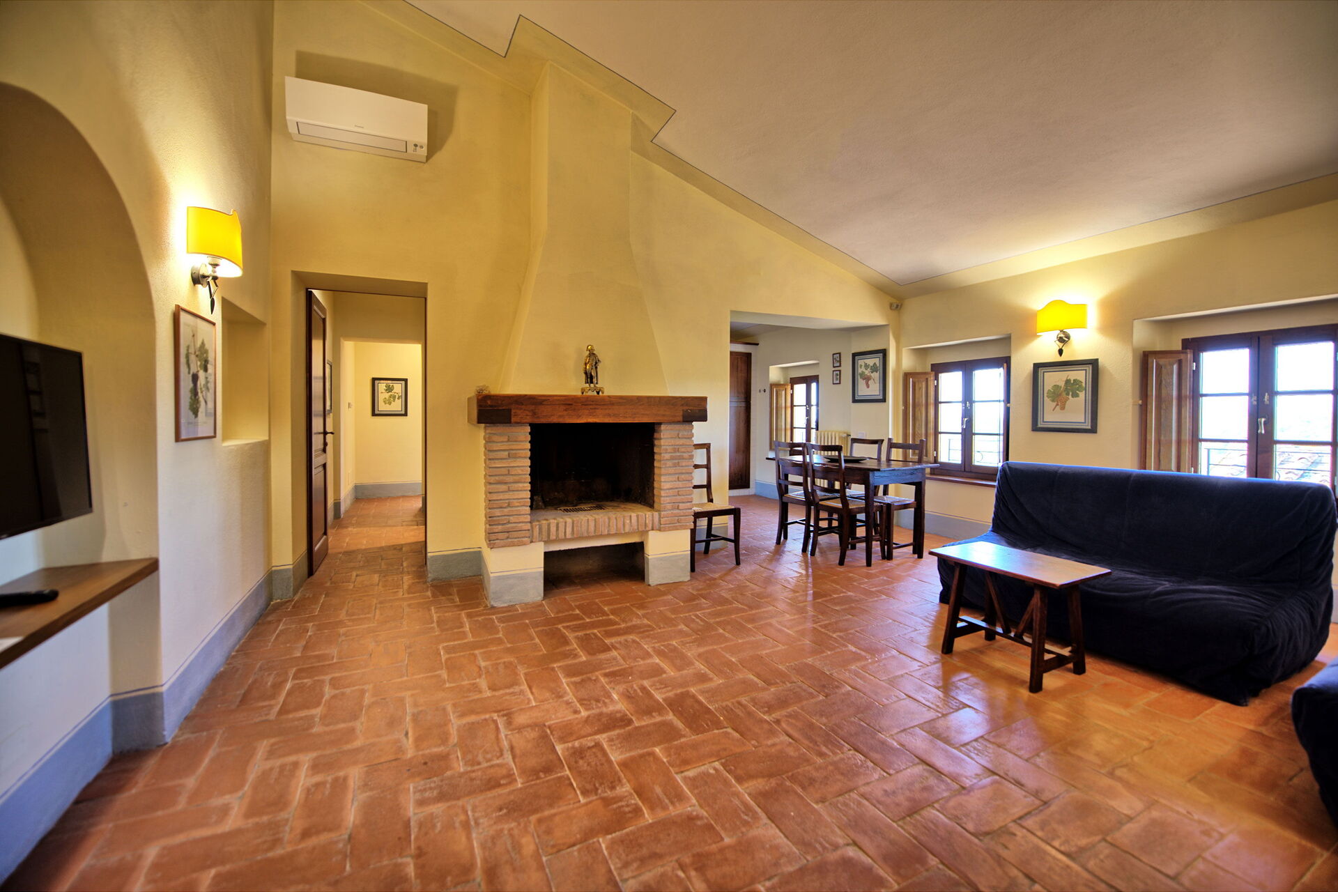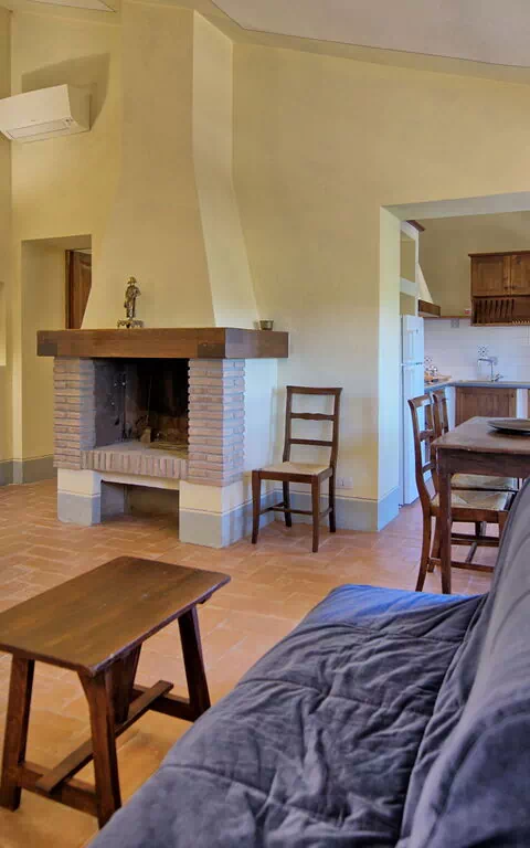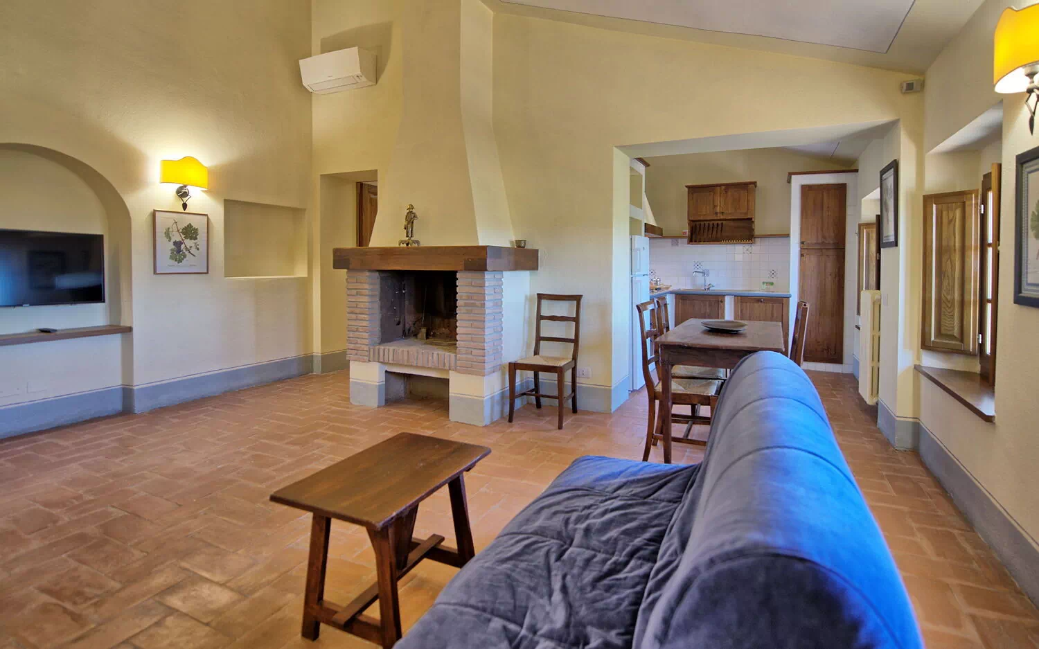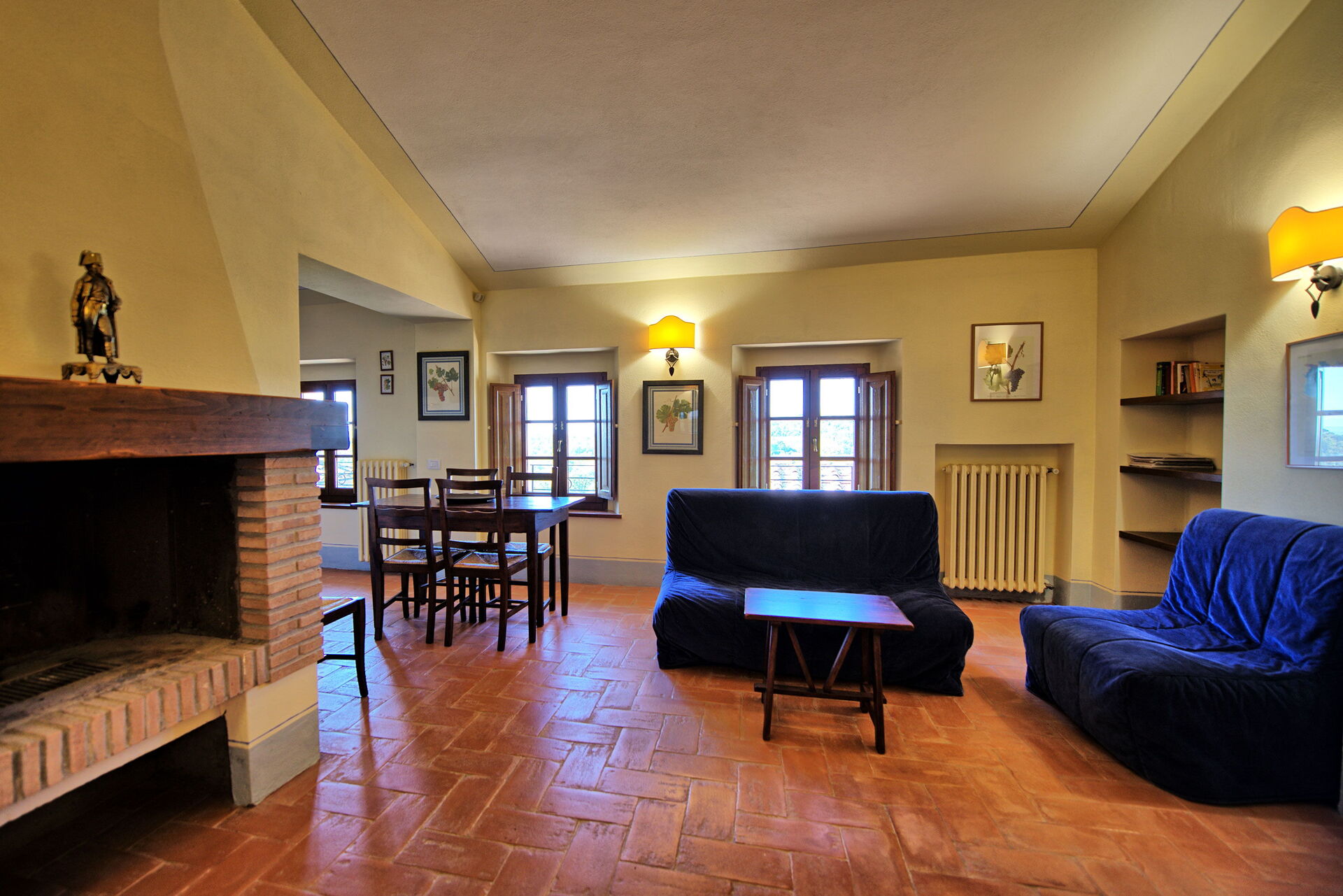 Fra opholdsområdet er der en smuk panoramaudsigt over det omgivende landskab og Siena i det fjerne.