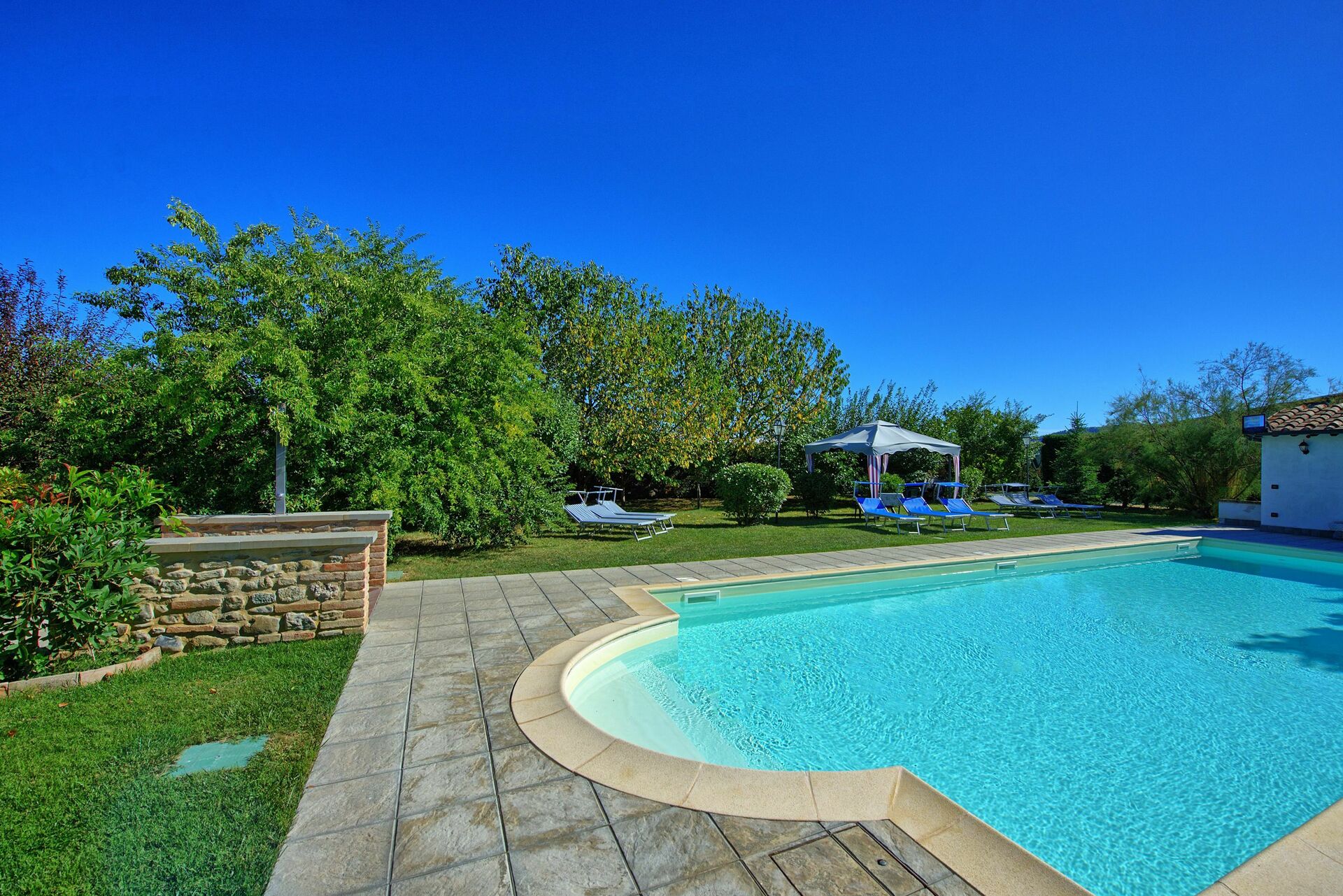 Stort hus med privat swimmingpool og smuk have på grænsen mellem Toscana og Umbrien.