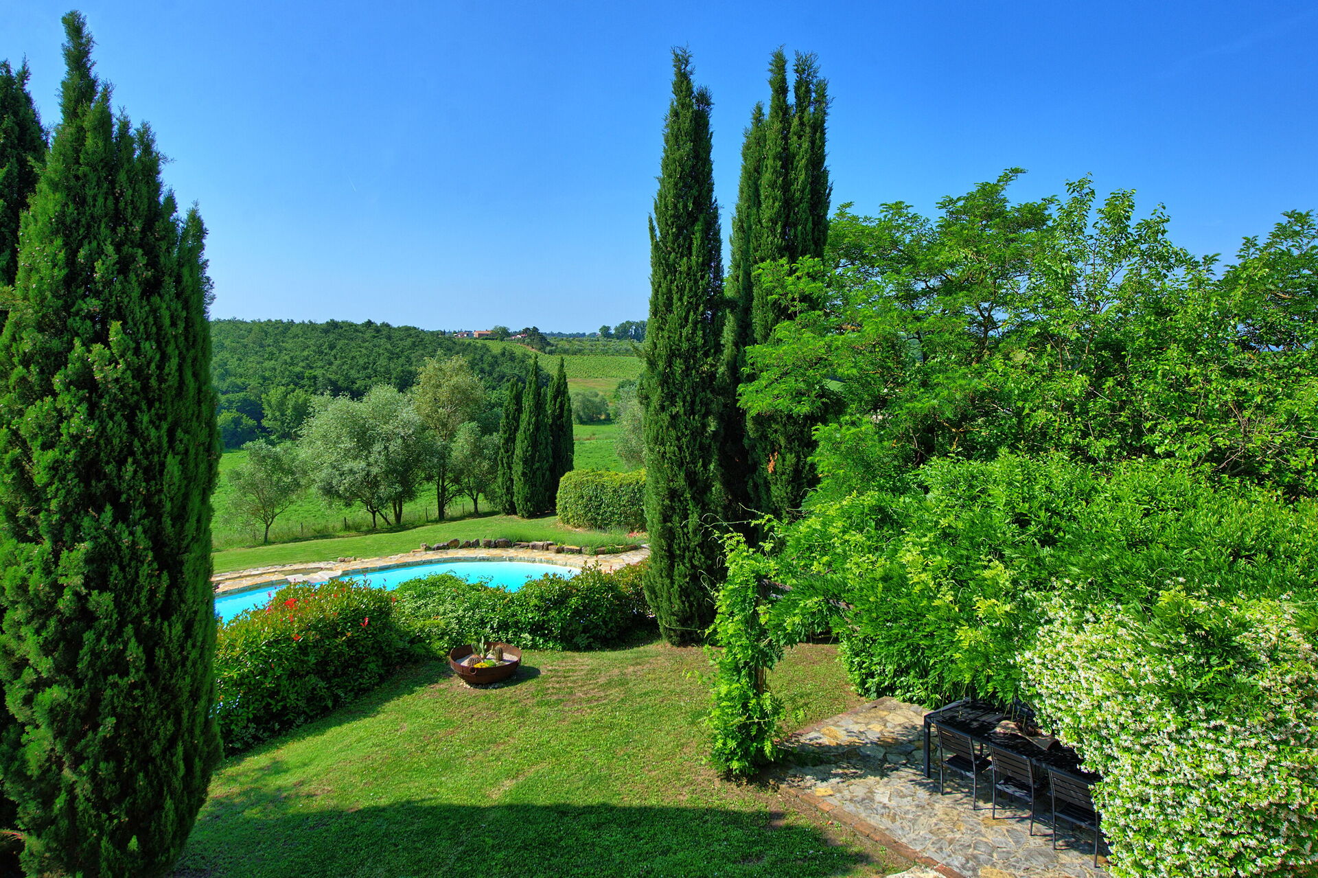 We had a fantastic week at Casale Delle Mele. Vanessa was a great host and very accommodating. The house is beautiful, every room was exquisite. The pool and outdoor space was also fantastic. Can highly recommend. Vanessa was very accommodating and helpful. She lives just next door but doesn’t interfere at all.