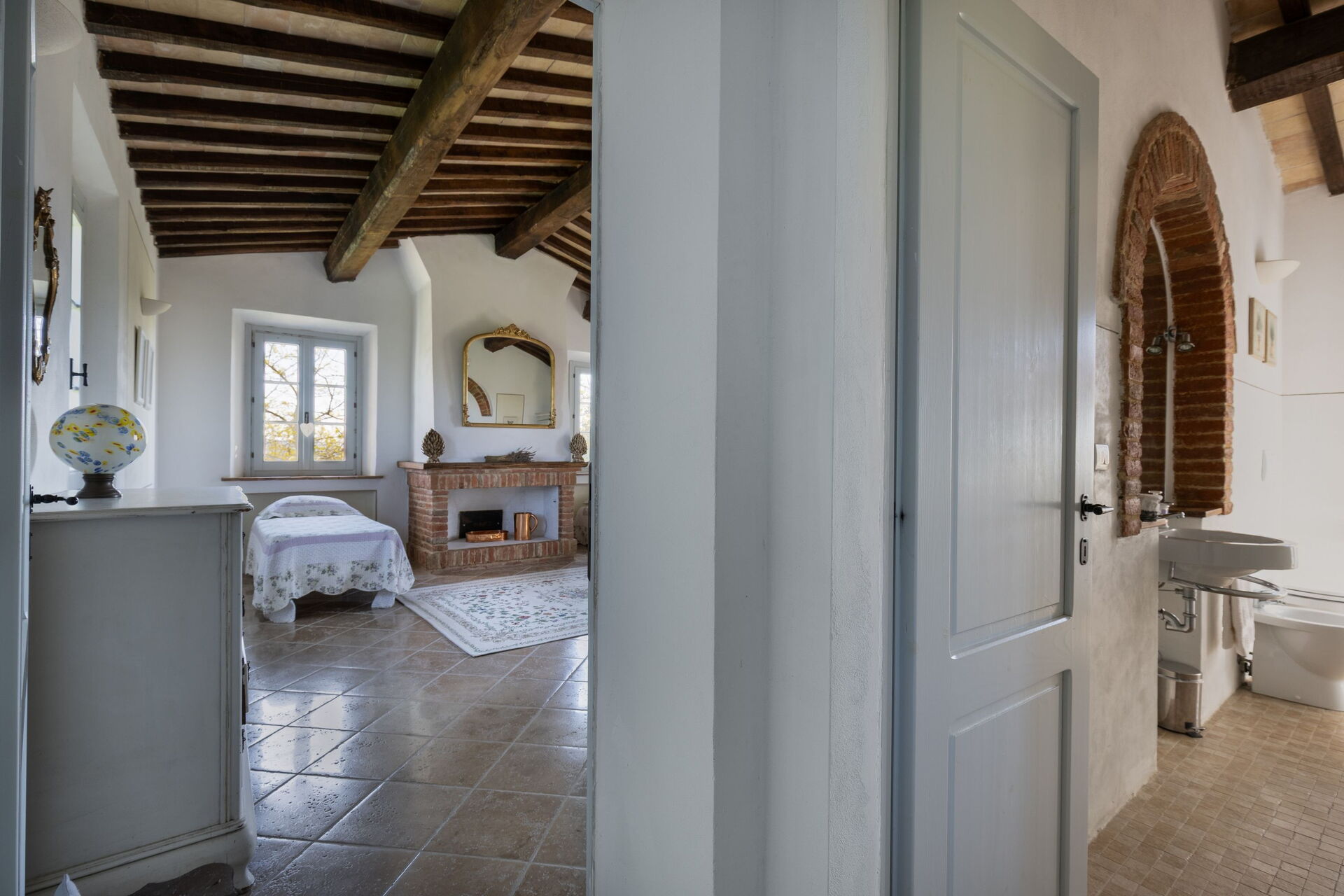 Huset er meget rummeligt og er blevet restaureret med respekt for de originale arkitektoniske detaljer. Casale delle Mele tilbyder 3 værelser med aircondition og kan komfortabelt rumme op til 6/8 personer.