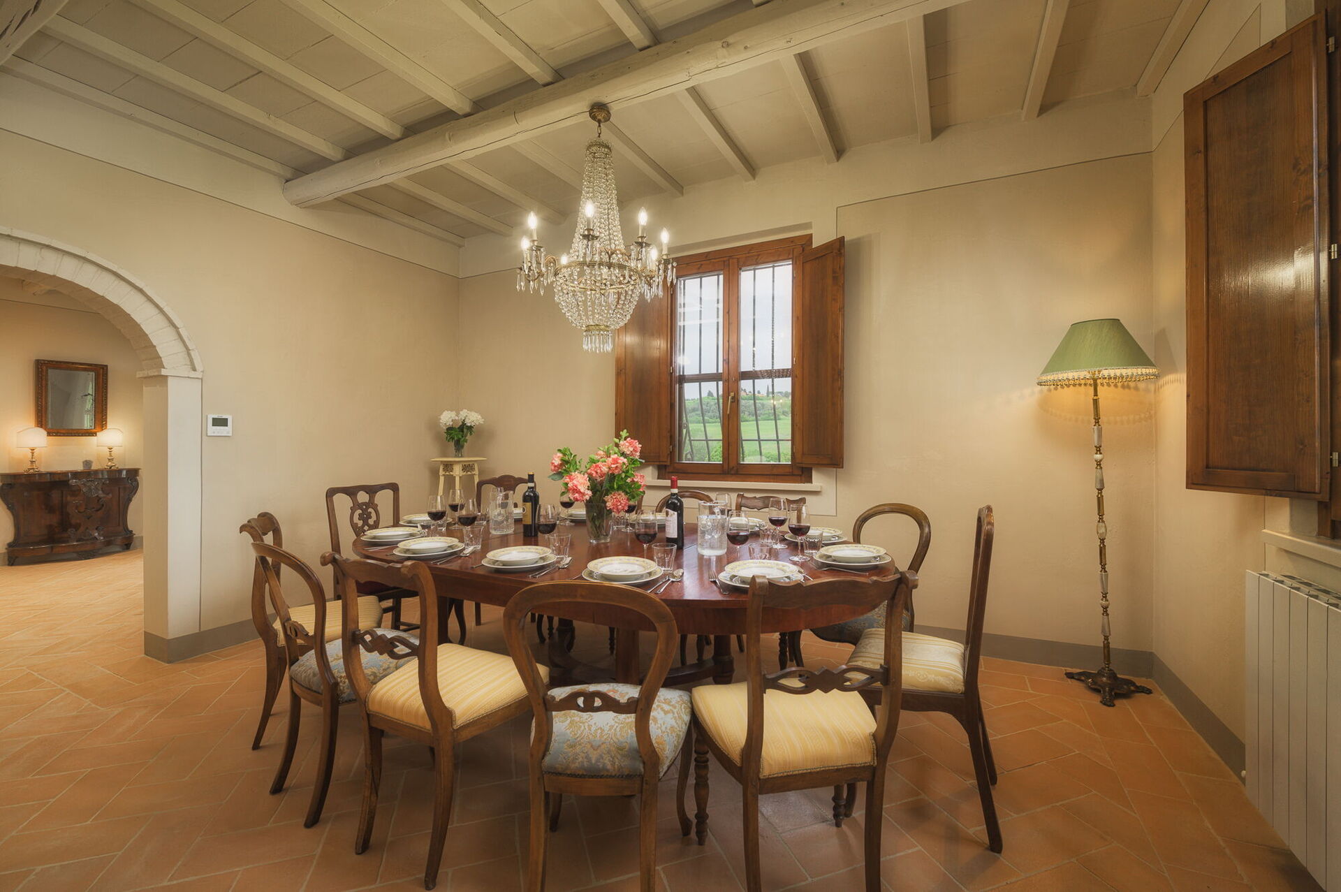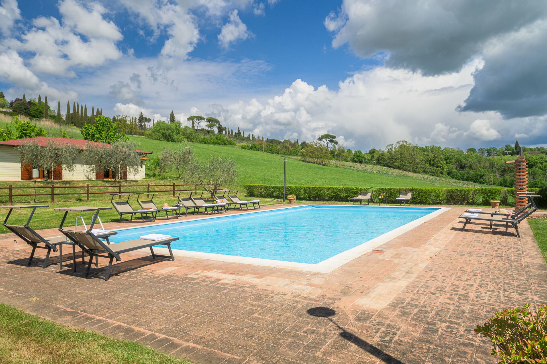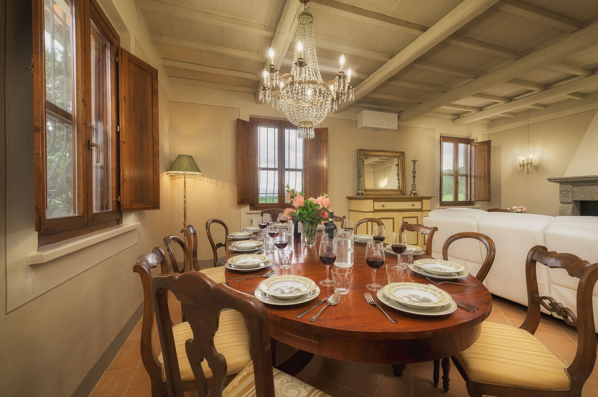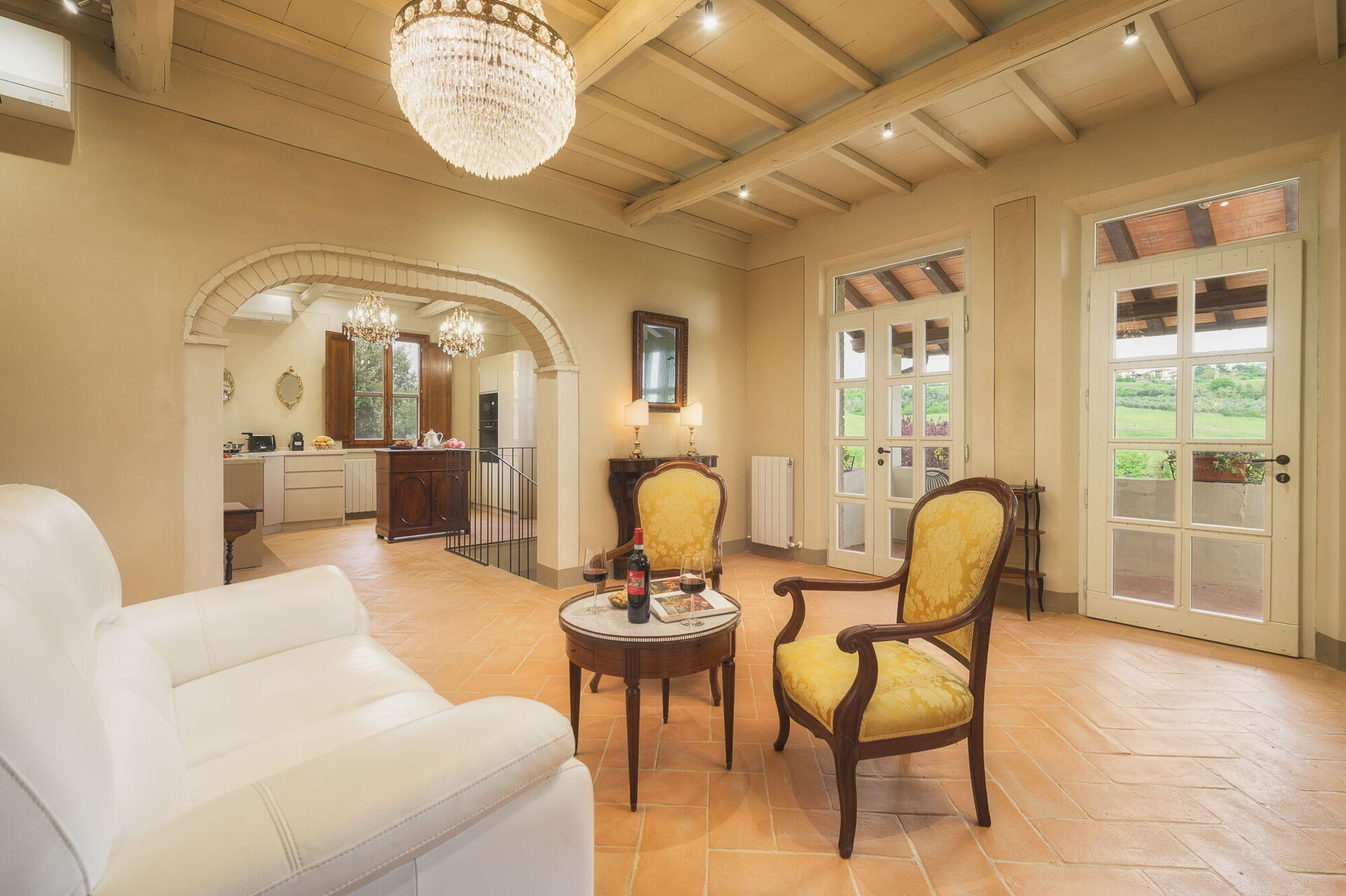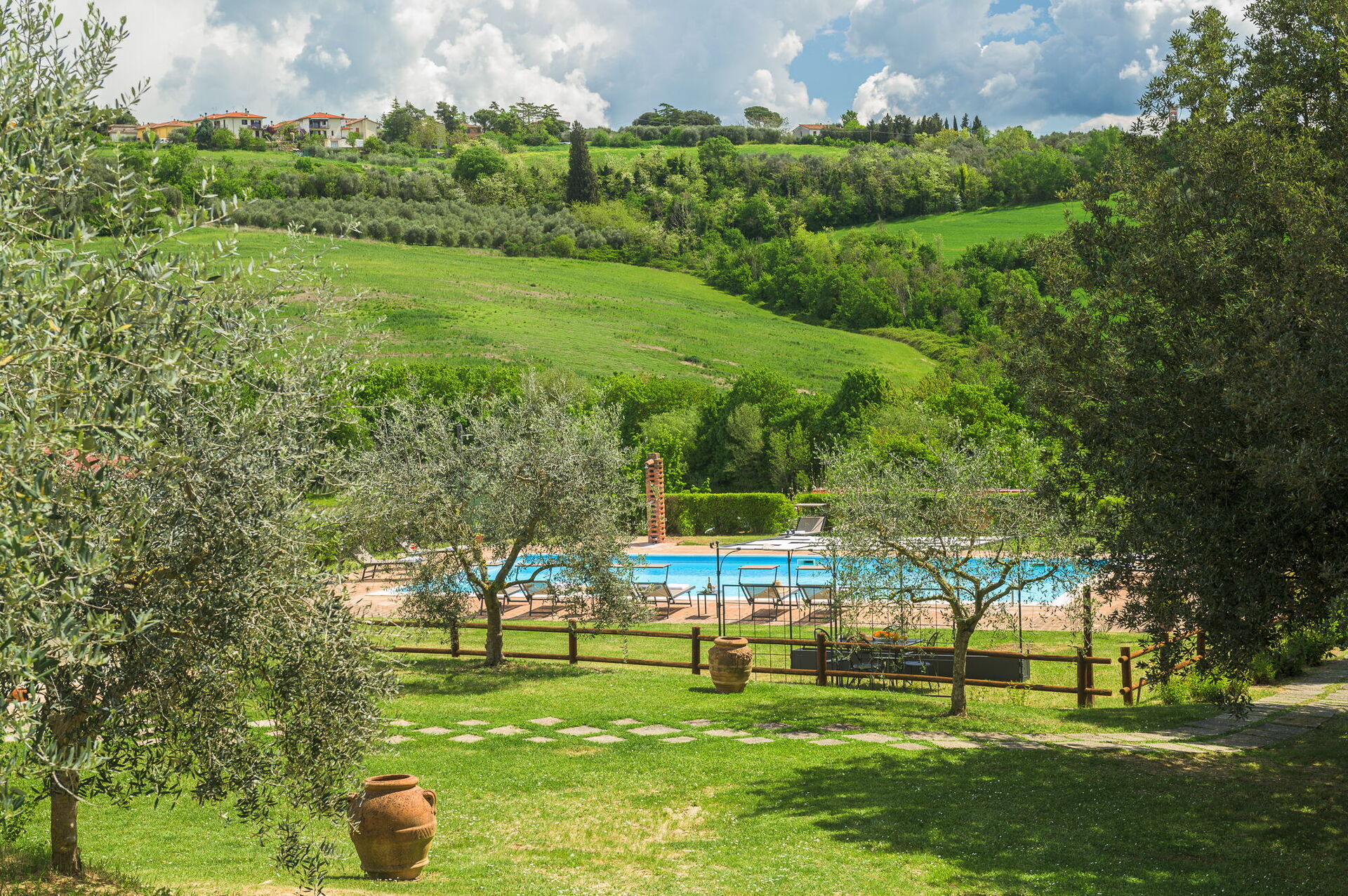 Villa La Contea ligger omgivet af smukke, bløde bakker og vinmarker, og fra huset har man en storslået udsigt over det omkringliggende landskab.