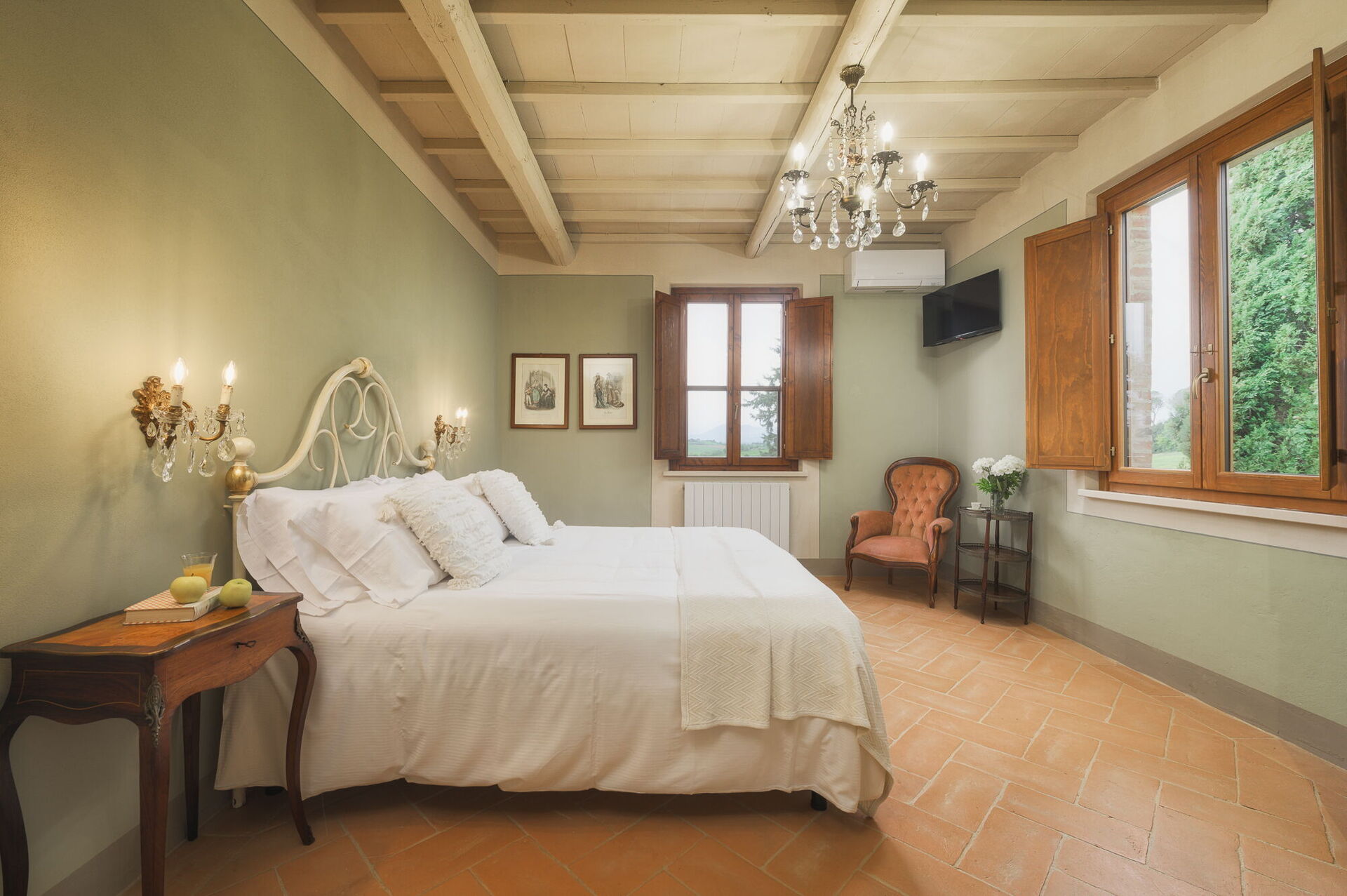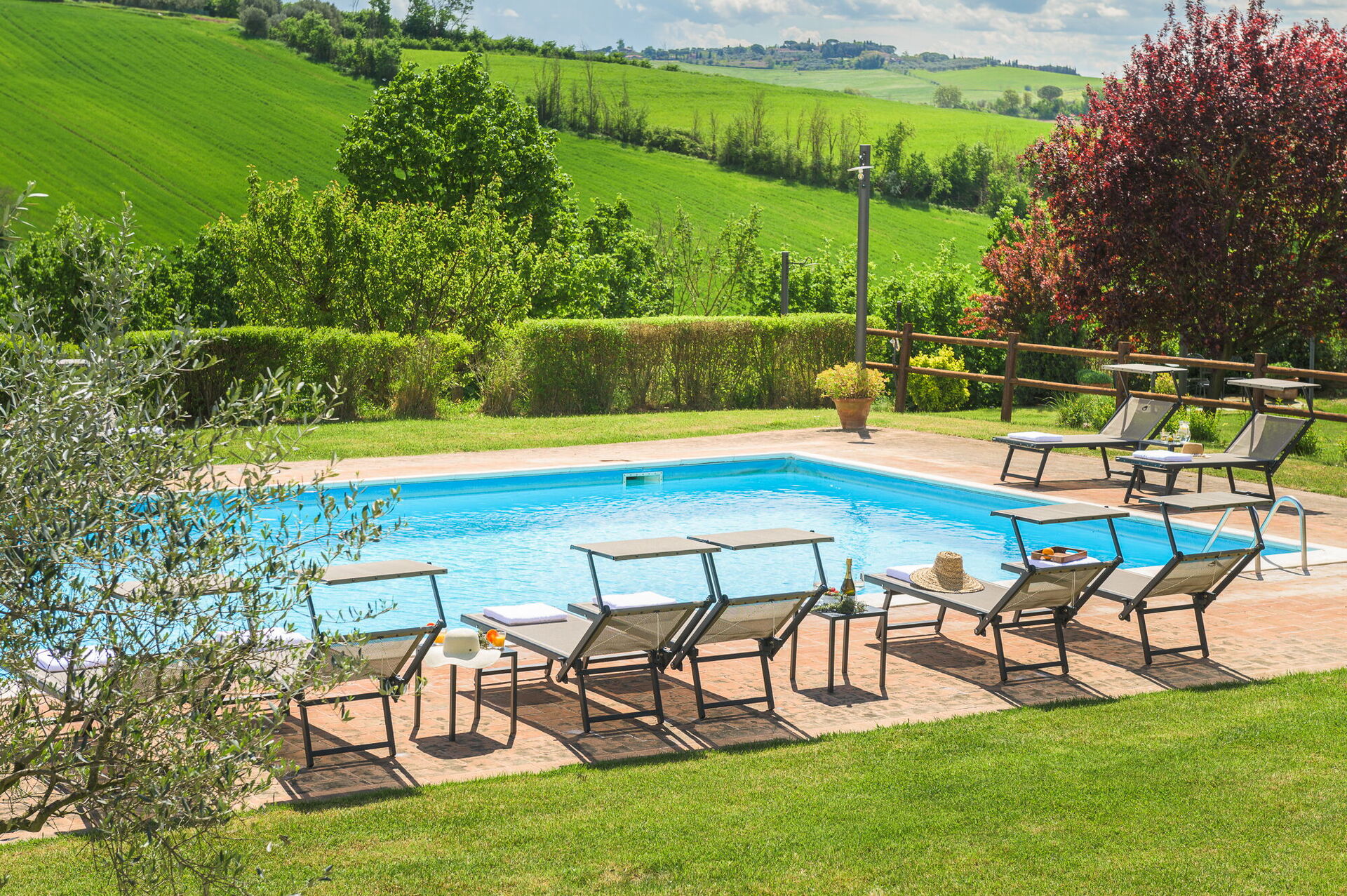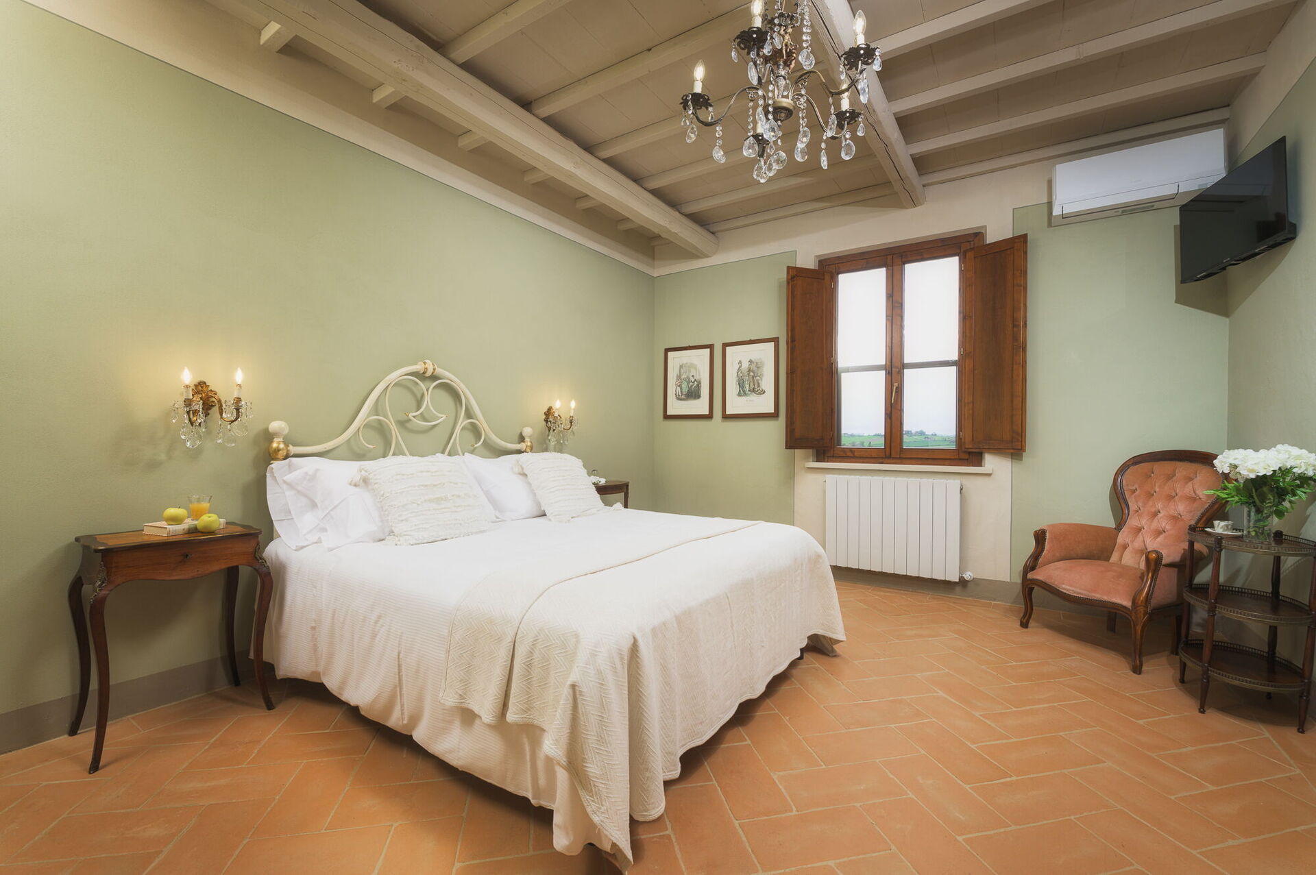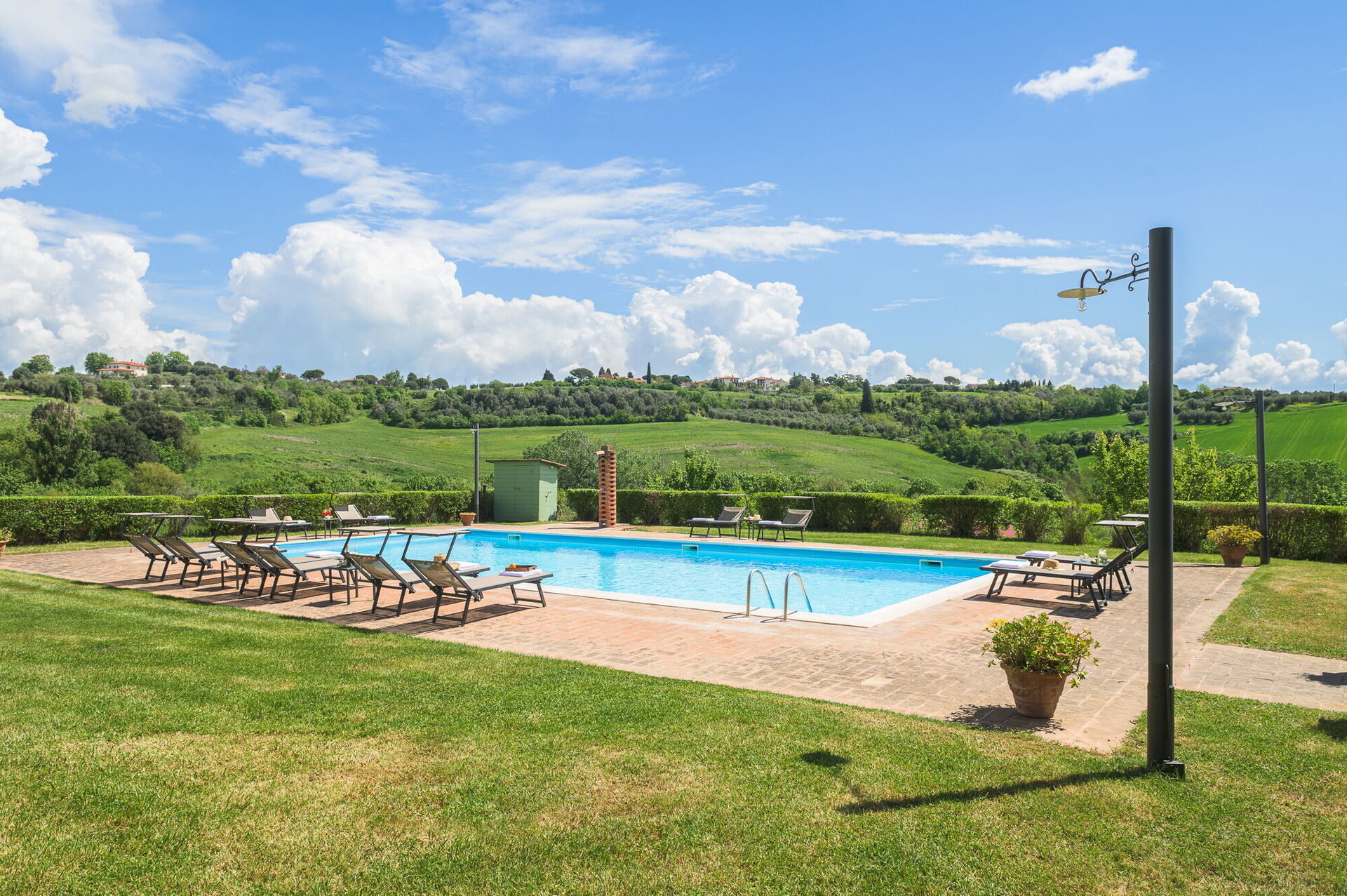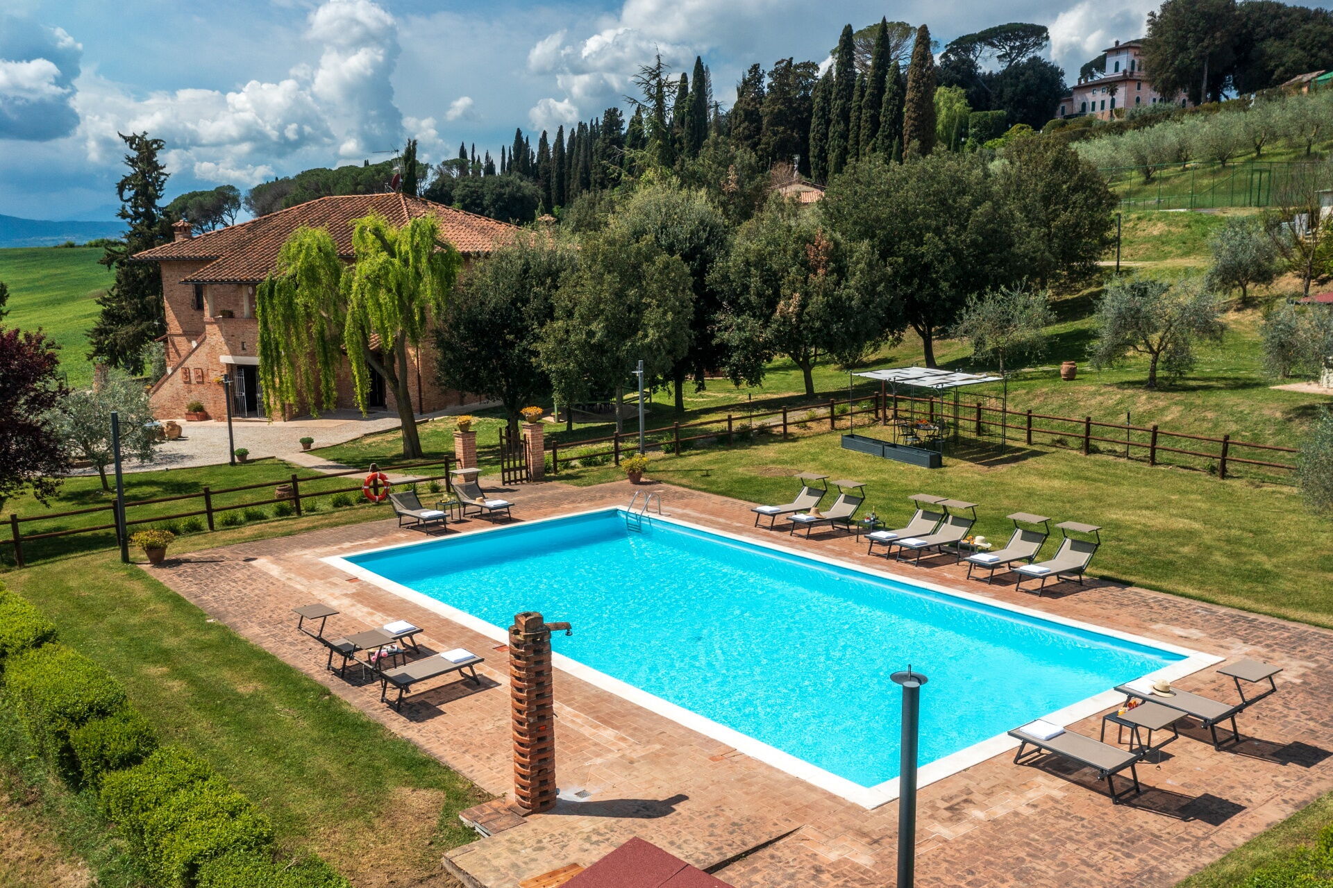 Villa La Contea ligger omgivet af smukke, bløde bakker og vinmarker, og fra huset har man en storslået udsigt over det omkringliggende landskab.