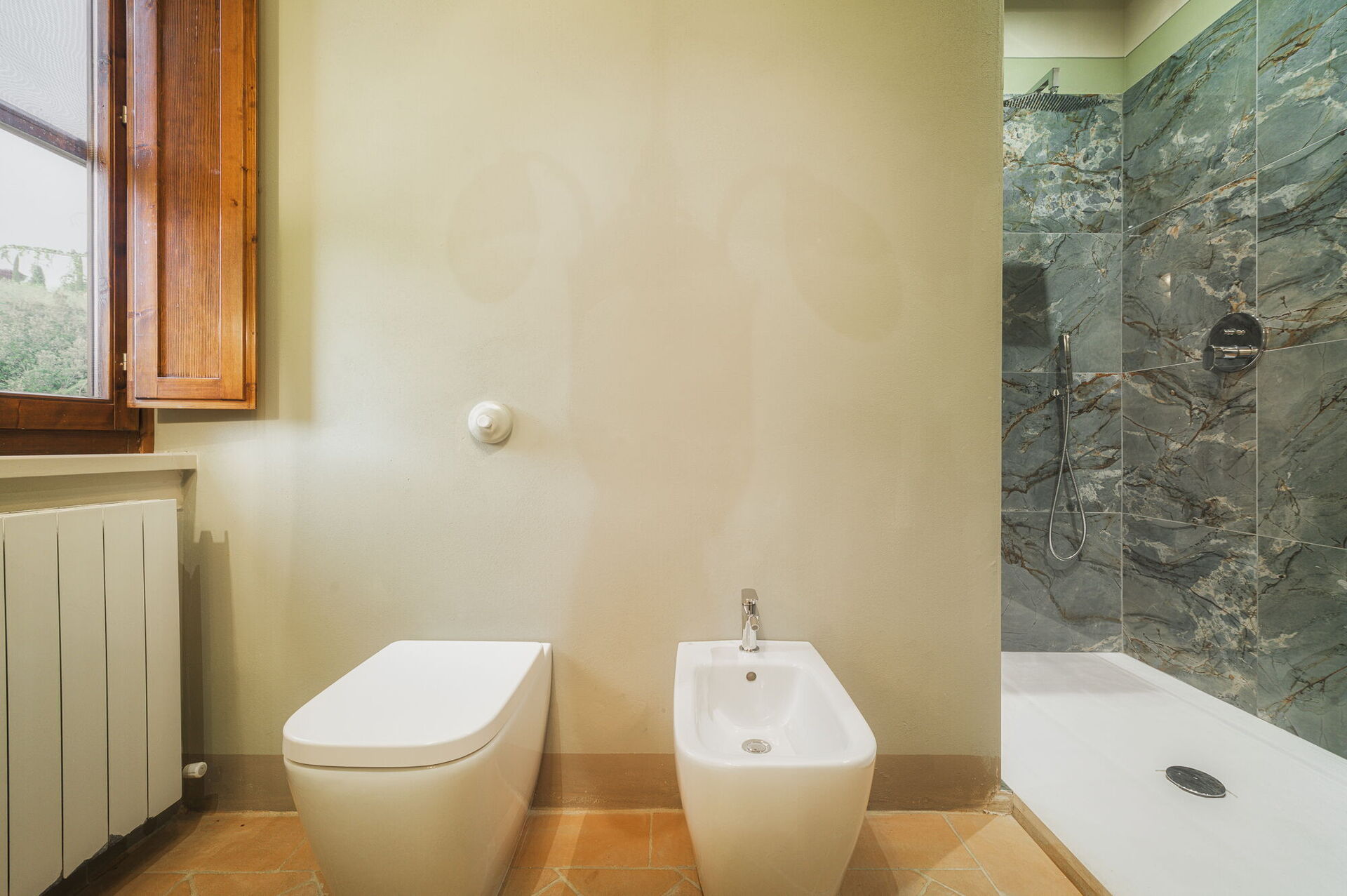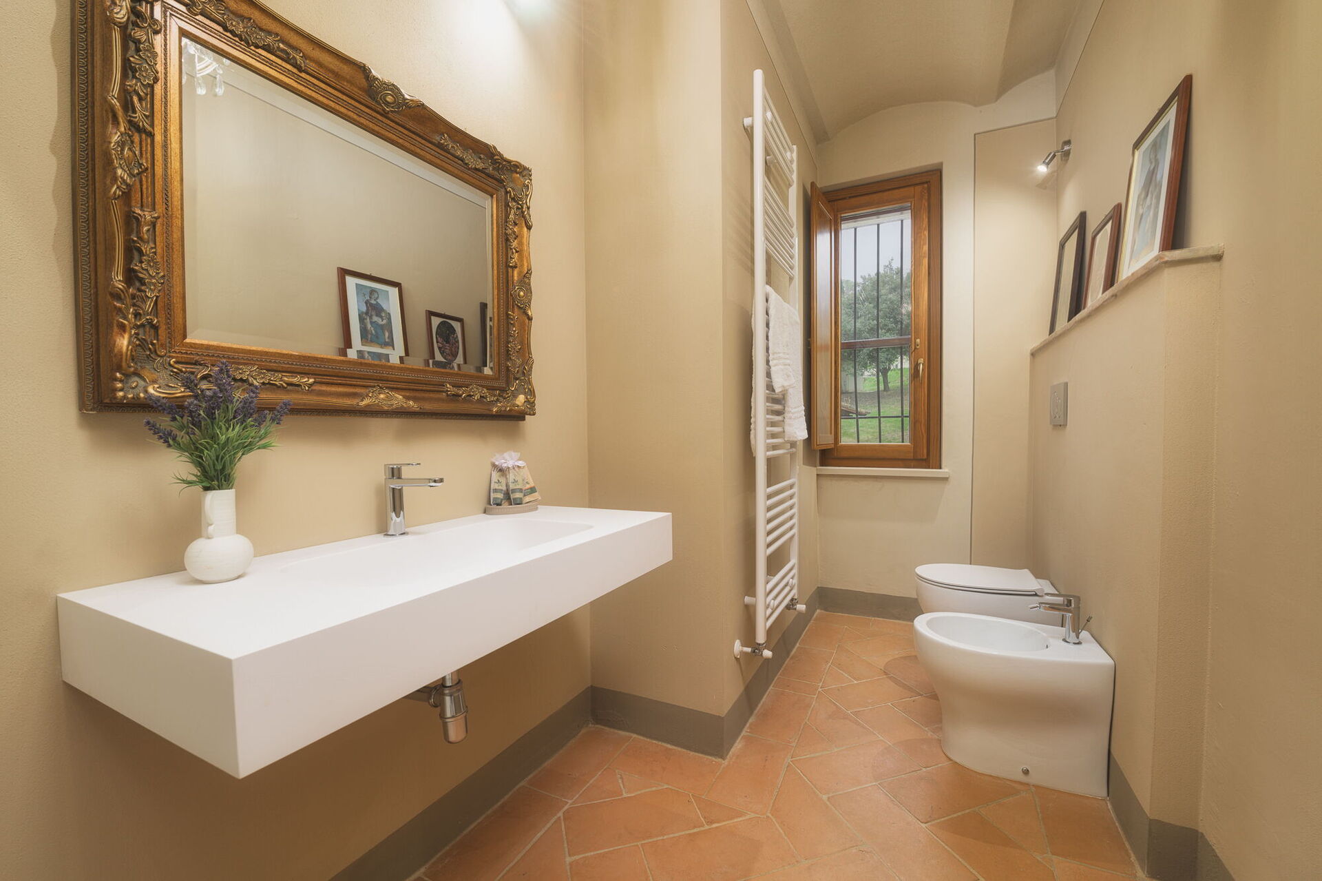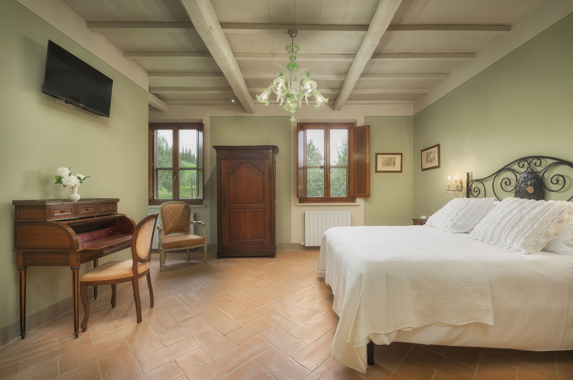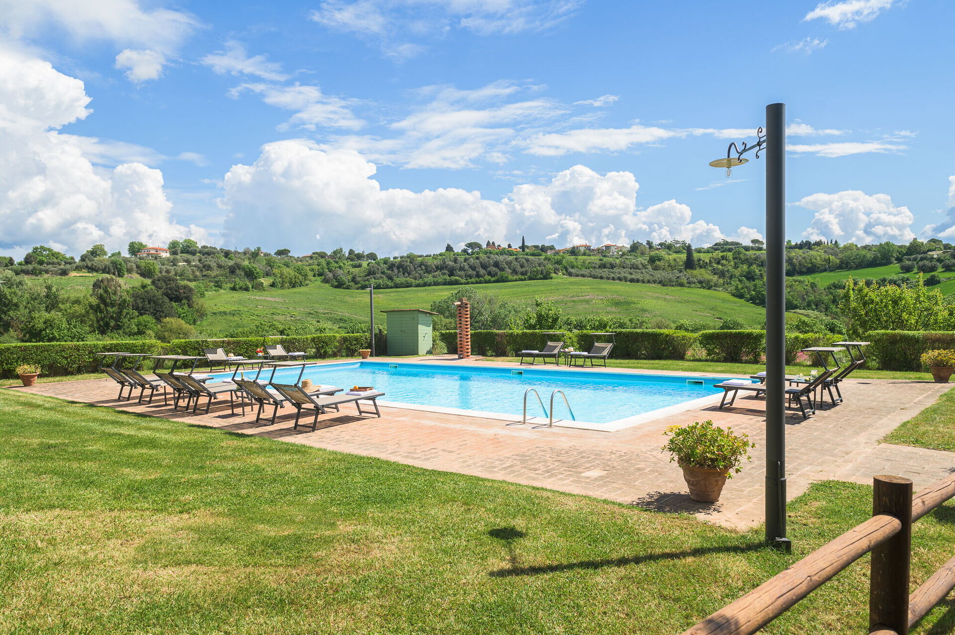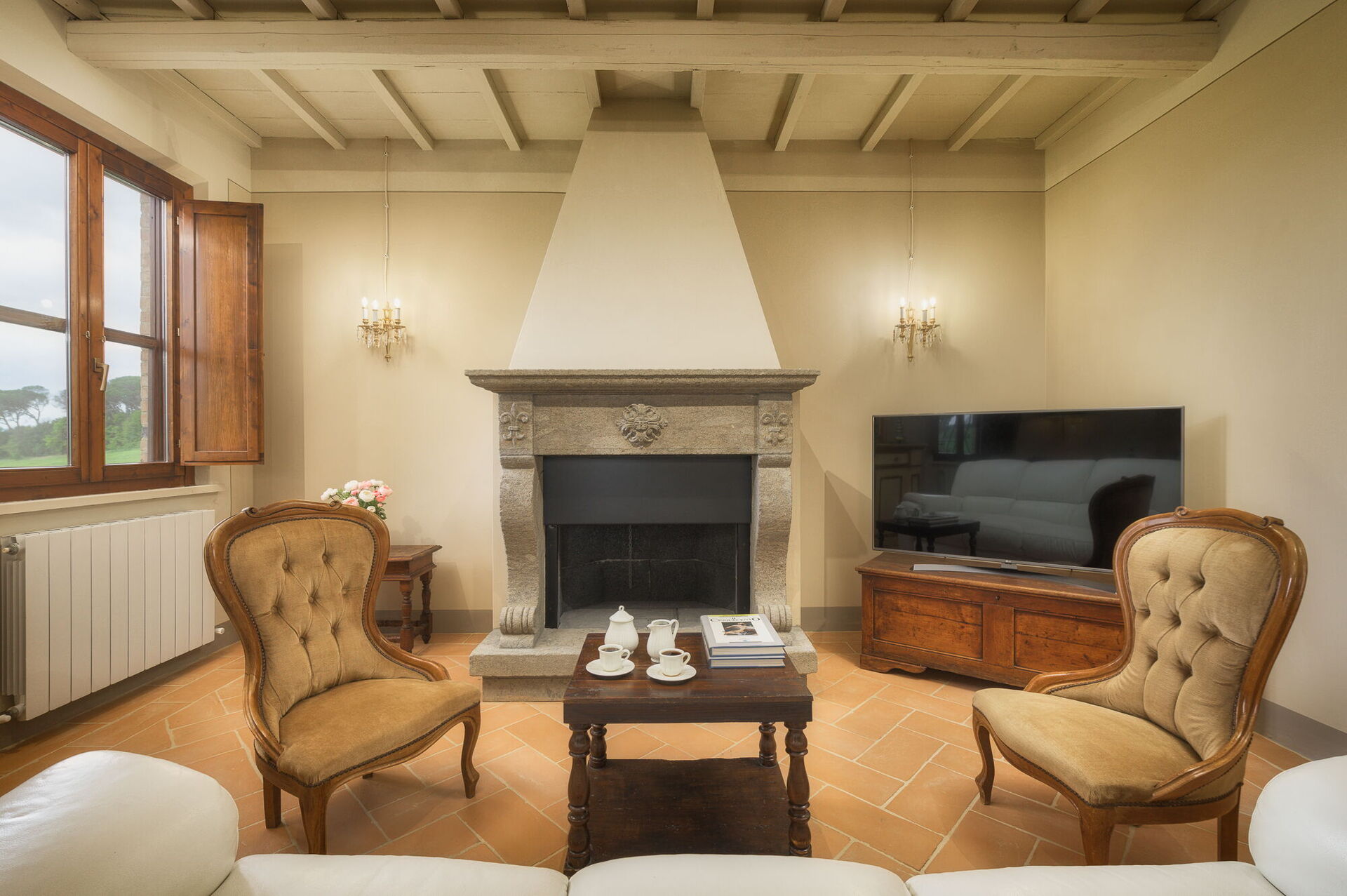 Villa La Contea ligger omgivet af smukke, bløde bakker og vinmarker, og fra huset har man en storslået udsigt over det omkringliggende landskab.