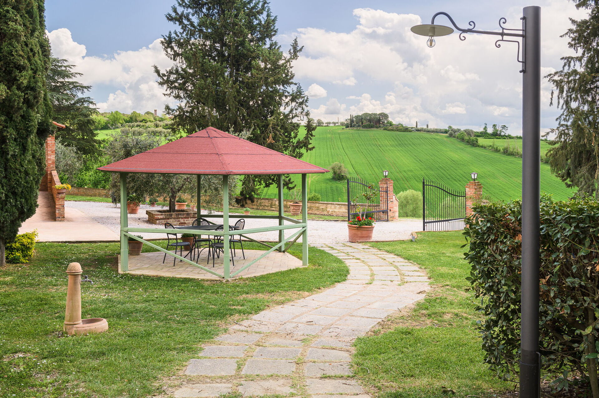- lysthus med bord og stole til afslapning og måltider udendørs