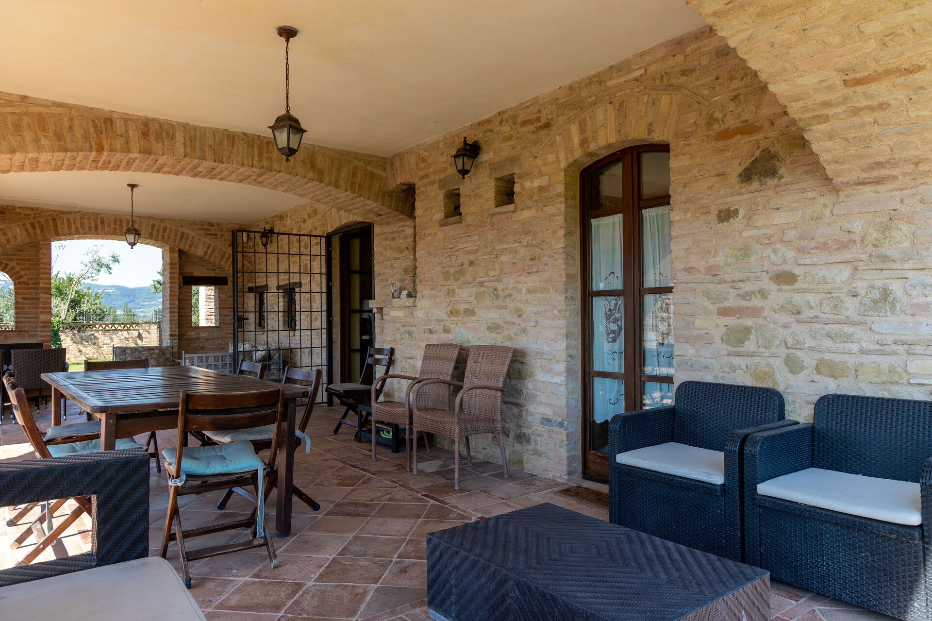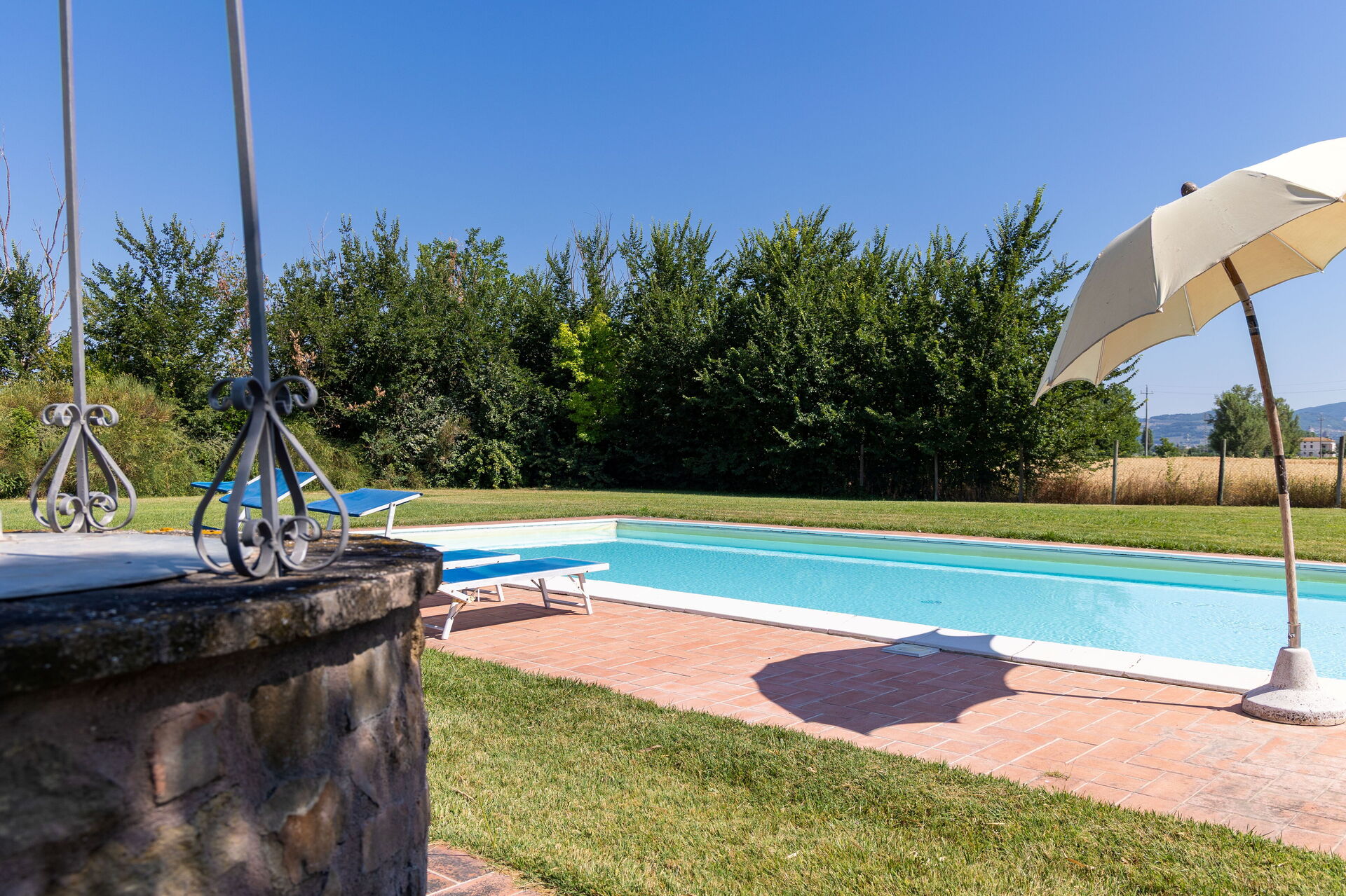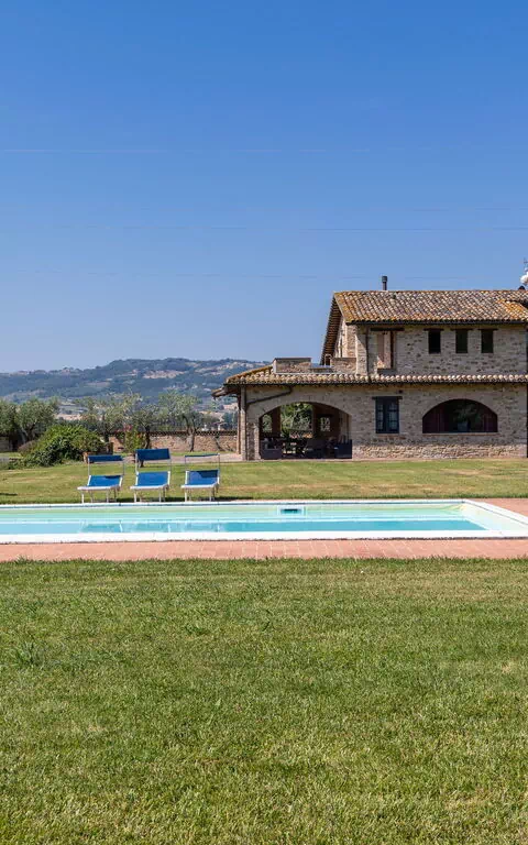 Selve huset er beliggende på landet og har en vidunderlig udsigt over Assisi - som ligger 10 km væk. En velplejet have omgiver huset. Her finder du også en privat swimmingpool med solsenge og liggestole. Parkering er tilgængelig foran villaen eller i den store garage under huset.