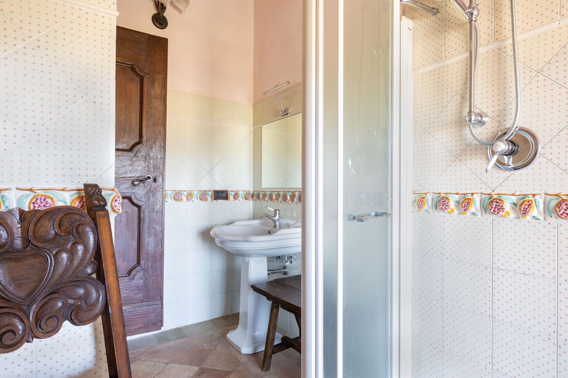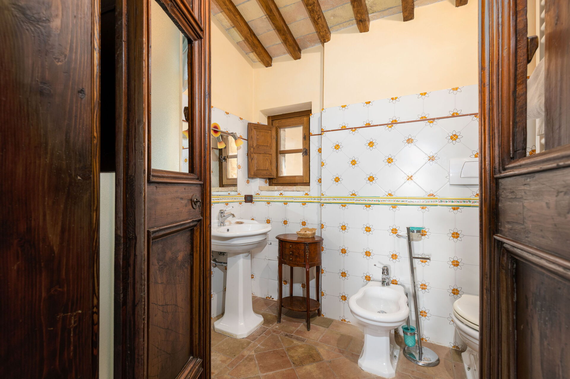 Kælder (tilgængelig både indefra og udefra): garage, badeværelse med bruser til brug for dem, der bruger swimmingpoolen, komplet vaskerum med vaskemaskine, strygejern og strygebræt, tøj tørring.