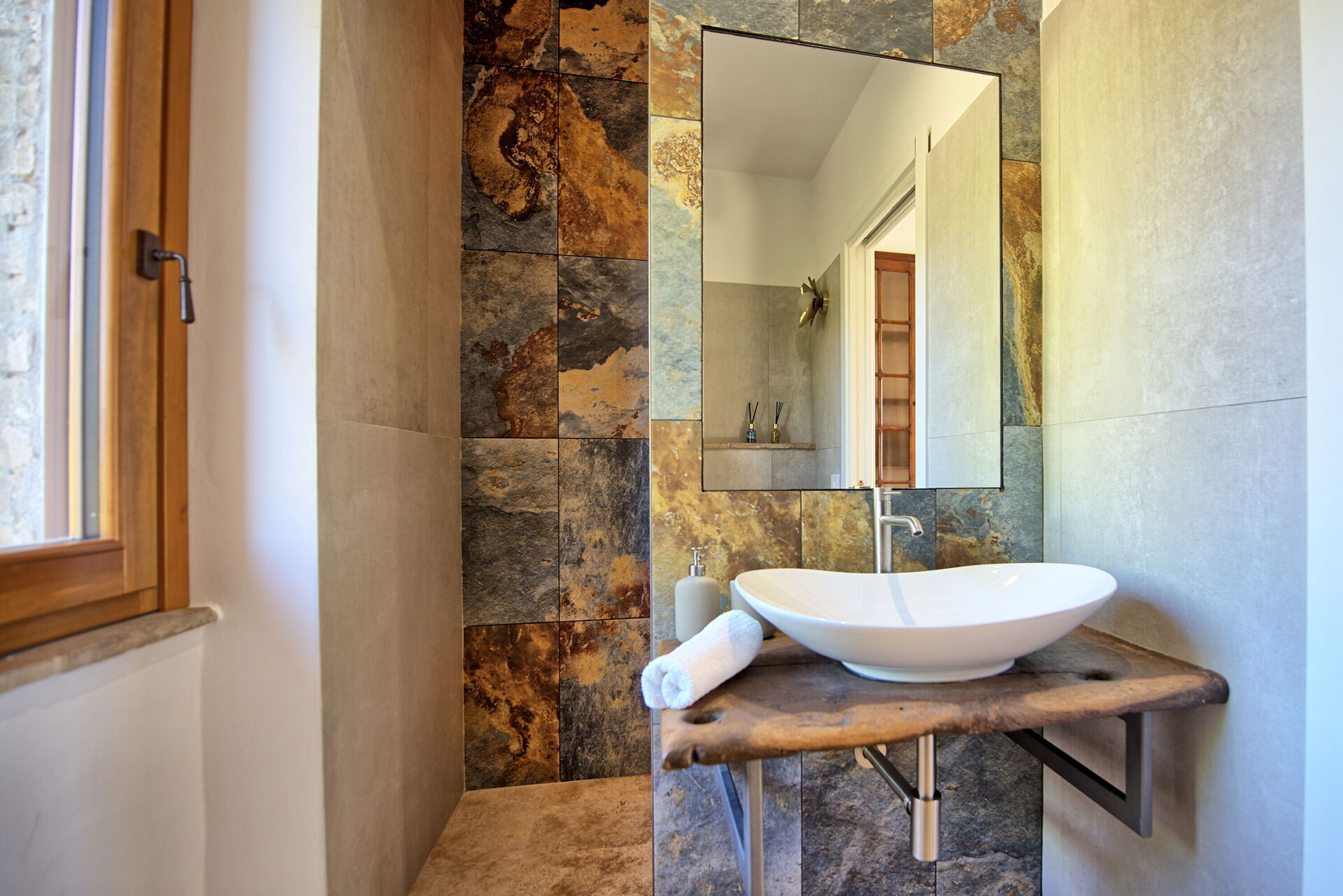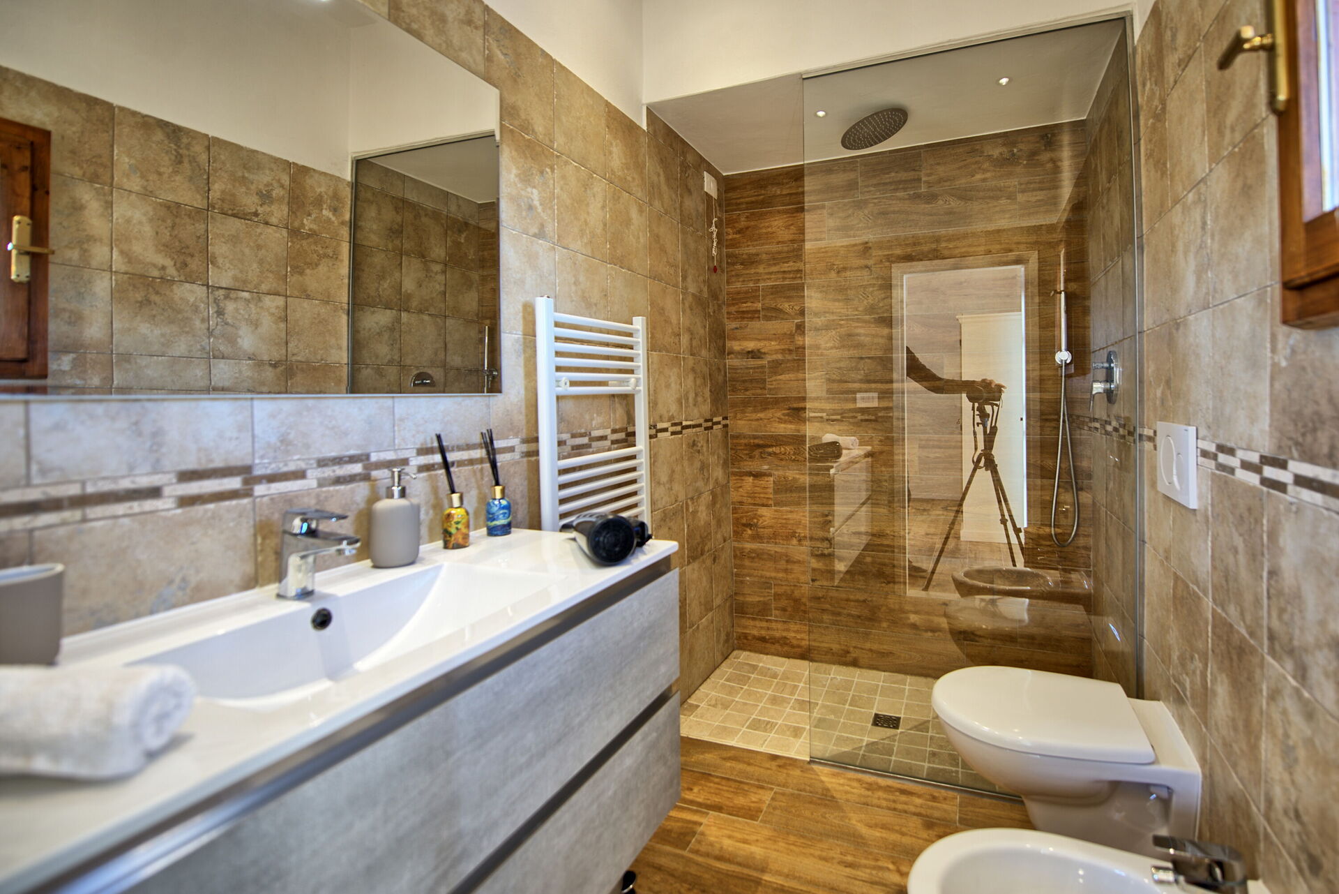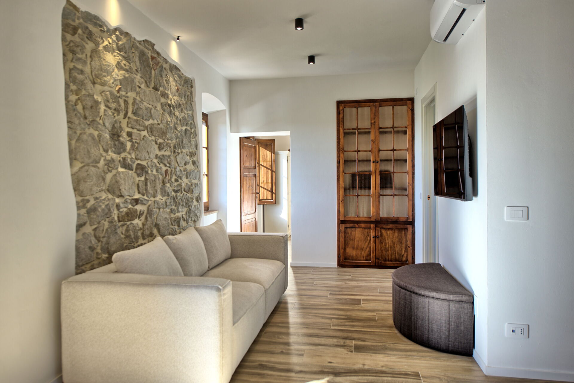Første sal: stue med smart-TV, dobbeltværelse, badeværelse med bruser, soveværelse med dobbeltseng + enkeltseng, eget badeværelse med bruser og adgang til privat terrasse med panoramaudsigt.