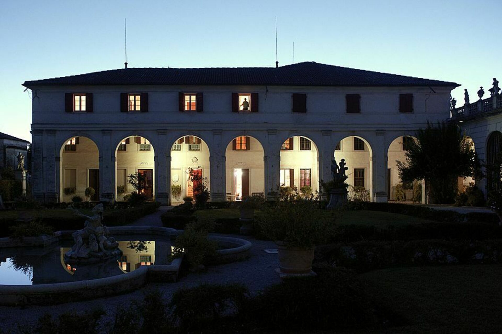 Alle vinduer på øverste etage overser det meste af den italienske haven og villaens facade.