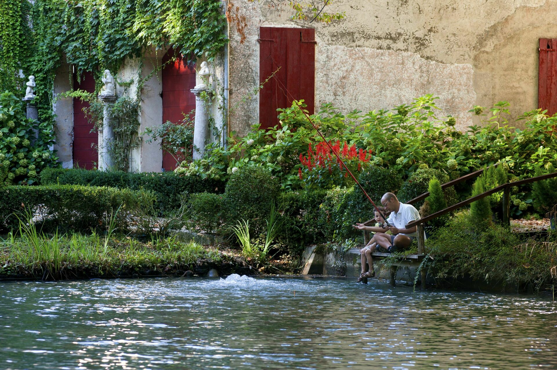 Bortset fra parken, tæt på hovedbygningen er der en lille privat have adskilt fra de vigtigste park, med en swimmingpool omgivet af nerier, roser og hortensiaer. Haven er suppleret med en havepavillon, et træbord, 10 stole, 6 liggestole og en grill. Et omledningsværelse, pool-håndklæder, ekstra stole og lille køleskab er tilgængelig fra den private have.