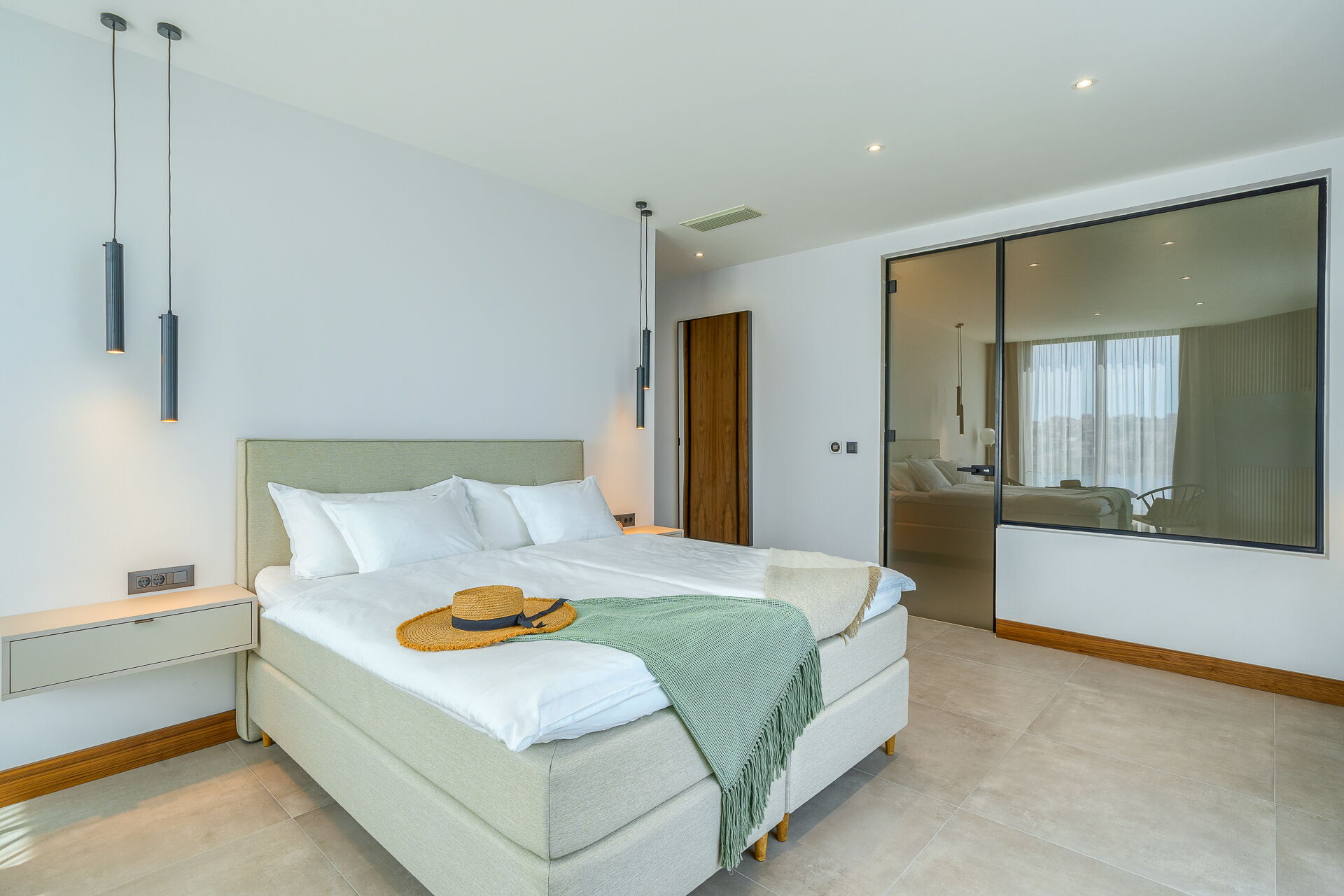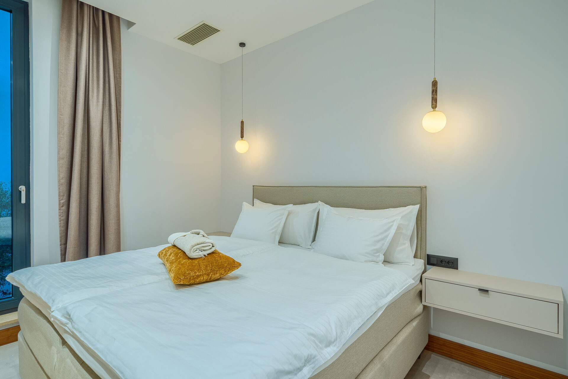 - 3 soveværelser med dobbeltsenge (med kingsize seng, aircondition) med eget badeværelse